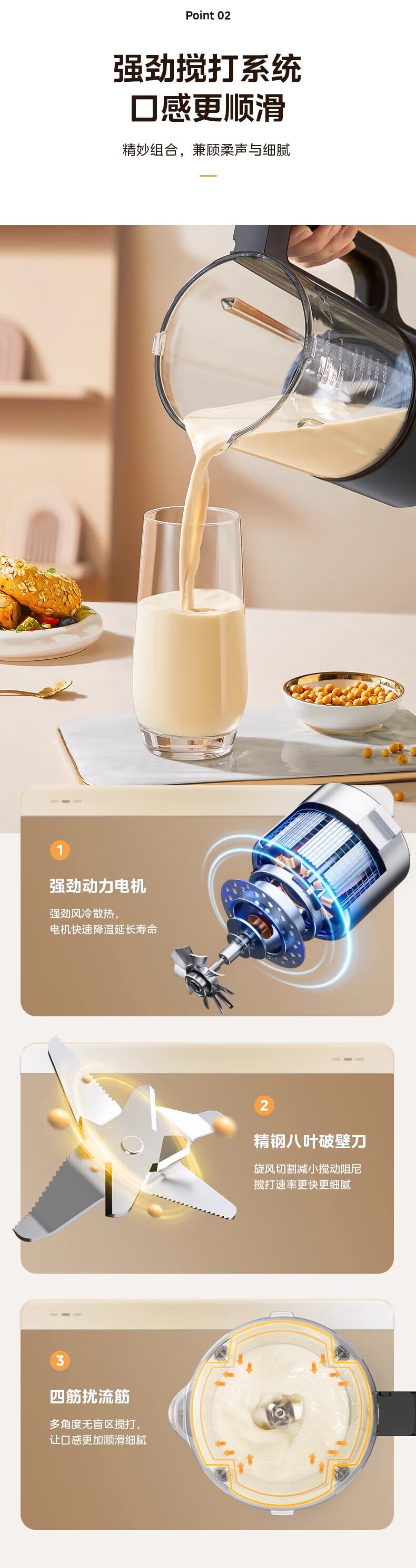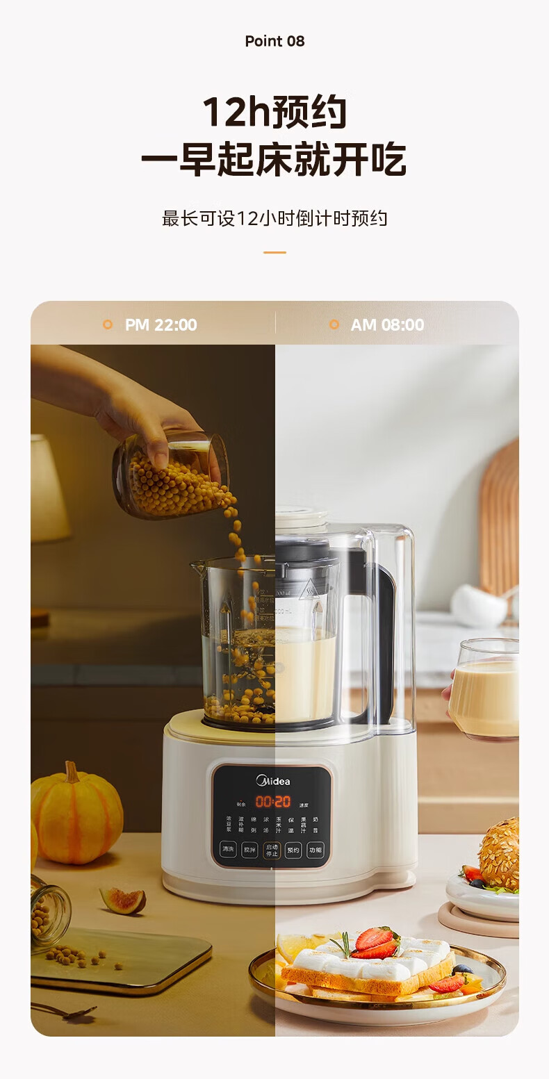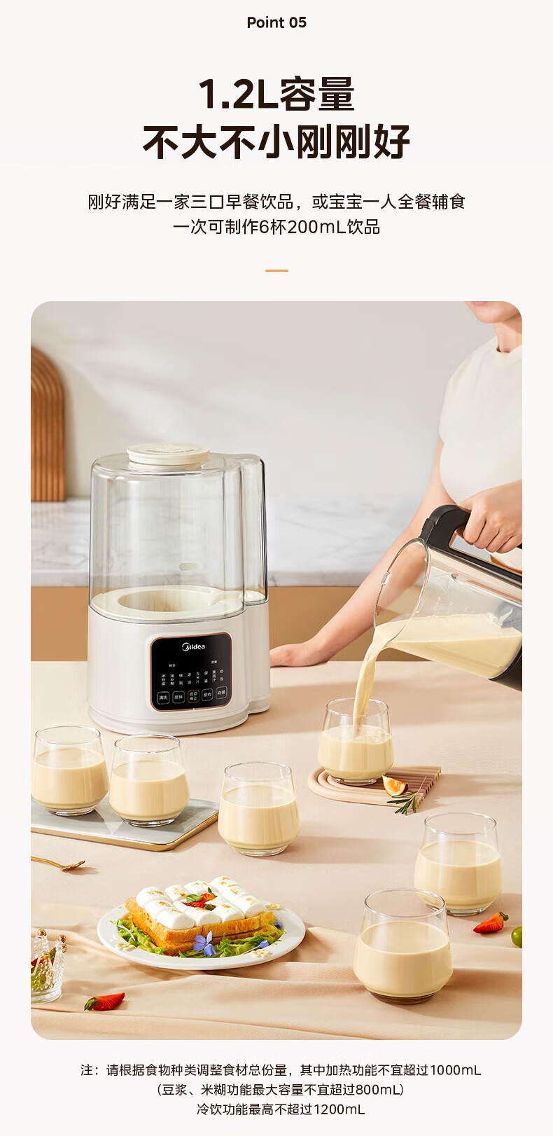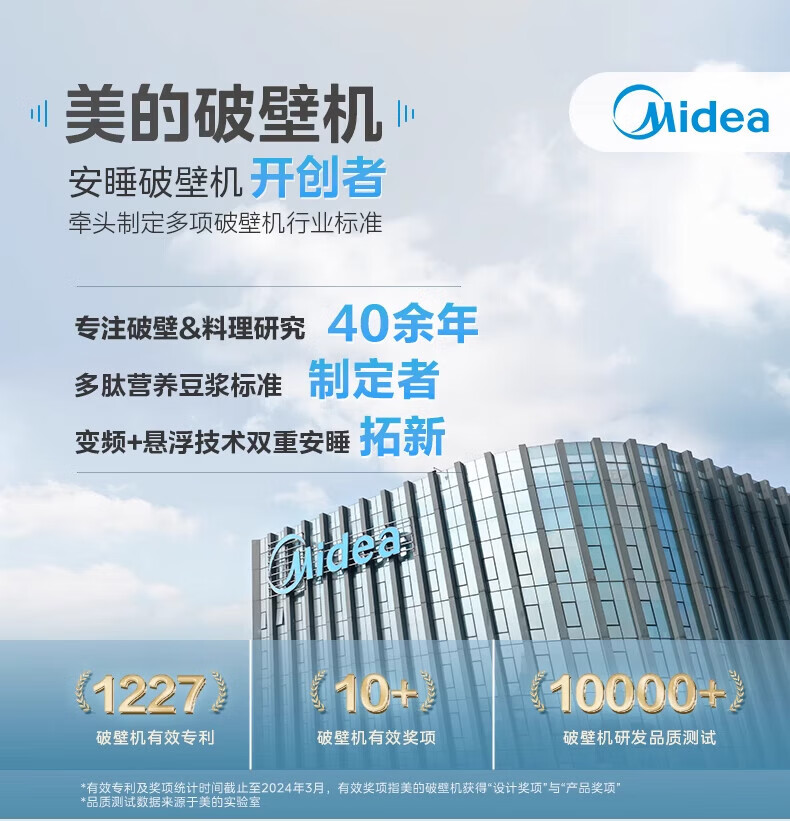 美的(Midea)破壁机家用豆浆机全自动清洗1.2L小型轻音降噪榨汁料理机2-3人用五谷杂粮辅食机3-4人 PB40ST11