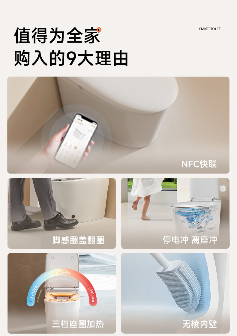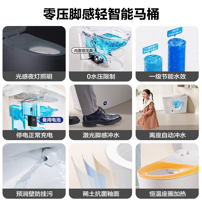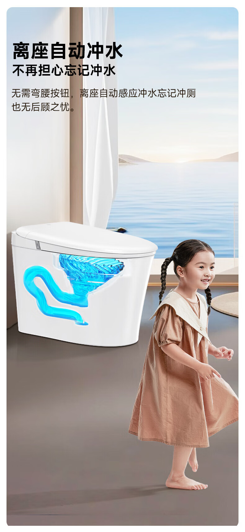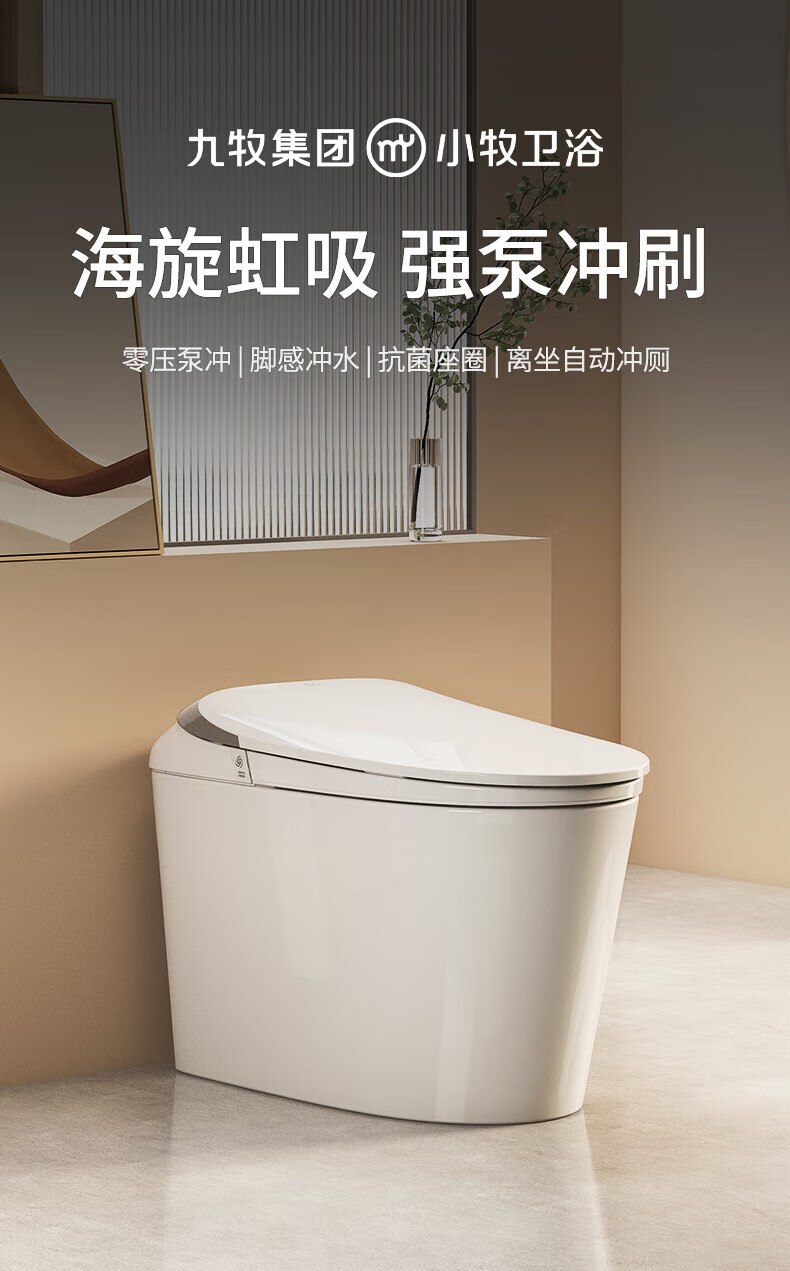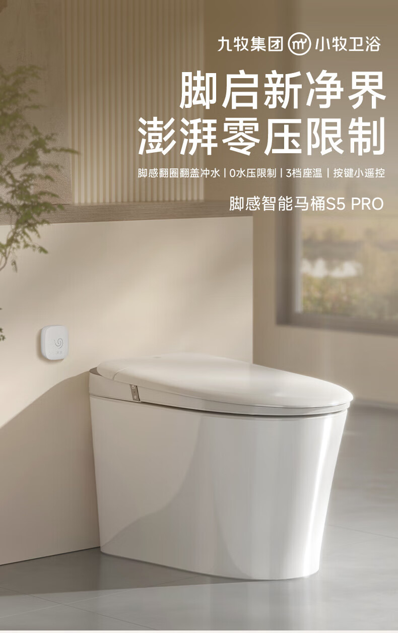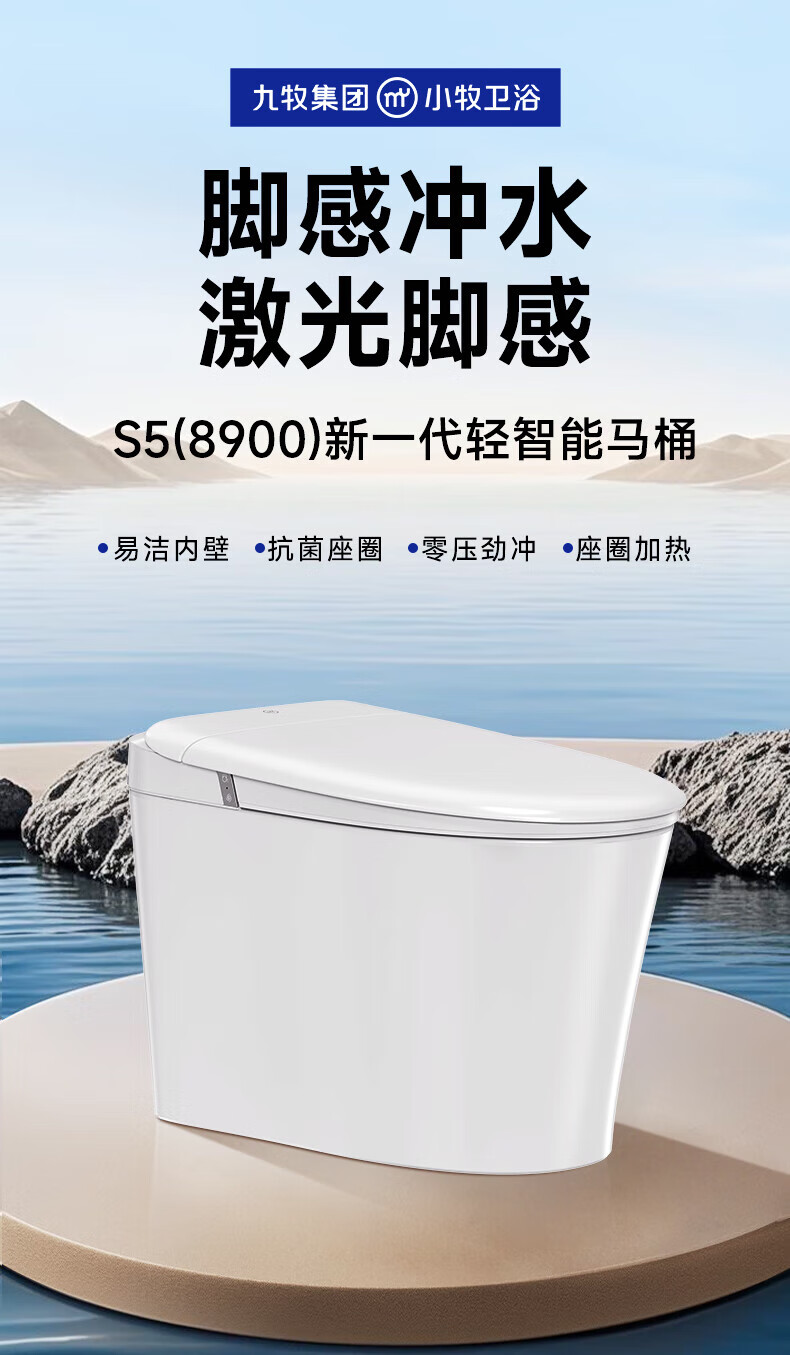 九牧(JOMOO)轻智能马桶 小牧卫浴轻音虹吸式坐便器 激光脚感离座冲水恒温抗菌 S5pro-脚感翻盖+零压+无棱内壁 305/300mm 【290-390mm选择】