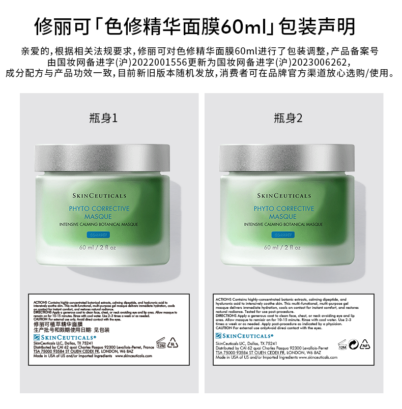 修丽可色修面膜60ml 护肤品舒缓泛红保湿补水修护圣诞礼物送女友