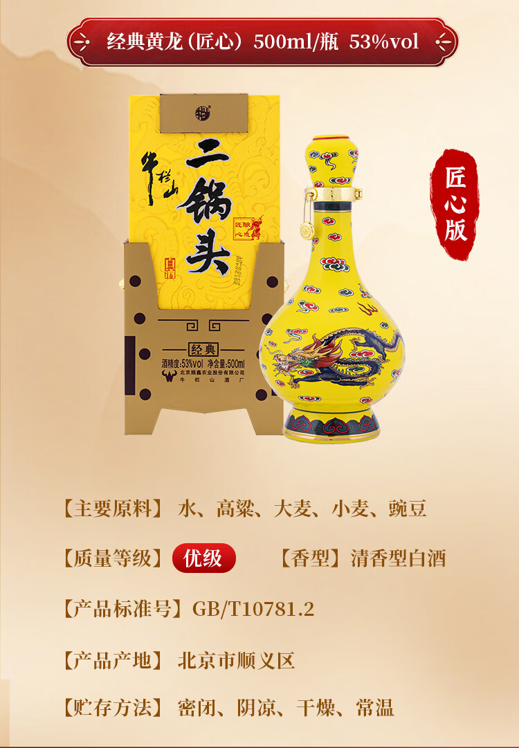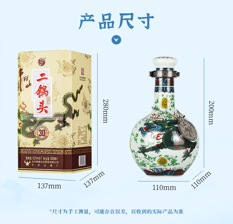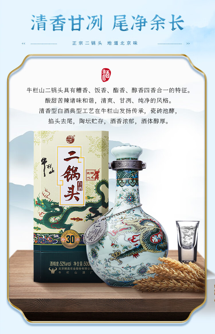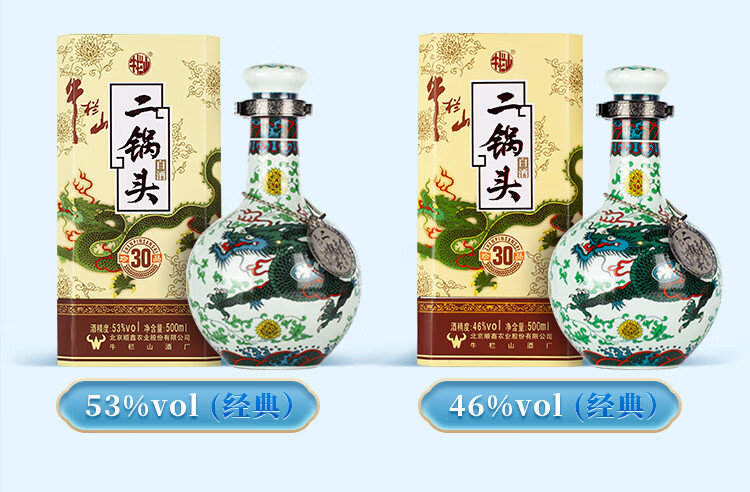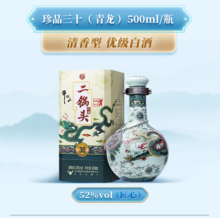 牛栏山酒厂直供 清香型二锅头白酒 纯粮口粮酒礼盒装节日送礼 53%vol 500mL 1瓶 珍品三十 500mL*1瓶礼盒装