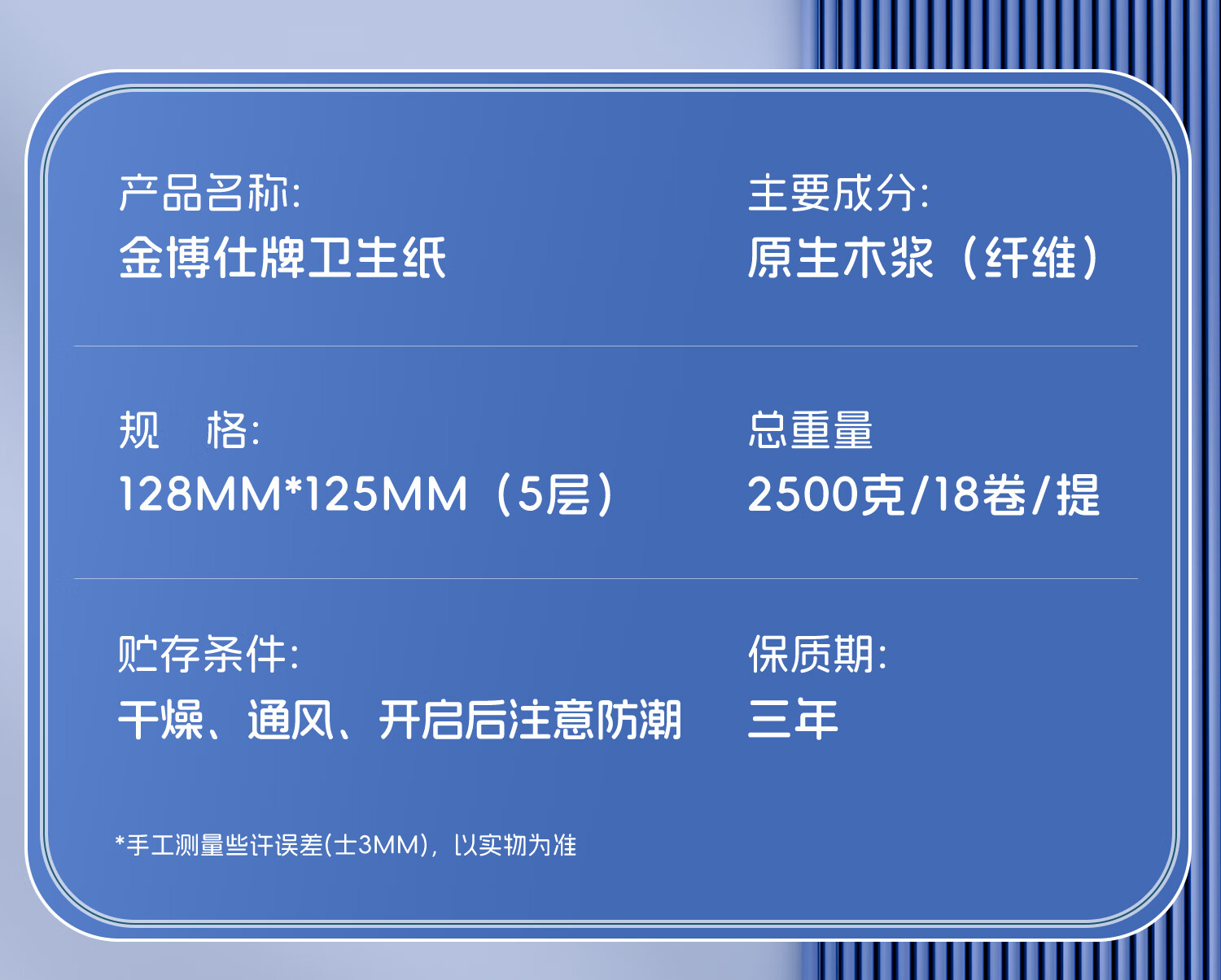 金博仕无芯卷纸吉莱尔系列5层大卷加厚原生木浆款实惠装大卷妇婴纸厕纸 5层 51.25g*16卷 【1.64斤加量装】