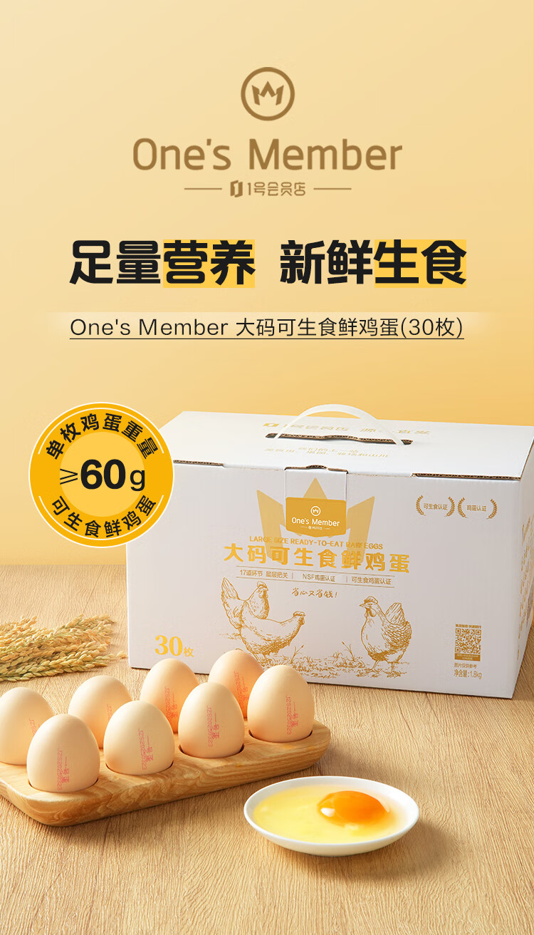 1号会员店可生食鸡蛋30枚净重3.6斤精选大码蛋礼盒装 源头直发
