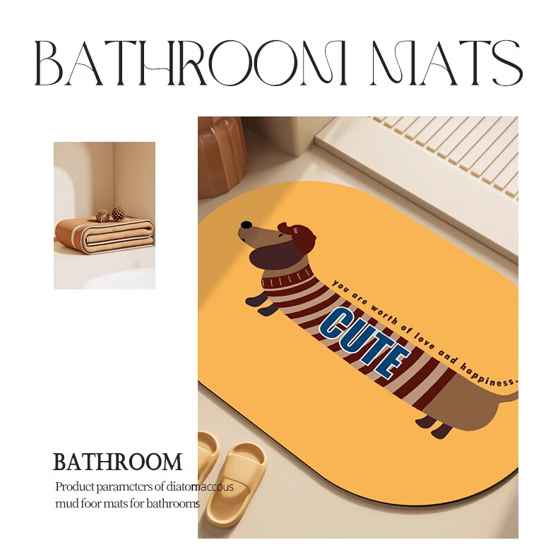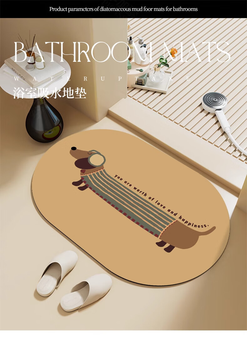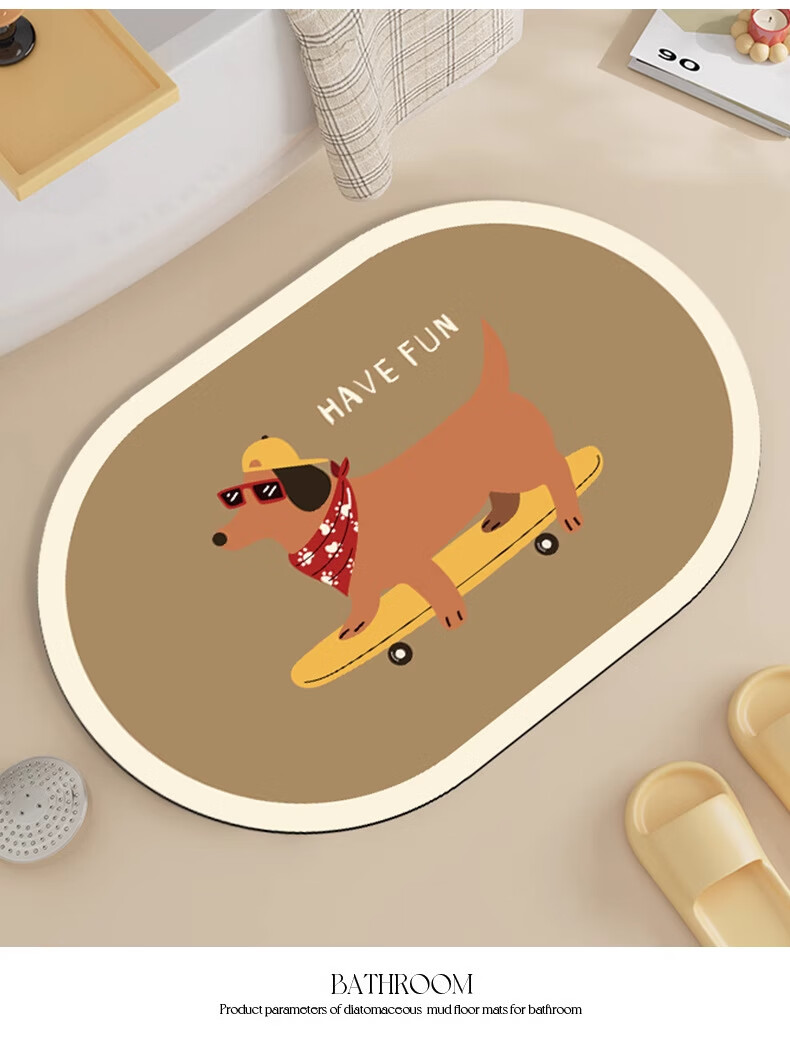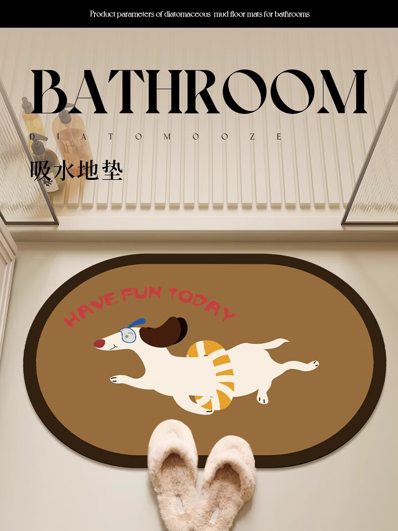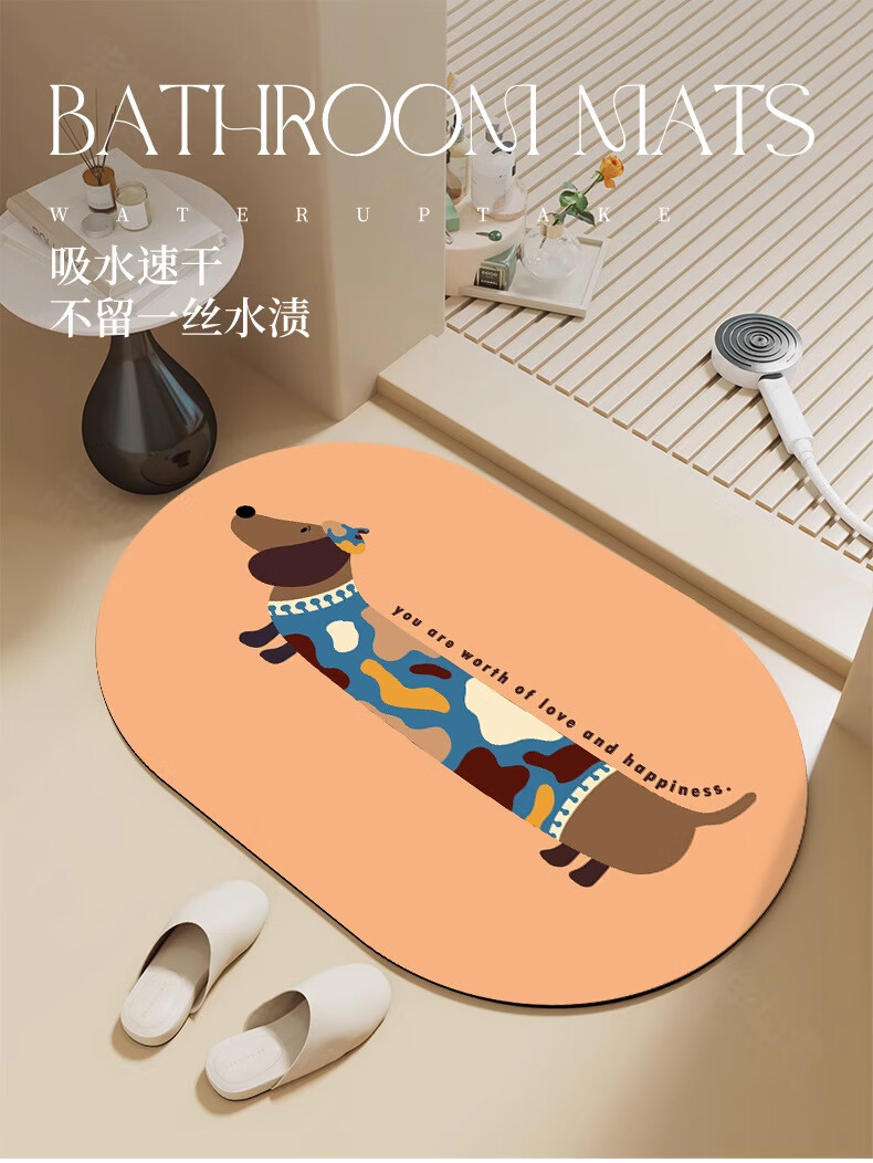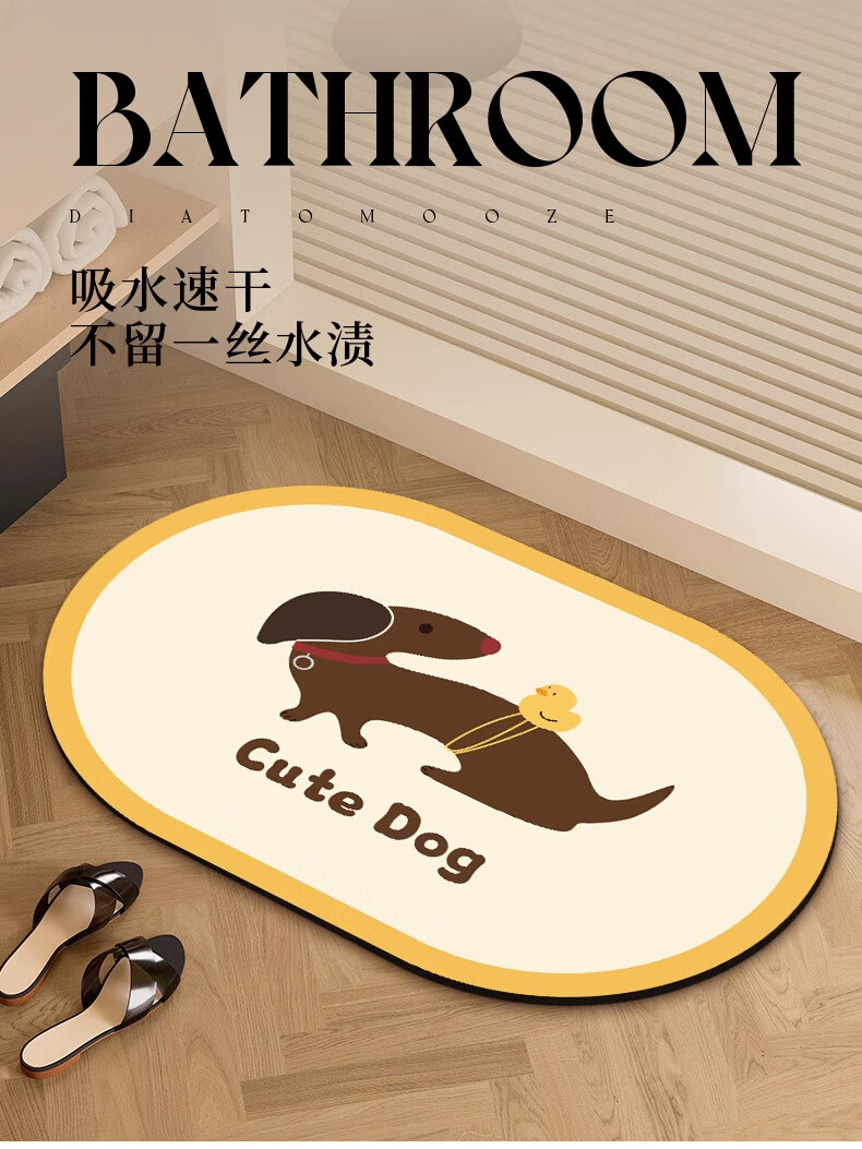 金玉铭川浴室地垫卫浴吸水垫子卫厕所生间门口脚垫家用入户门防滑垫可定制 GZN-嗨皮狗狗-椭圆 40X60cm【吸水速干防滑】