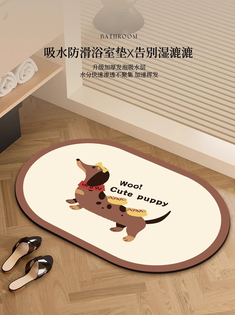 季象浴室脚垫软科技绒速干吸水防滑垫子厕所卫生间门口洗手间卫浴地垫 GZN-腊肠狗狗款式-A 40x60cm