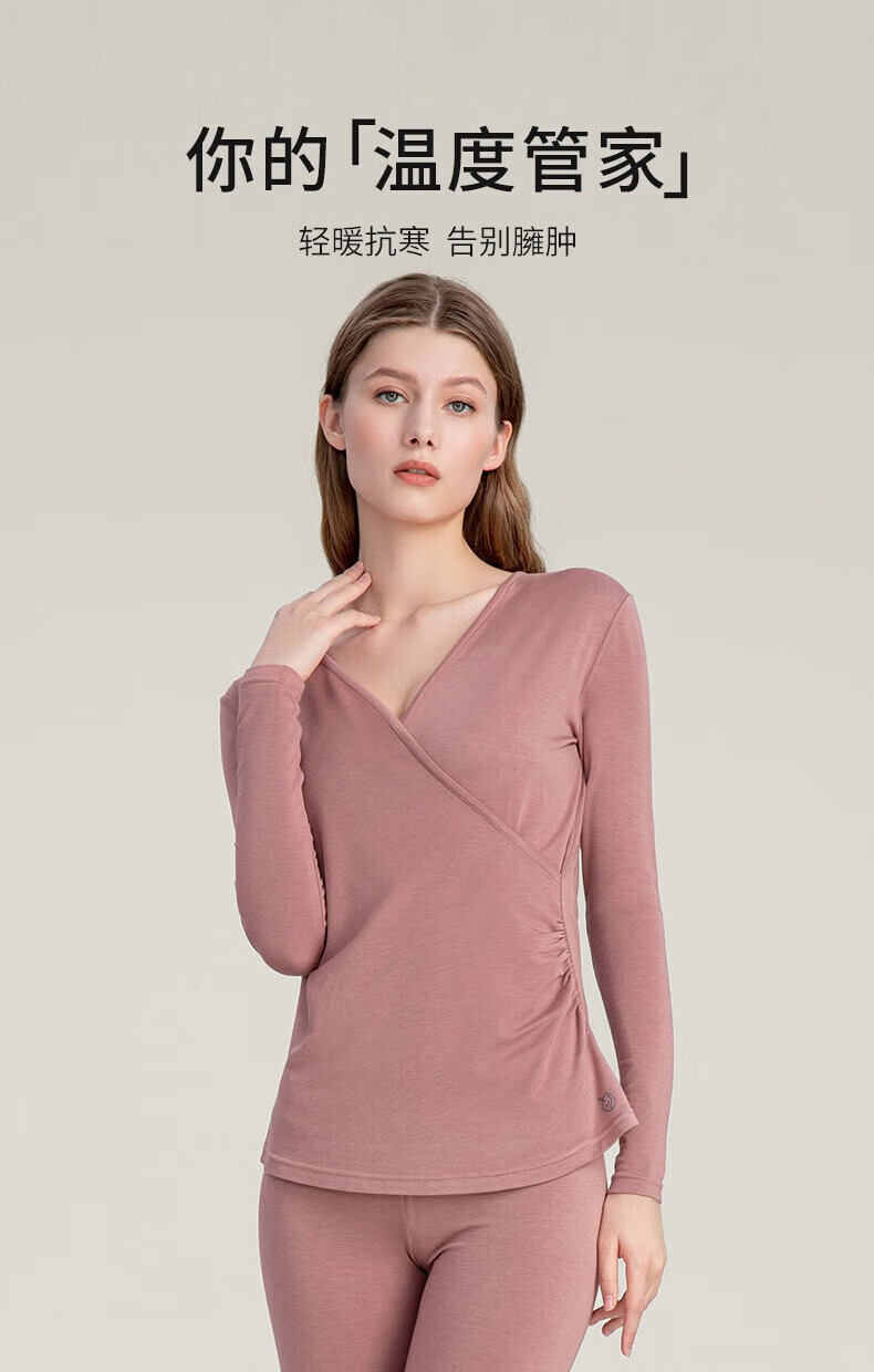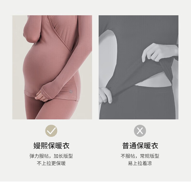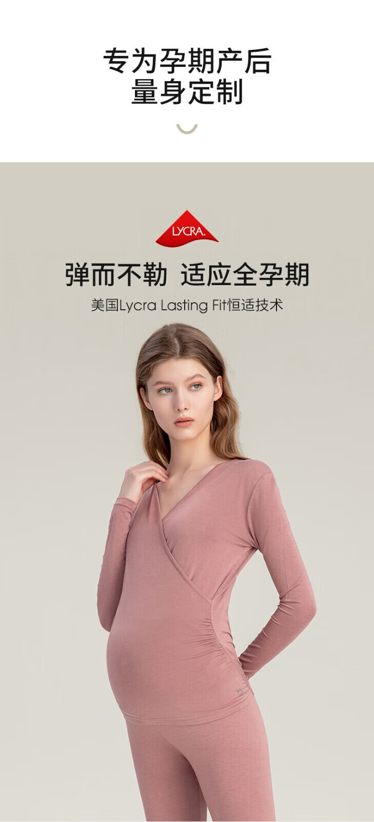 嫚熙(EMXEE)皮孕妇秋衣秋裤套装秋冬哺乳月子服保暖内衣 卡其粉【中暖-发热纱】 XL