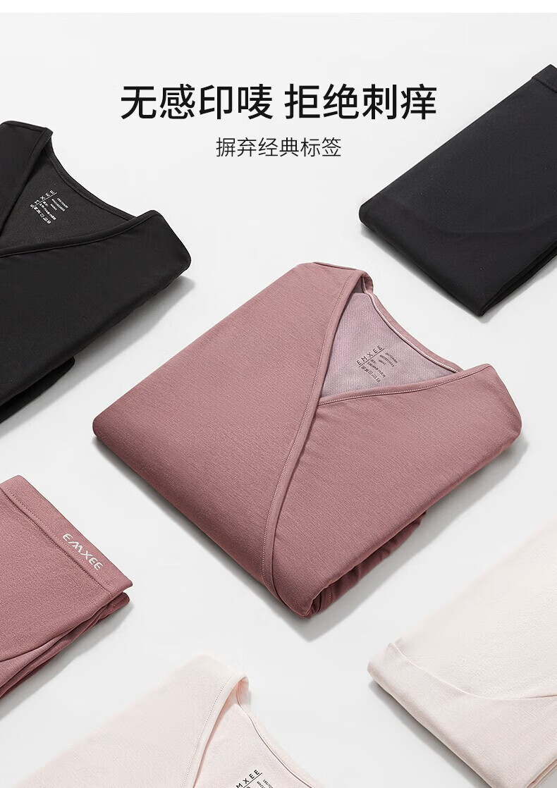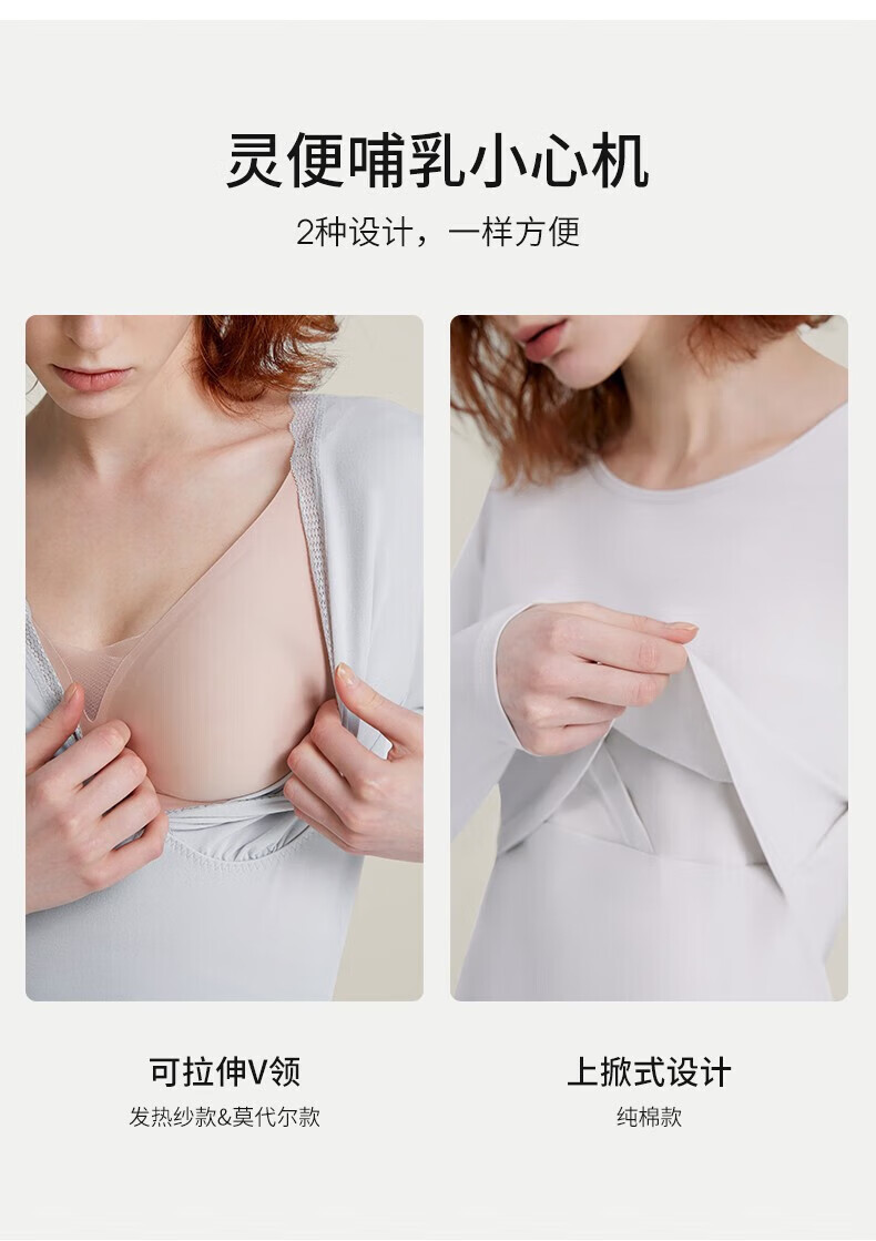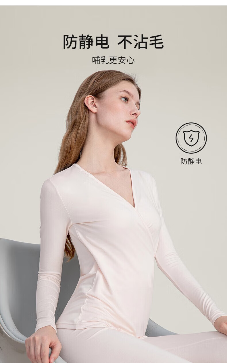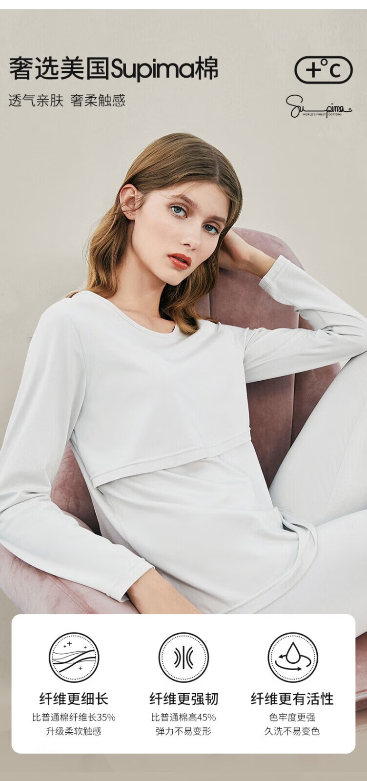 嫚熙(EMXEE)皮孕妇秋衣秋裤套装秋冬哺乳月子服保暖内衣 卡其粉【中暖-发热纱】 XL
