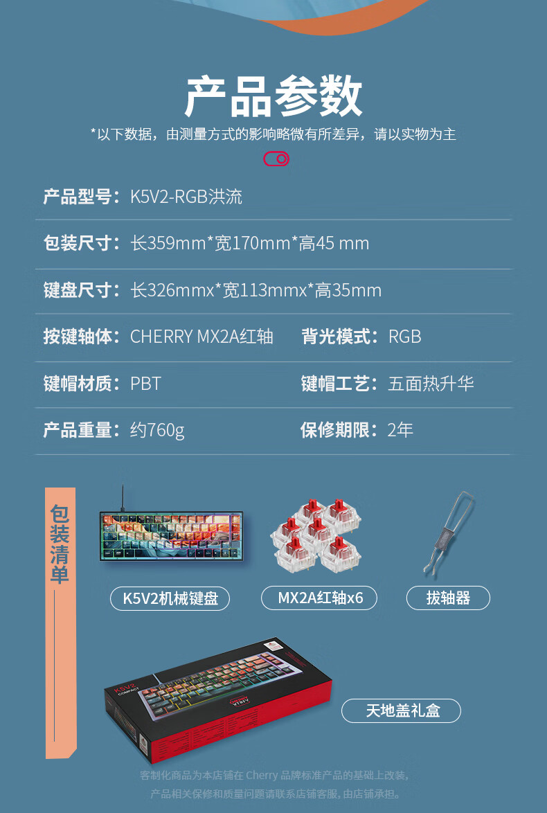 CHERRY-XTRFY 樱桃 K5V2客制化电竞游戏机械键盘热插拔适配吃鸡FPS绝地求生CSGO2打瓦罗兰特三角洲 K5V2 洪流