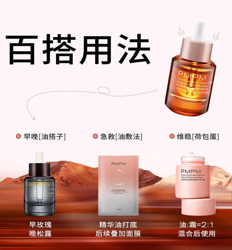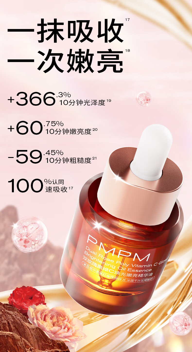 PMPM玫瑰精华油60ml面部精油嫩亮修护维稳护肤品生日礼物女圣诞油养肤