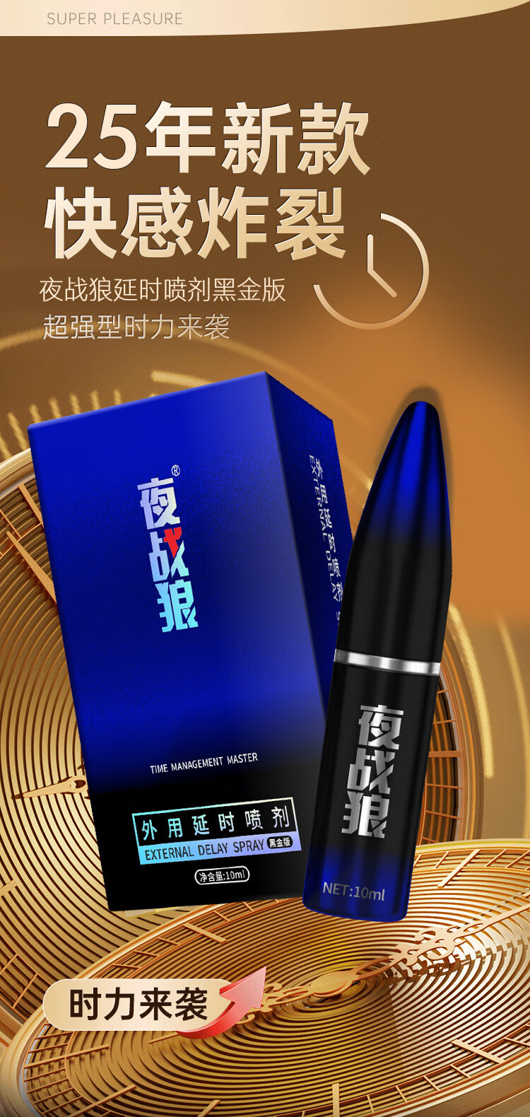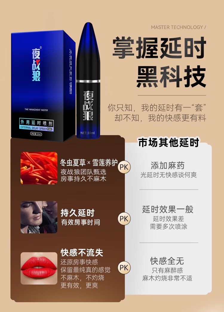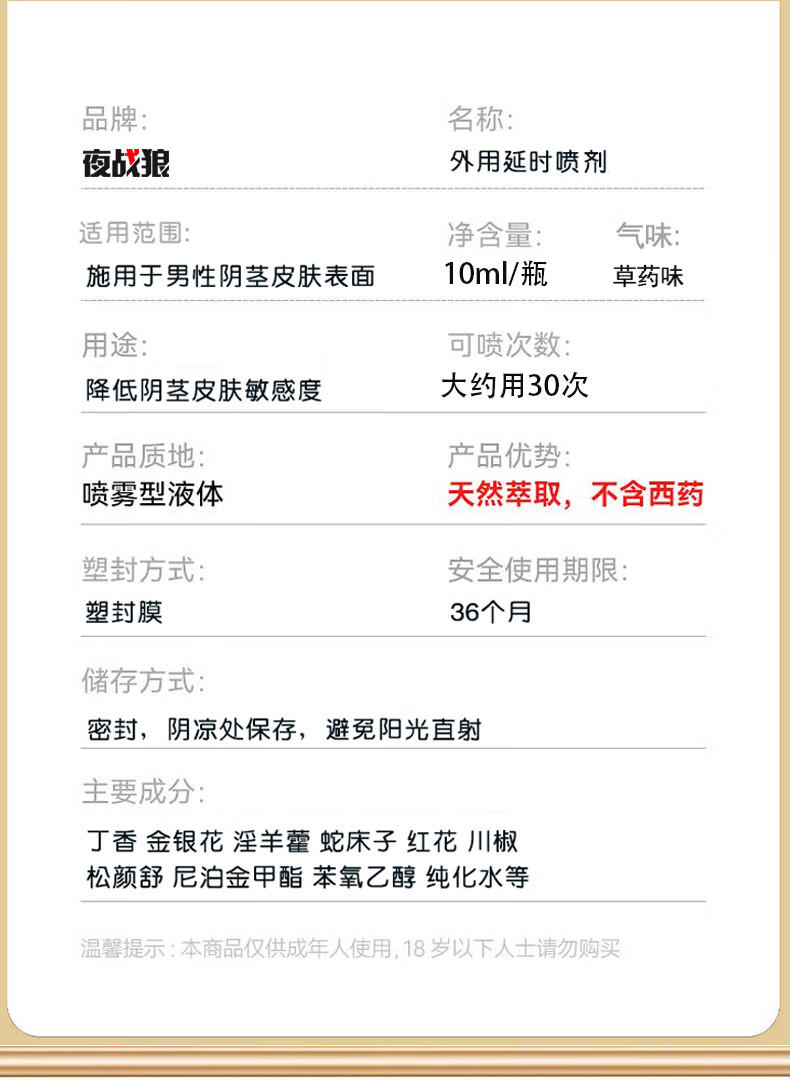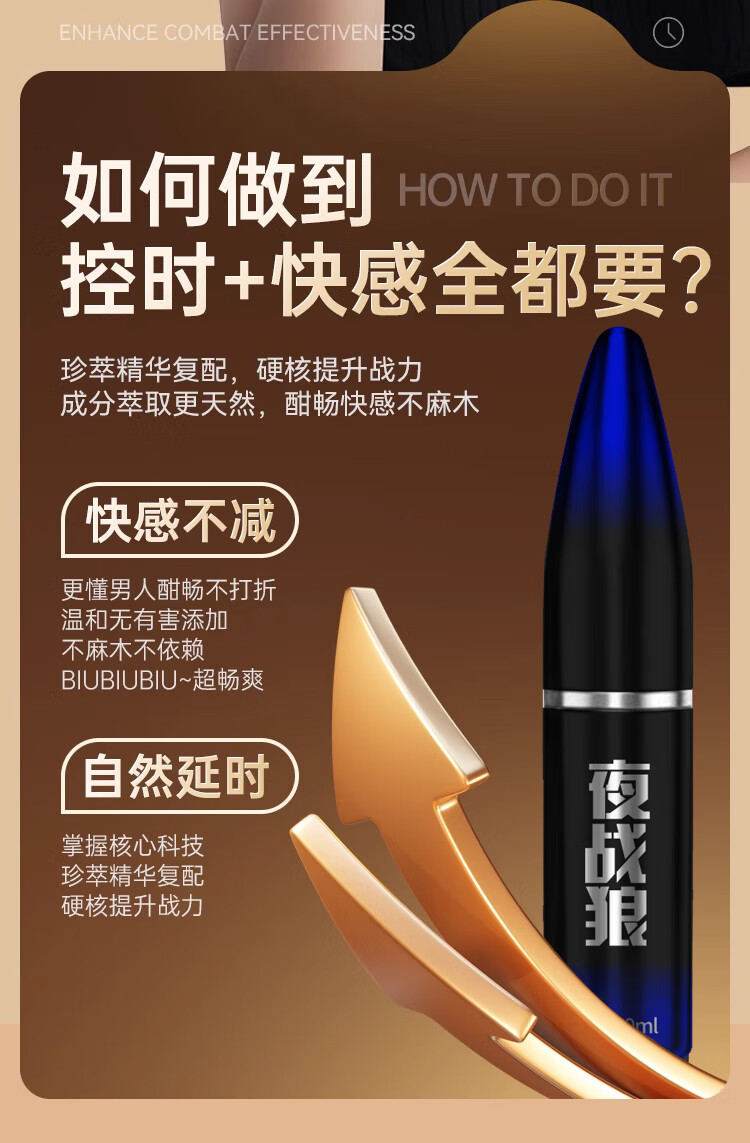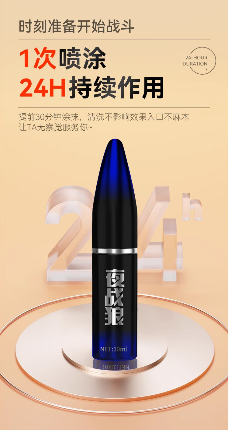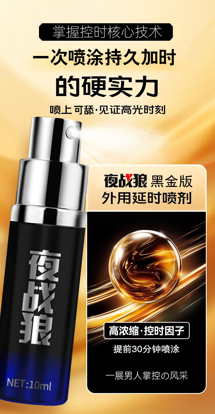 夜战狼子弹头男用延迟延时喷雾敏感早泄射精快久插不射持久喷剂印度神油 3代旗舰加强配方-黄金款10ml
