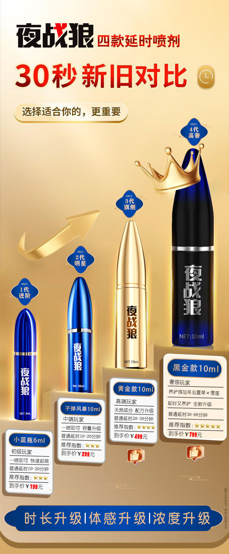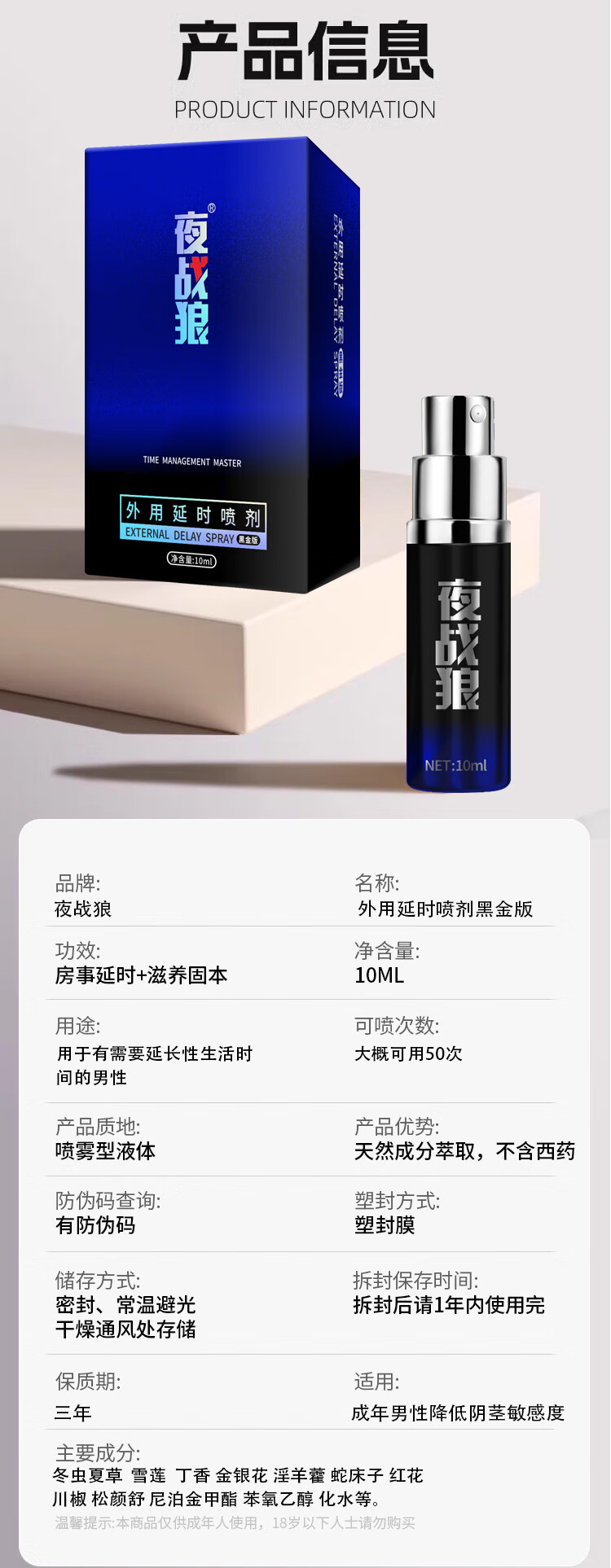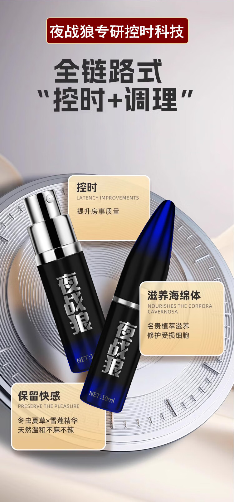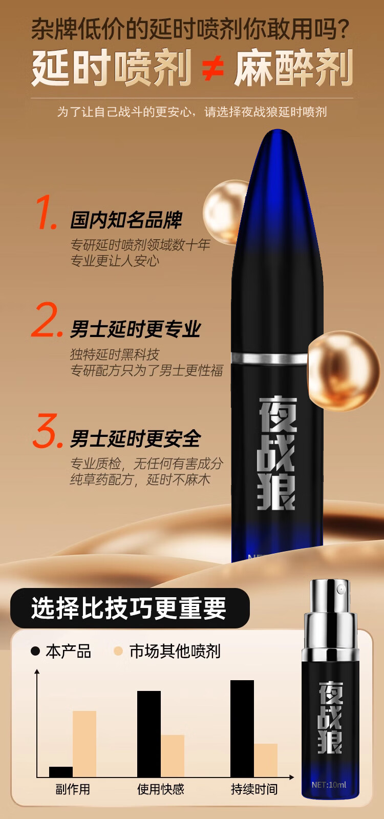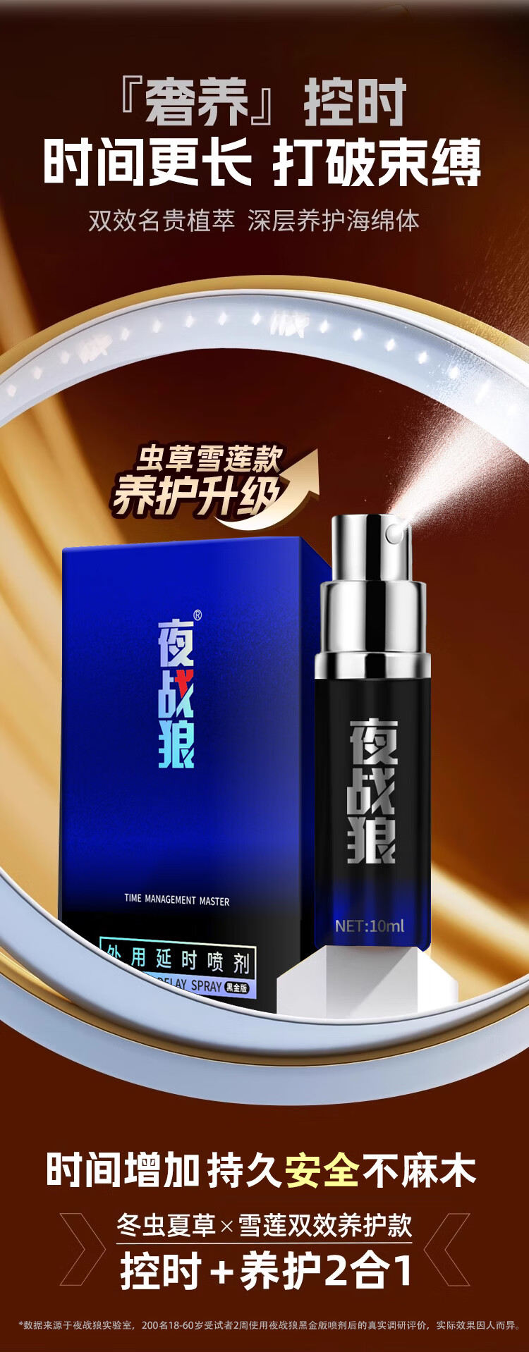 夜战狼子弹头男用延迟延时喷雾敏感早泄射精快久插不射持久喷剂印度神油 3代旗舰加强配方-黄金款10ml