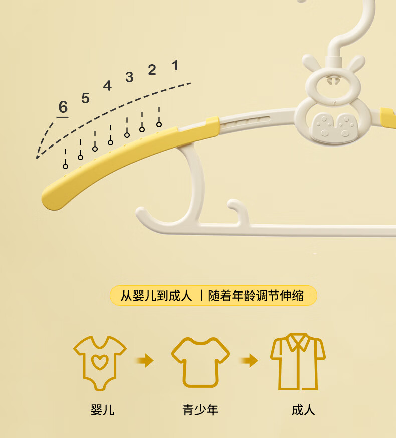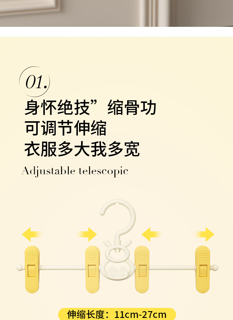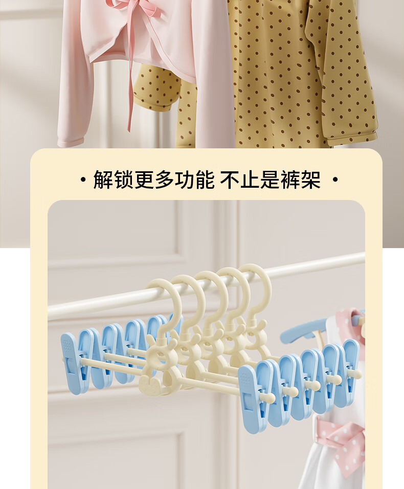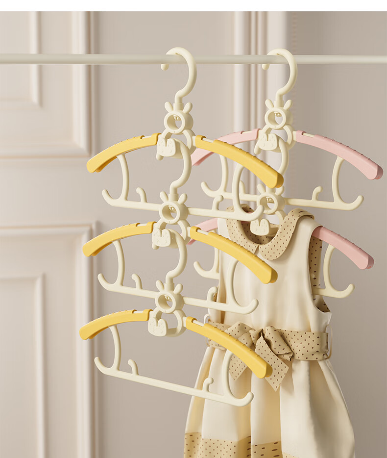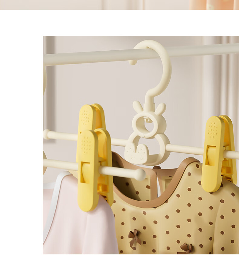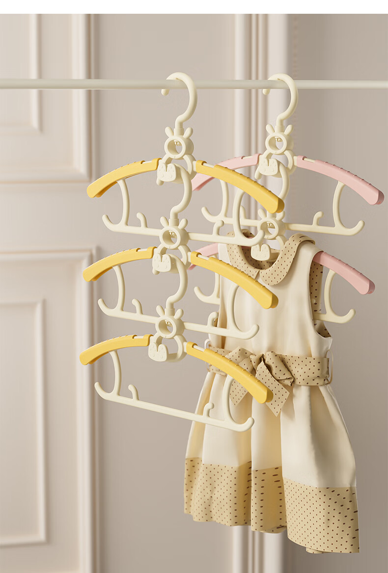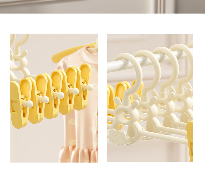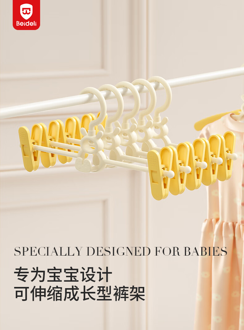 贝得力宝宝衣架可伸缩叠挂新生婴儿童专用宝宝衣撑裤夹子晾衣婴儿衣架 衣架10个+裤夹10个-奶黄油可叠挂