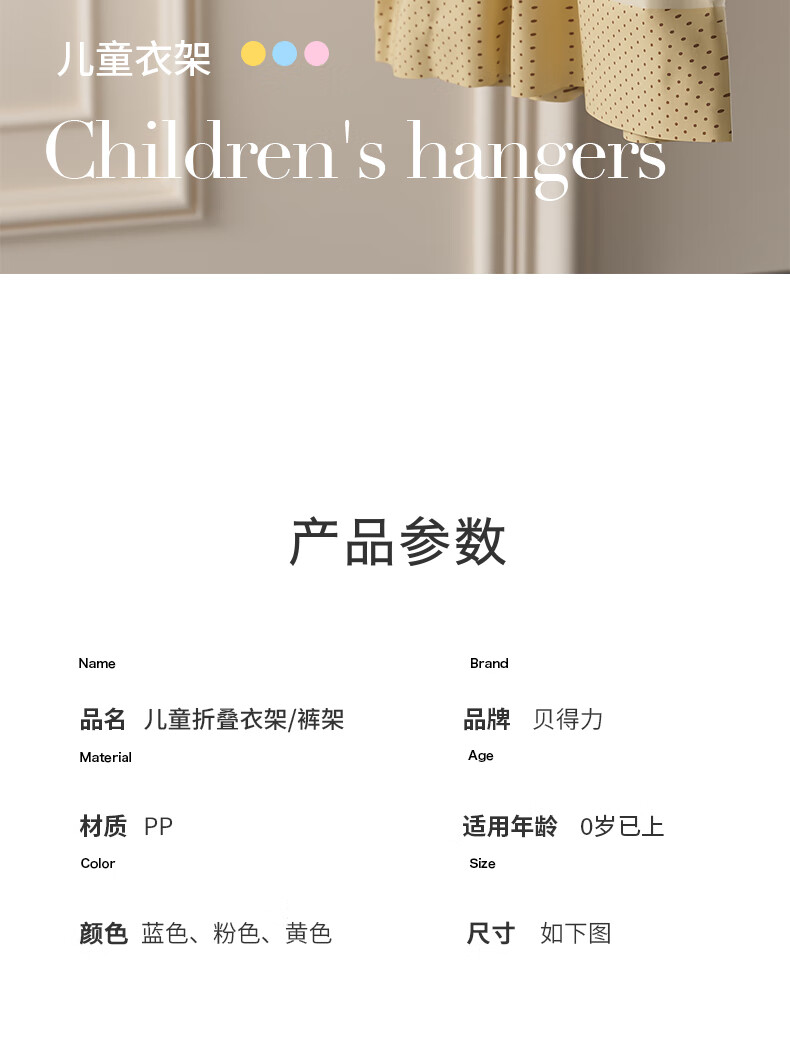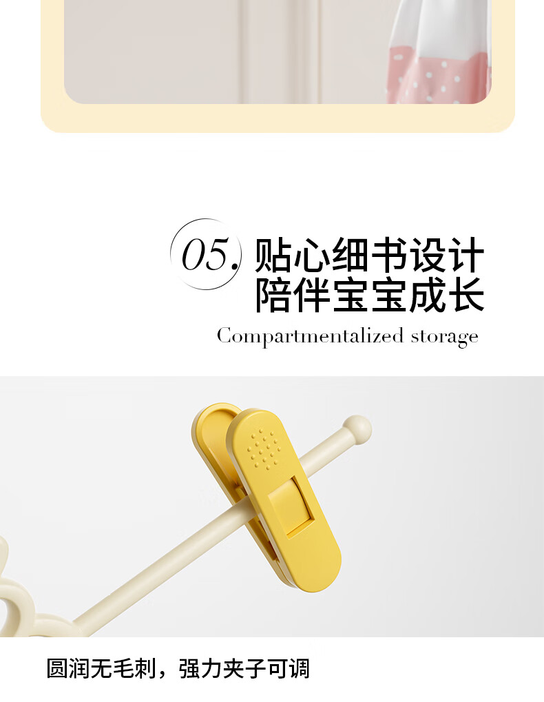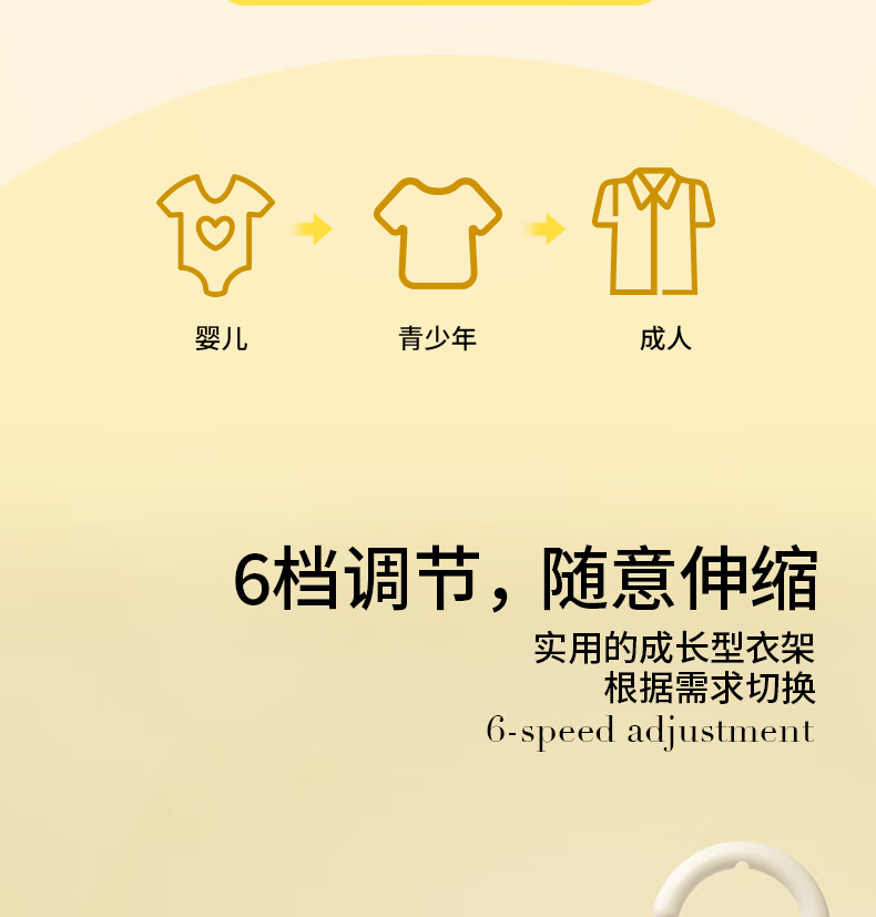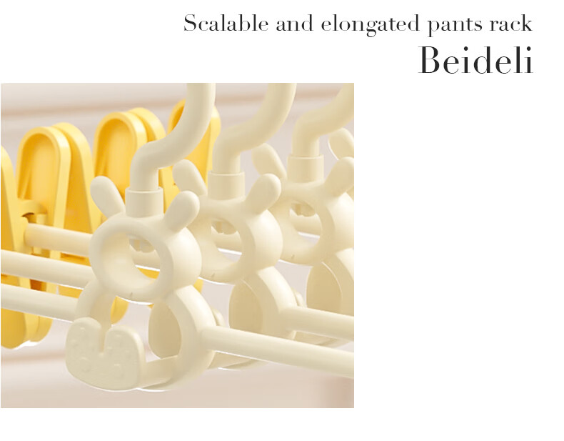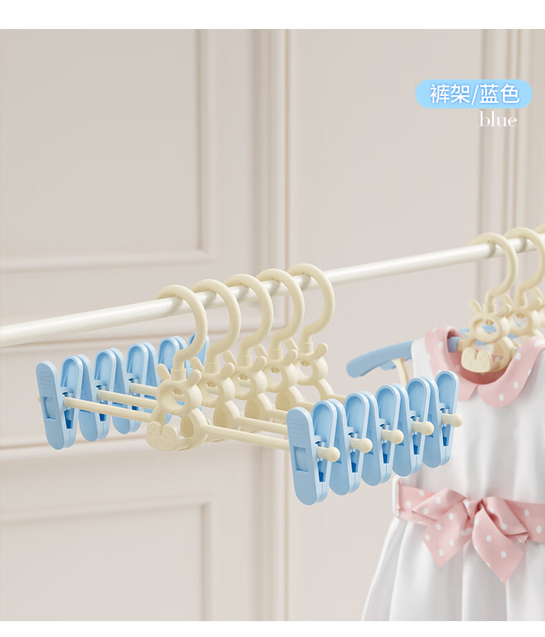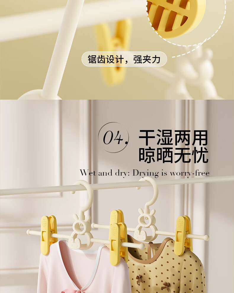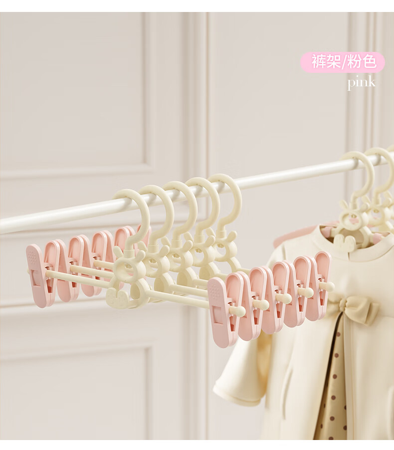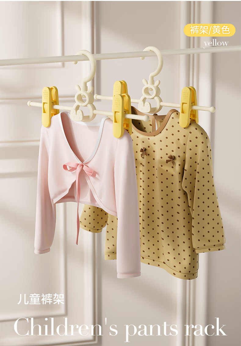 贝得力宝宝衣架可伸缩叠挂新生婴儿童专用宝宝衣撑裤夹子晾衣婴儿衣架 衣架10个+裤夹10个-奶黄油可叠挂