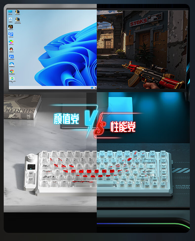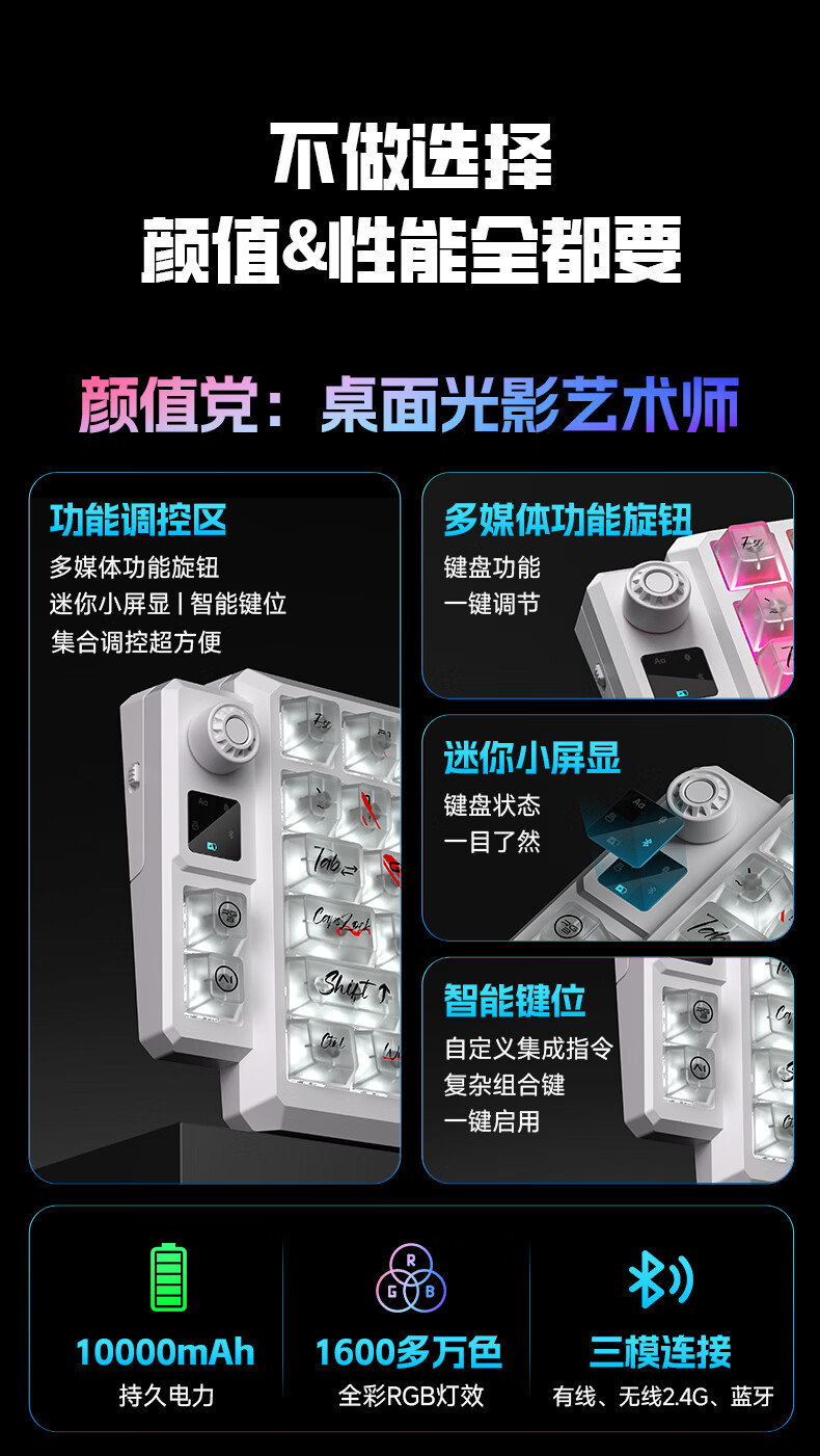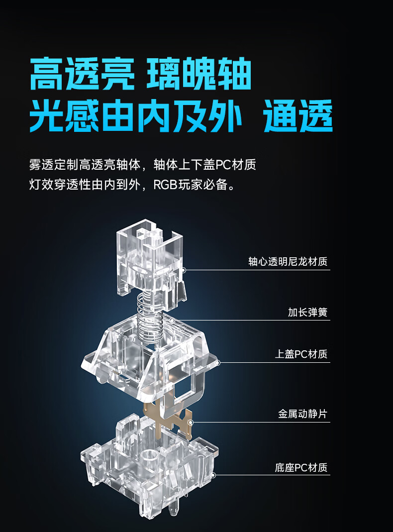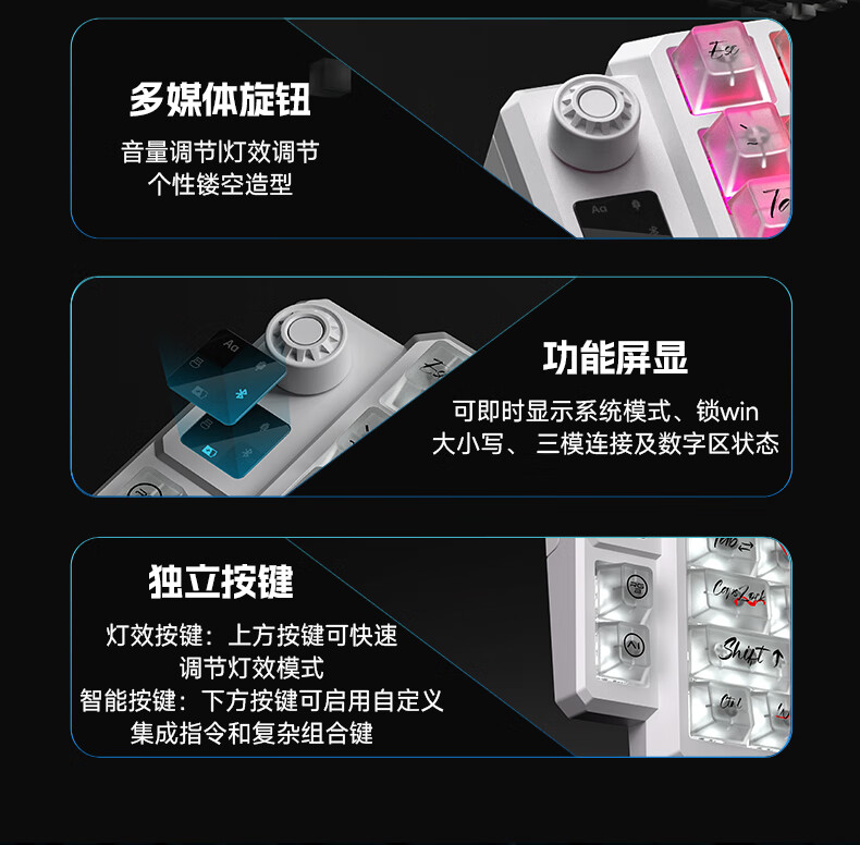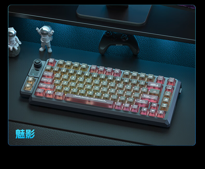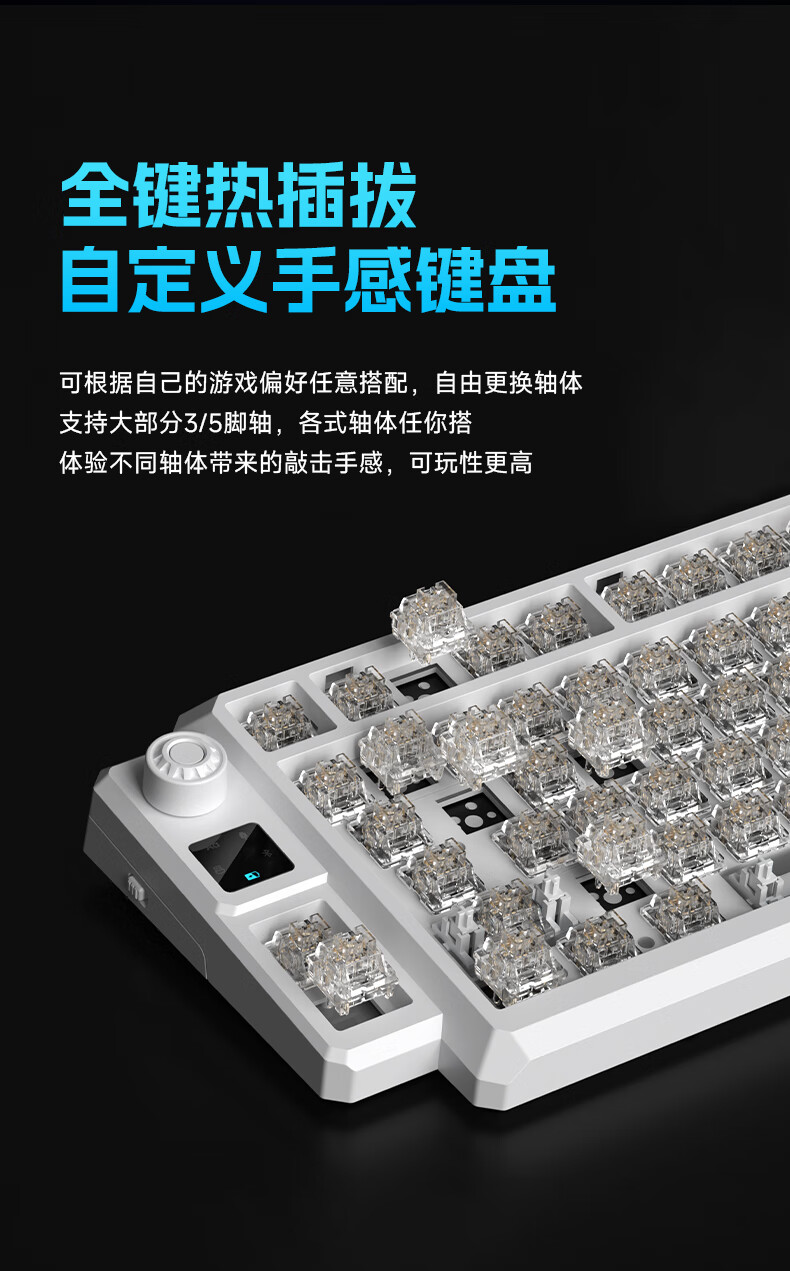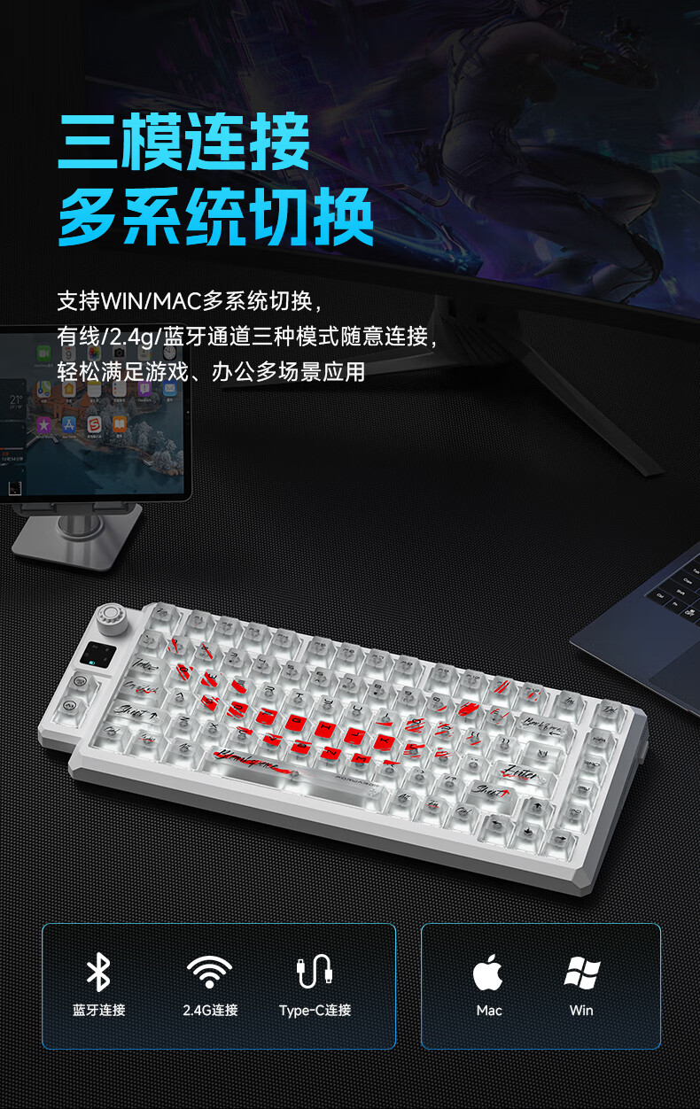 狼途T75三模透明键盘高颜值机械键盘雾透键帽无线蓝牙有线客制化电竞游戏键盘 狂飙光迹-璃魄轴-三模10000mAh