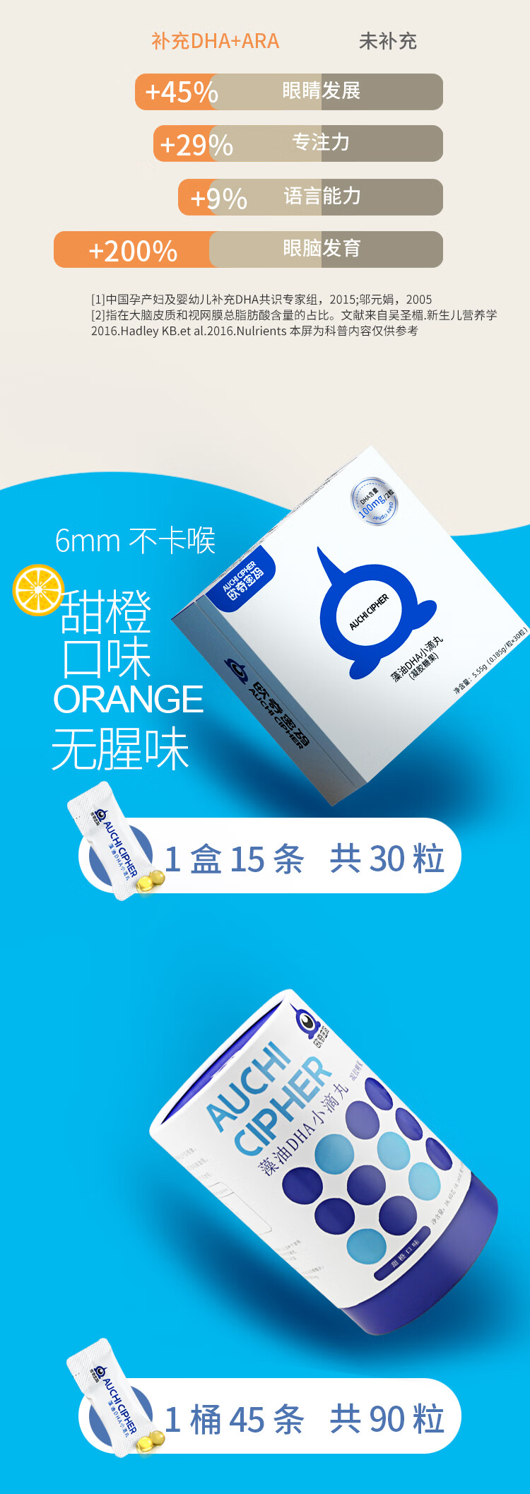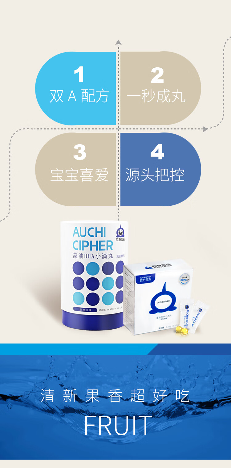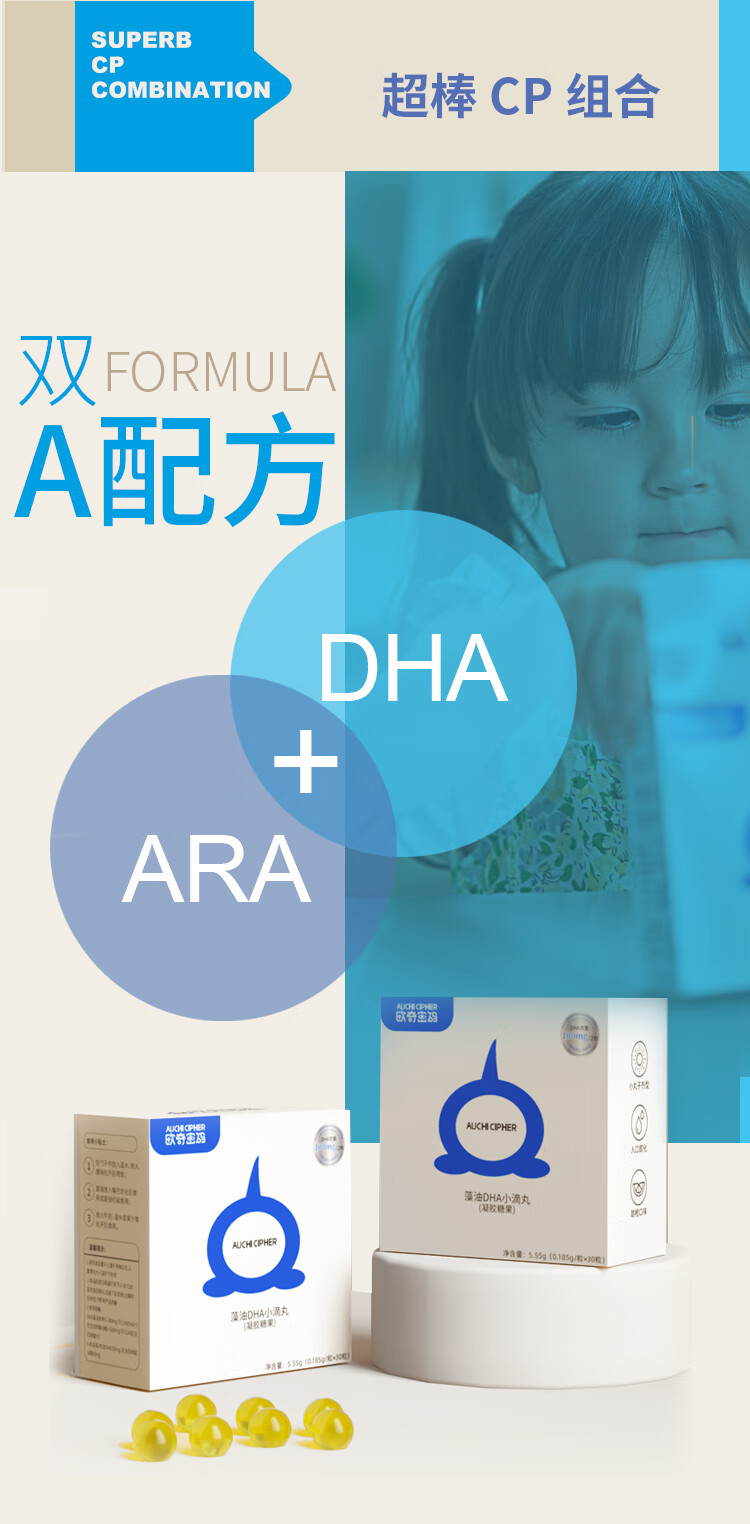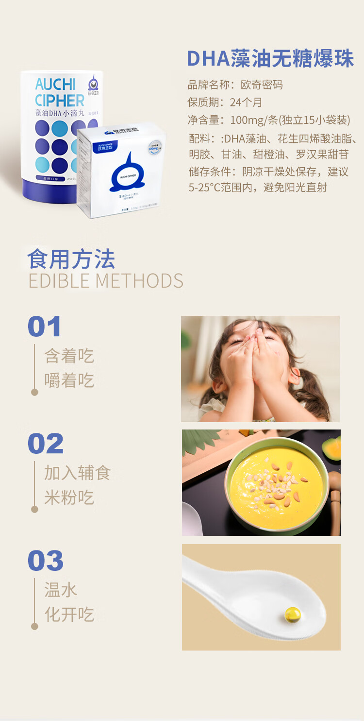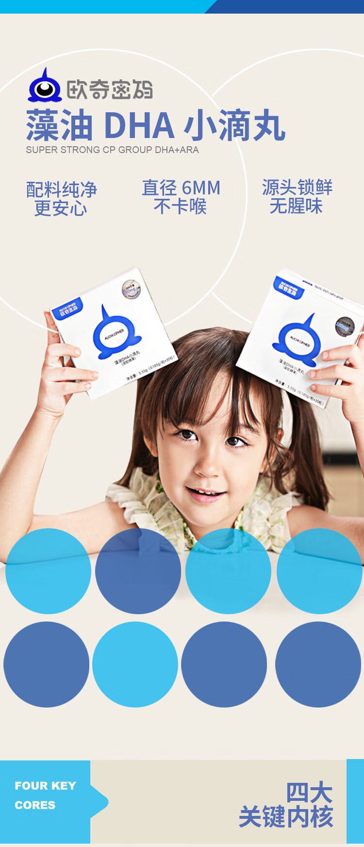 欧奇密码藻油DHA小滴丸凝胶糖果 小金豆无腥味 宝宝儿童眼脑发育营养品 DHA90粒*1