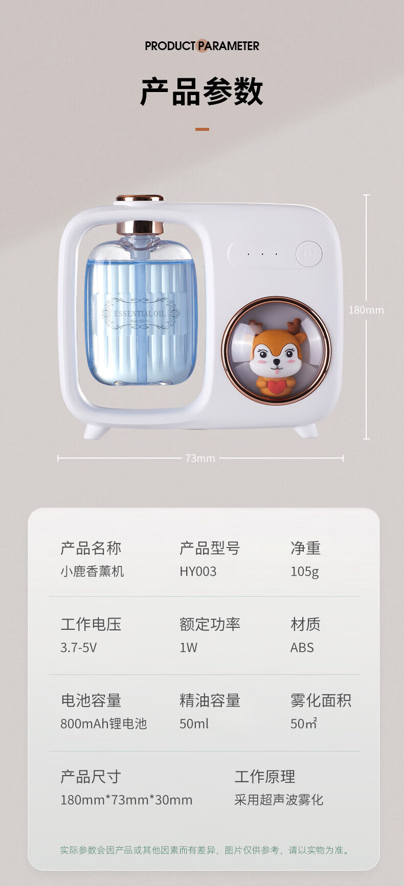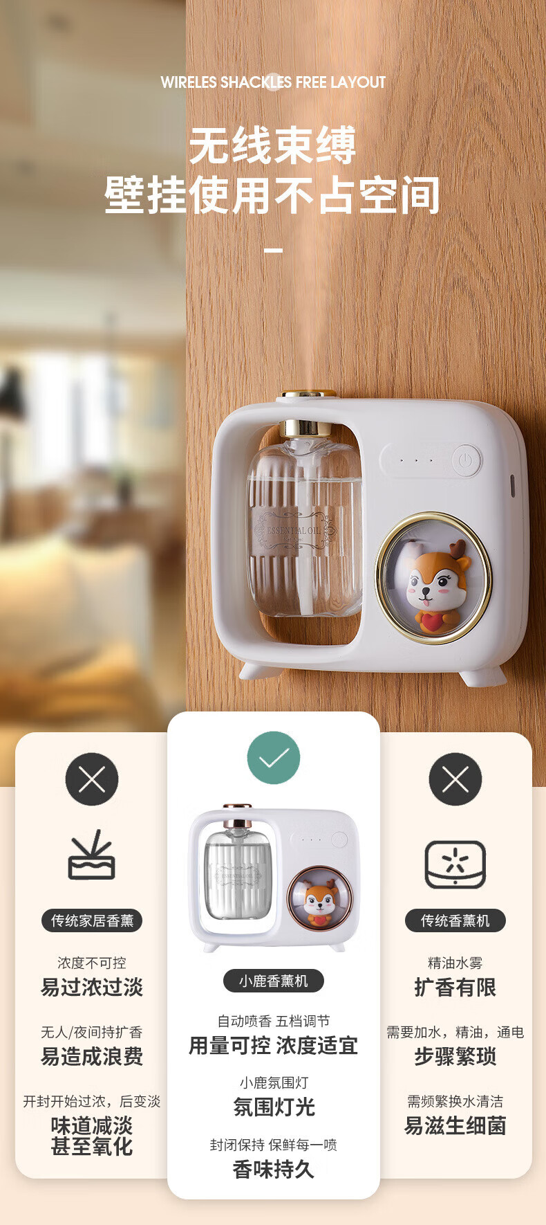 玛塔莉莱(Matarile)高颜值香薰机定时自动喷雾喷香机家用空气清新持久除异味香氛机卧 方形-主机小鹿 【无香薰液】
