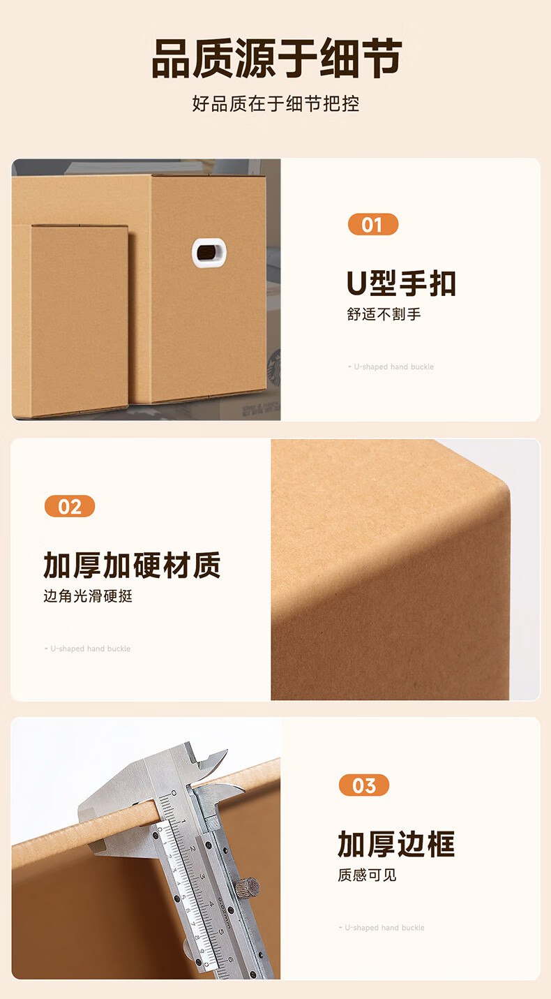 天章 (TANGO)高品质搬家纸箱有扣手60cm*40cm*50cm(5个装)五层厚打包快递箱办公储物箱