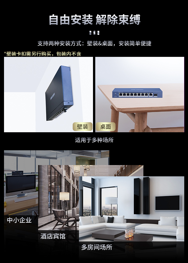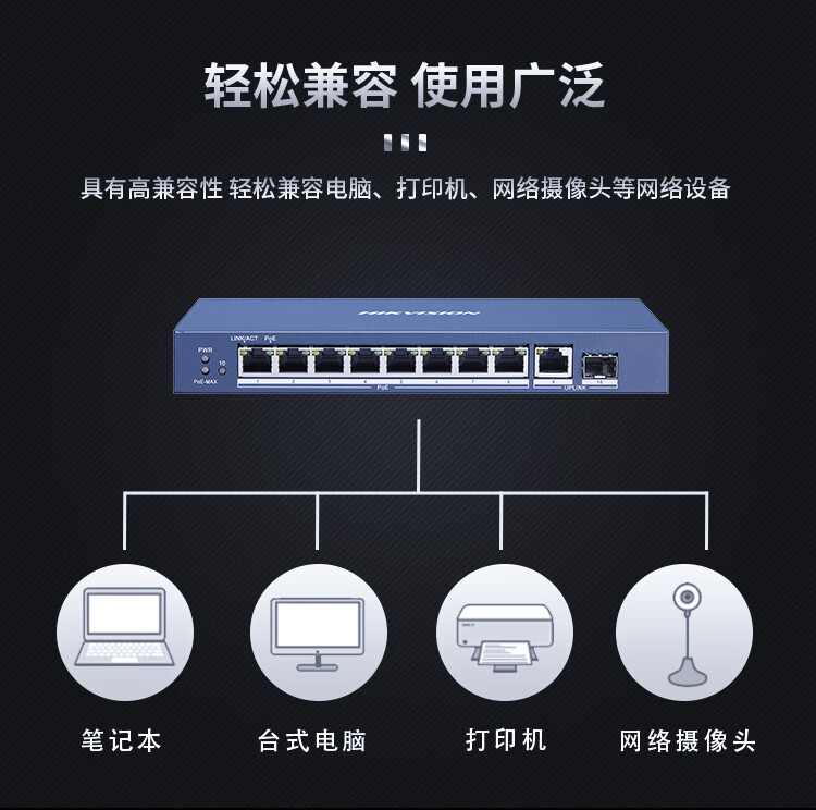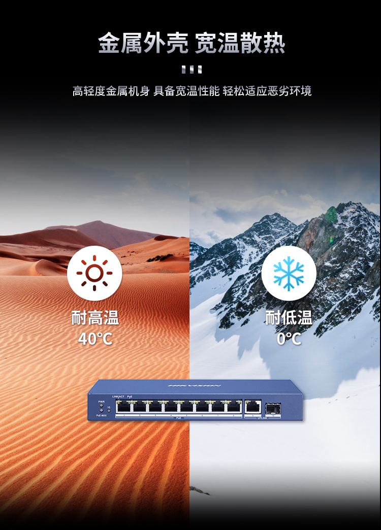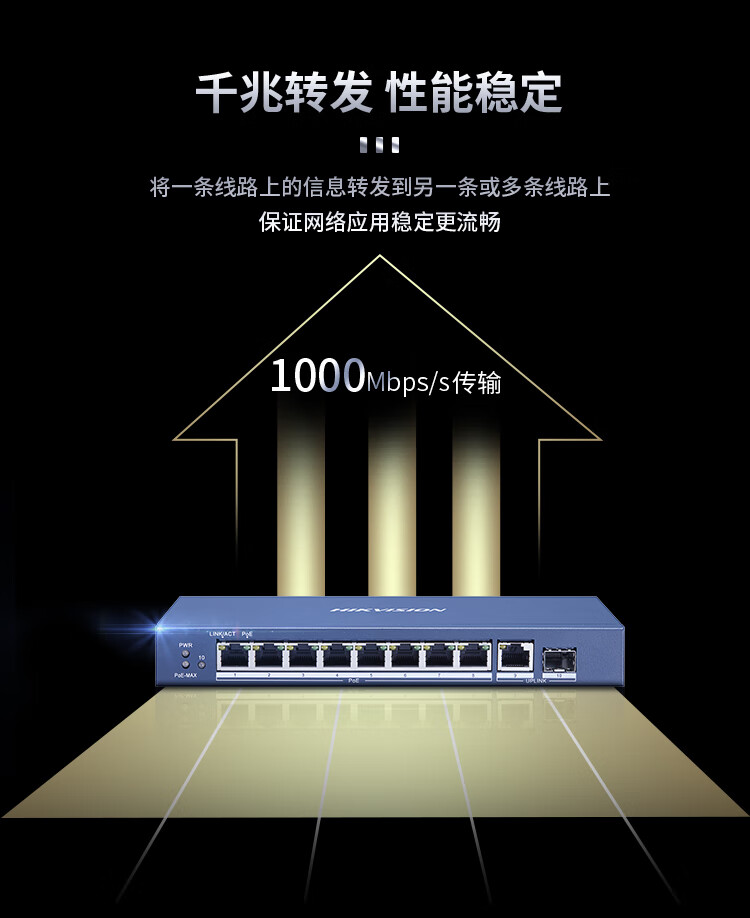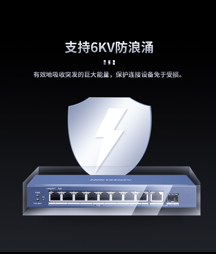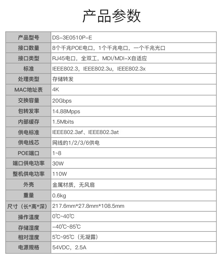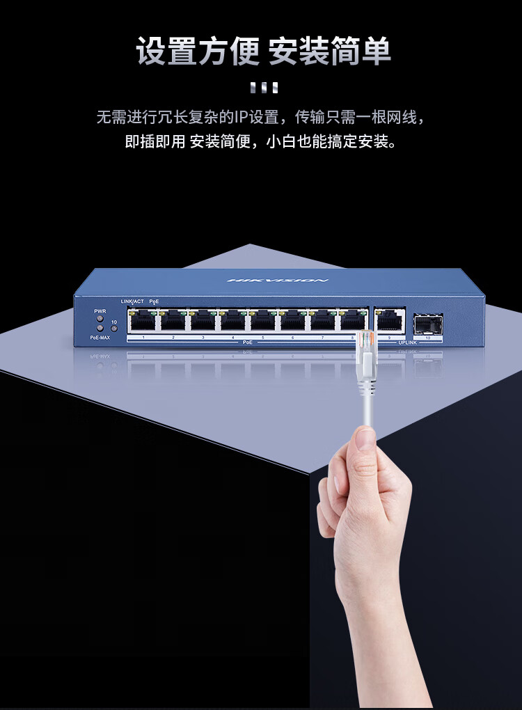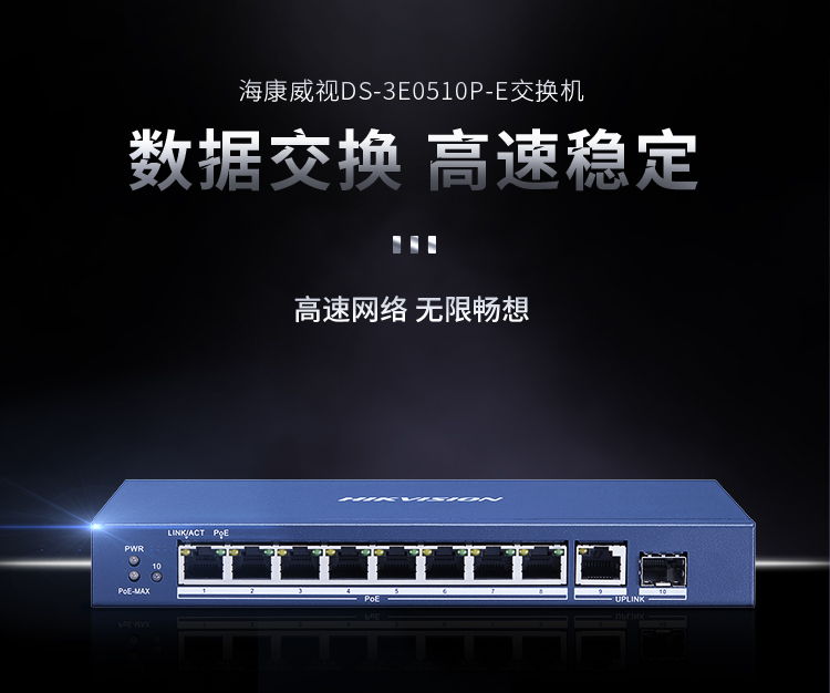 HIKVISION海康威视交换机8口POE 10口全千兆交换机网线分流网络集线分线器POE交换机DS-3E0510P-110W-E