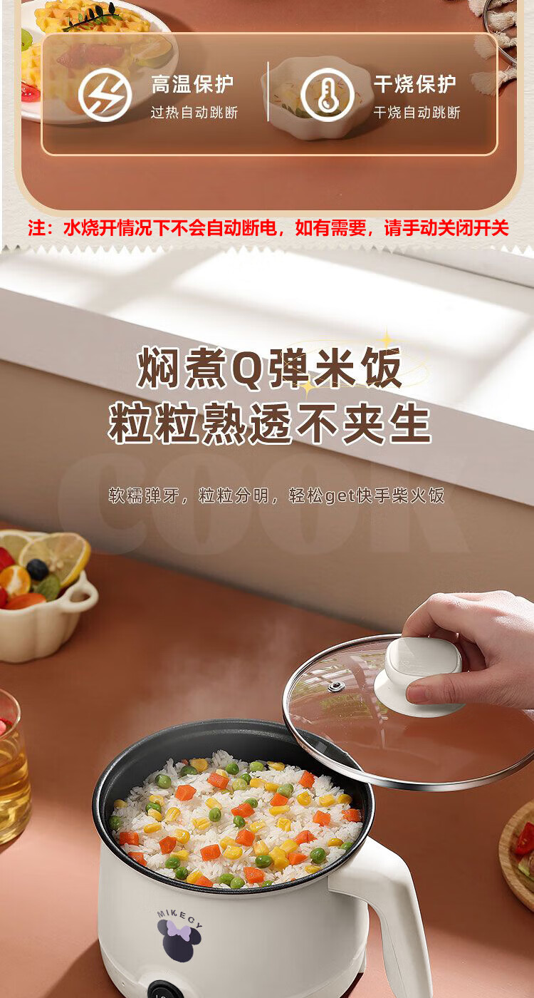电煮锅电锅电火锅专用锅电炒锅多功能一锅宿舍电煮锅1-2人蒸煮一体 不粘内胆-单层+送钢笼【可煎炒煮饭丨火锅】