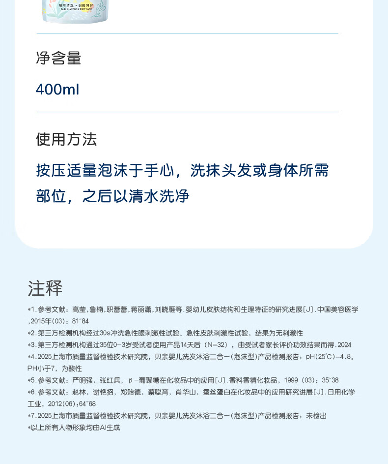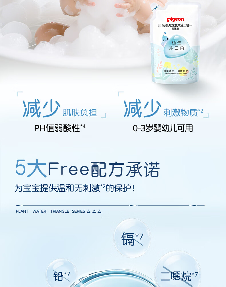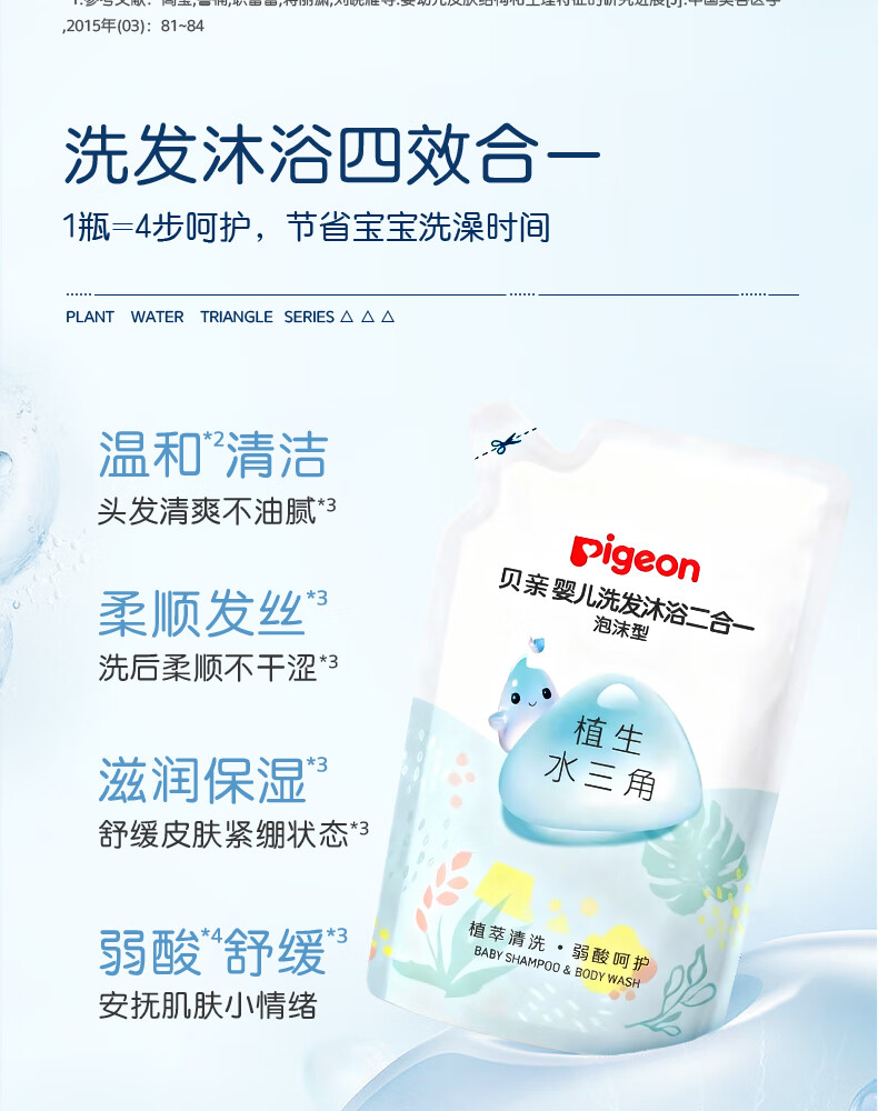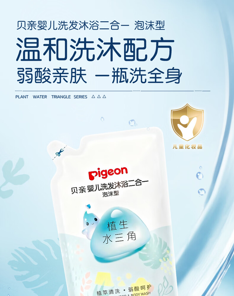 贝亲婴儿洗发沐浴二合一 水三角洗发水沐浴露 400ml补充装