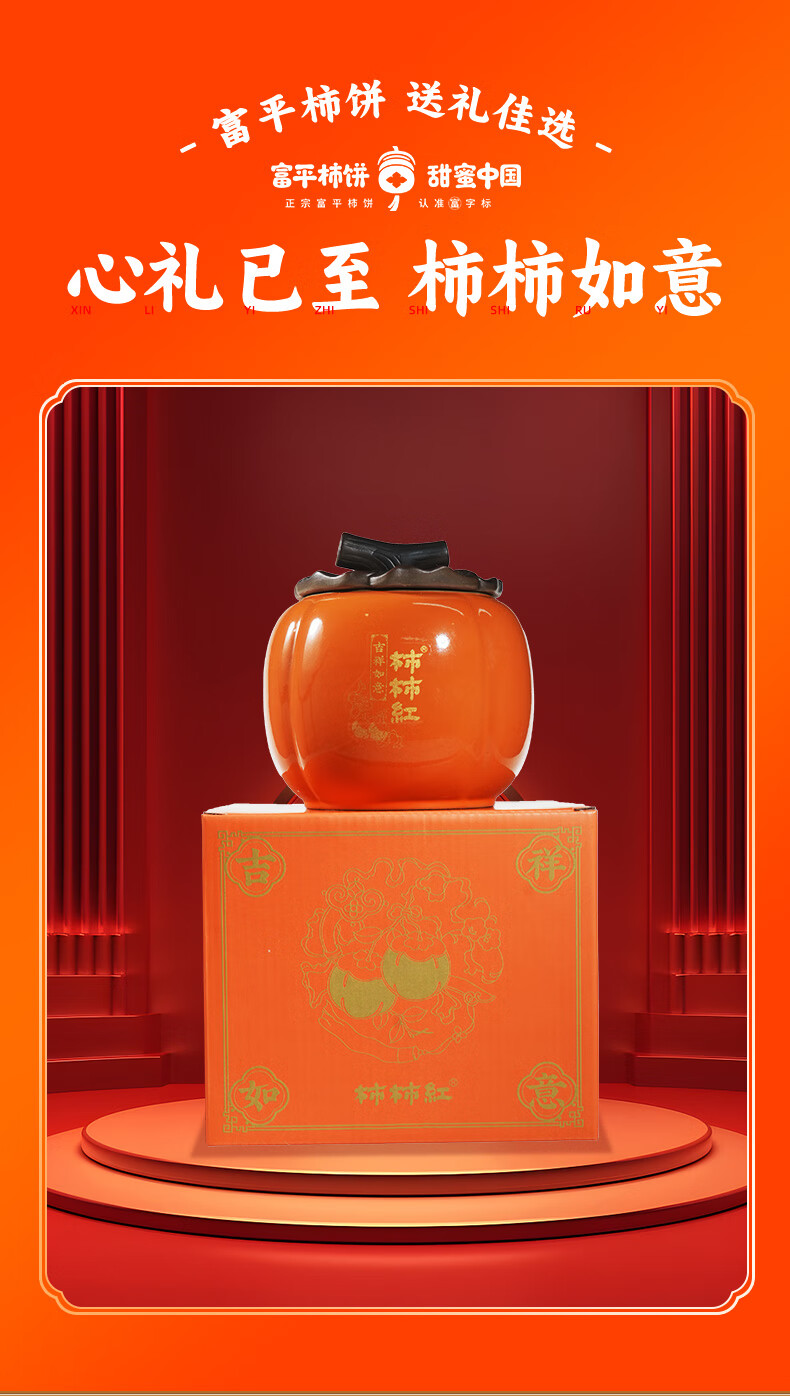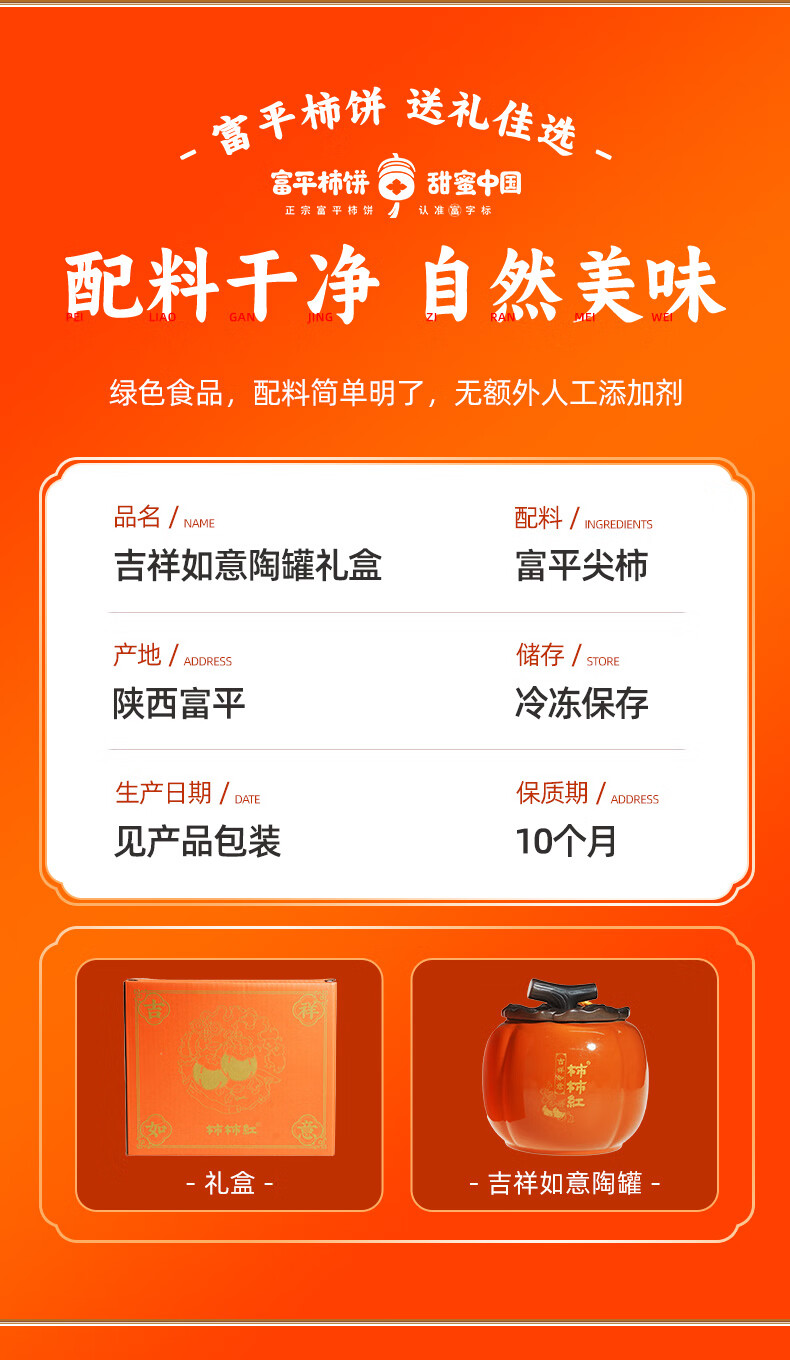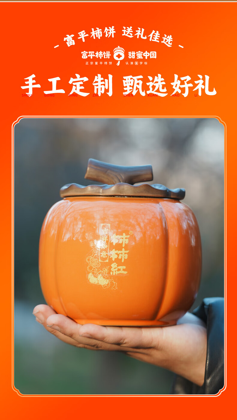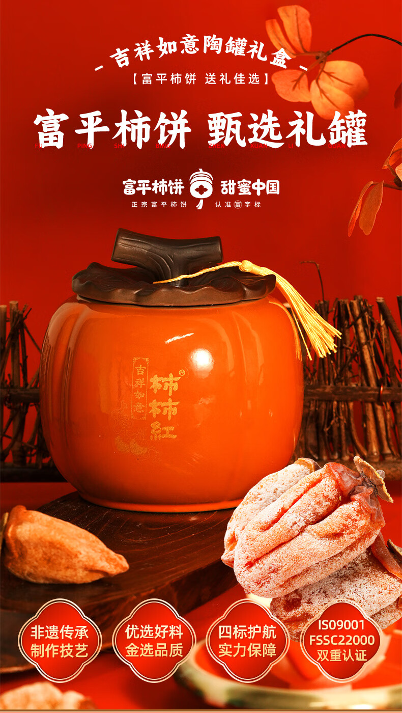 京鲜生陕西富平流心柿饼 陕西特产 柿柿如意陶罐尊享装600g