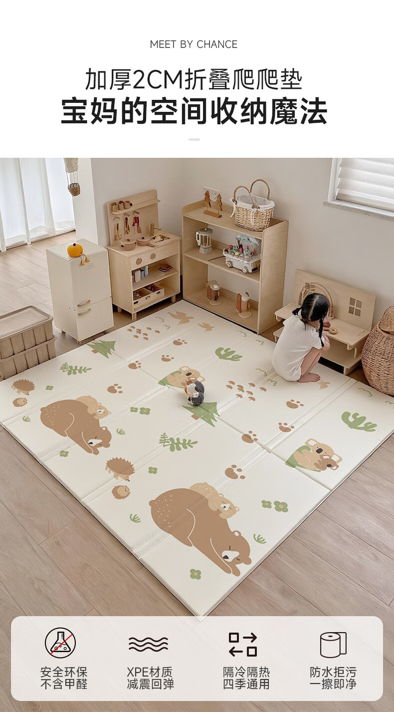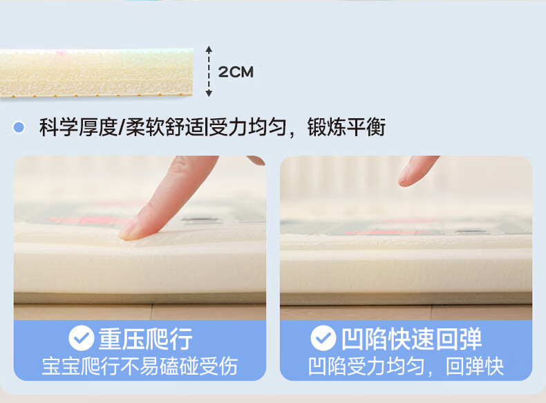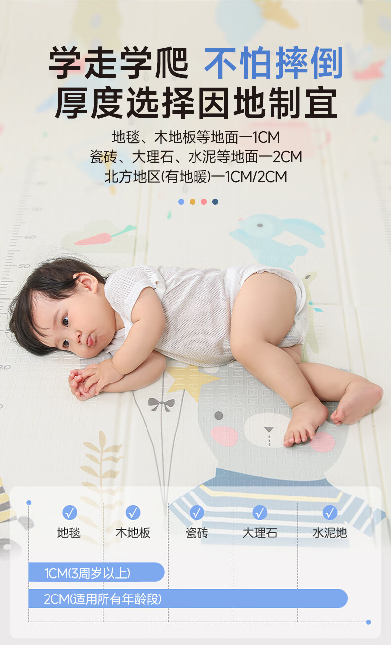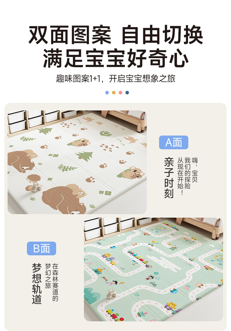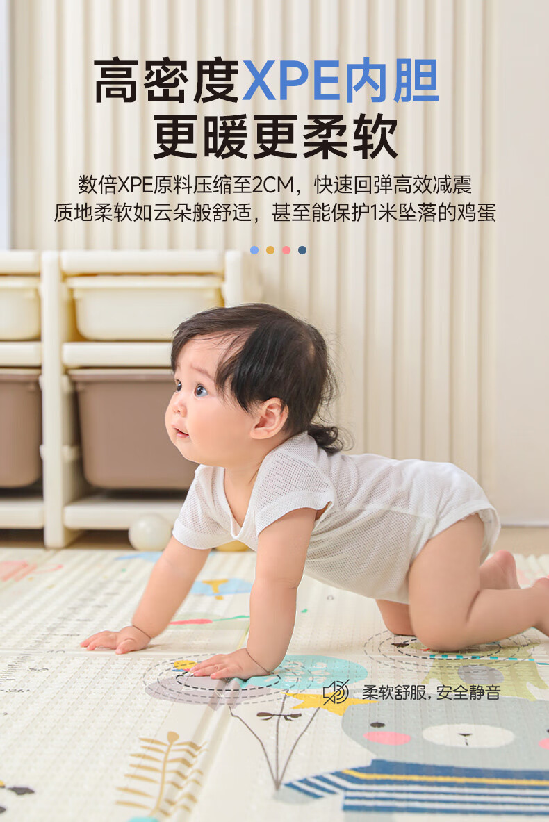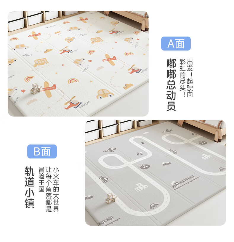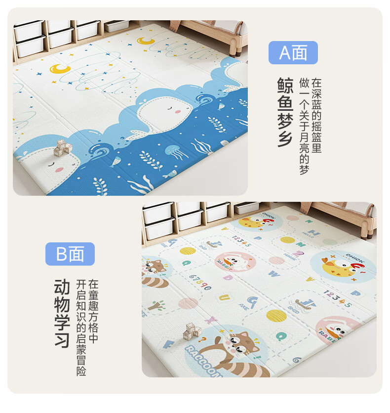 澳乐宝宝爬爬垫加厚婴儿防摔爬行垫XPE无甲酰胺折叠垫 鲸鱼梦乡+动物学习1.5m*1.8m*2cm