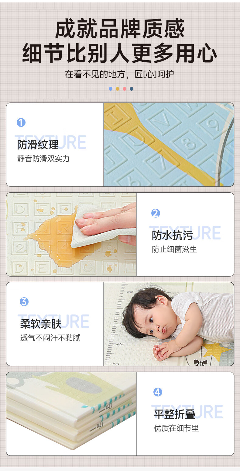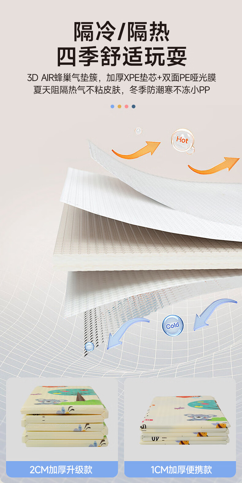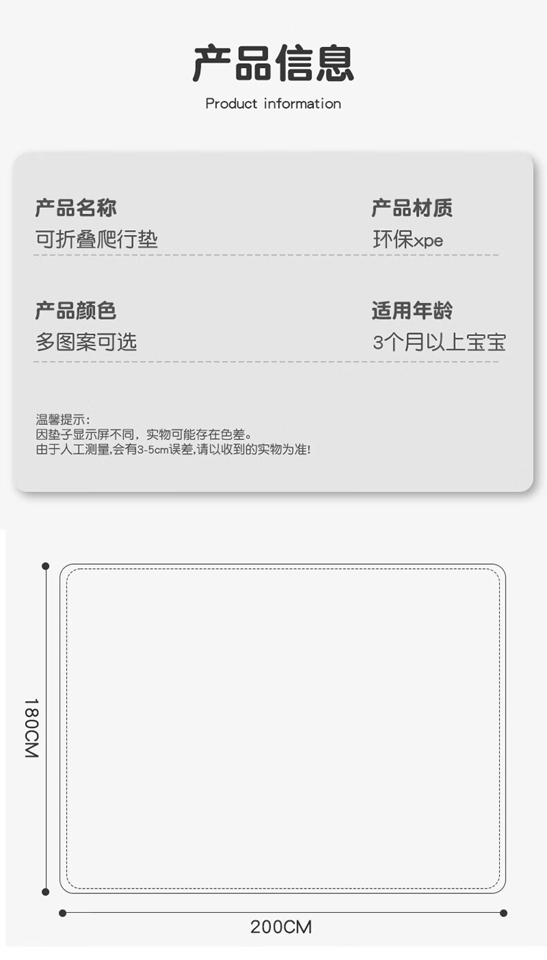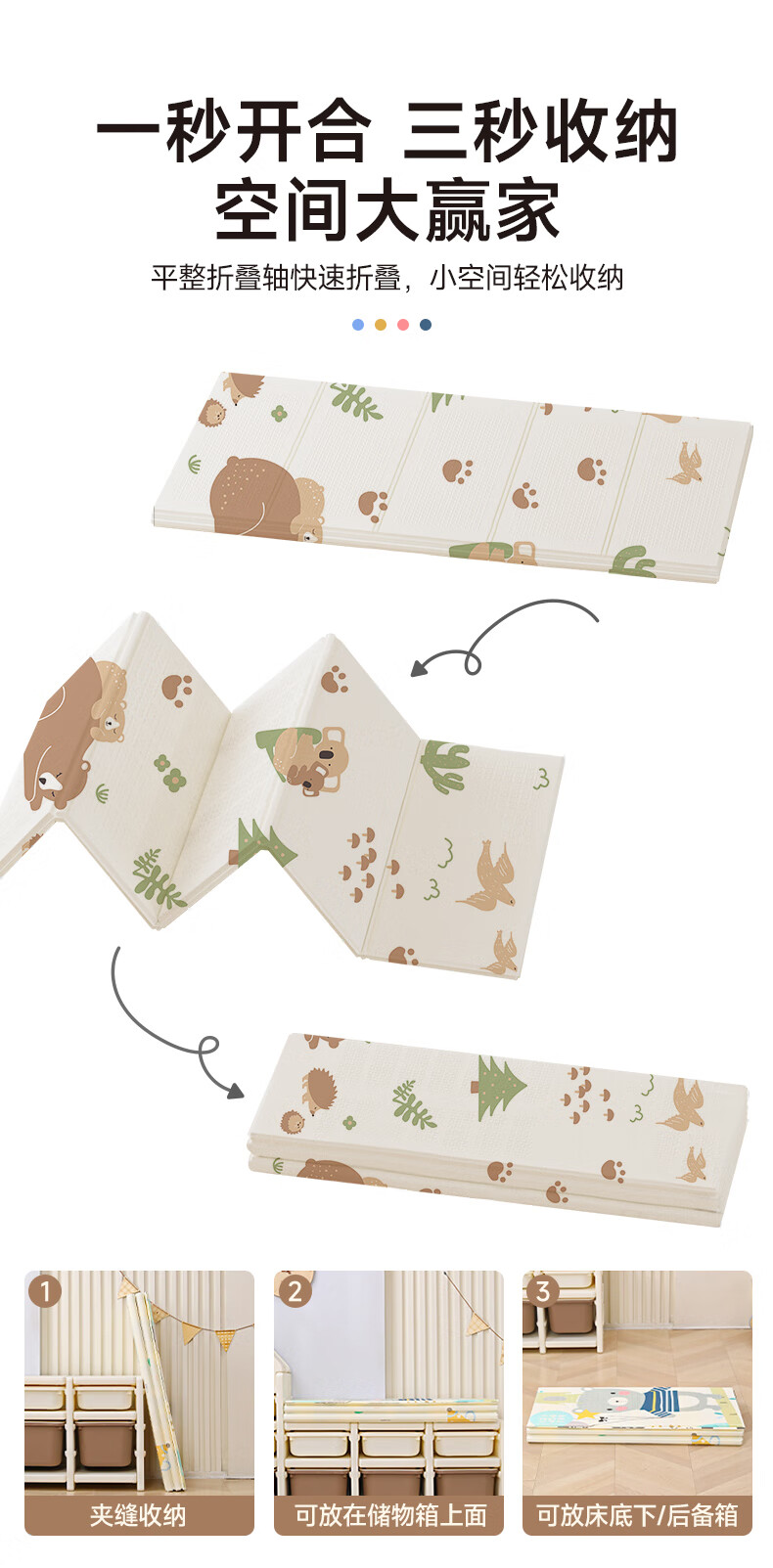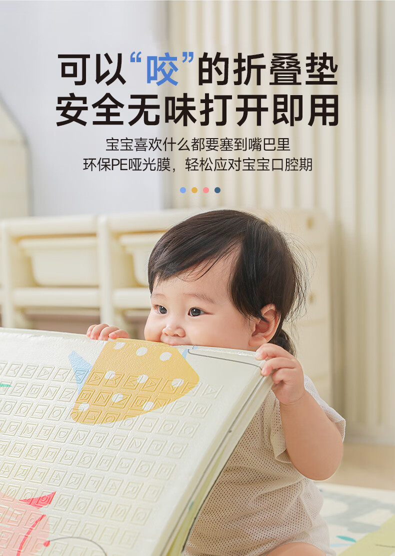 澳乐宝宝爬爬垫加厚婴儿防摔爬行垫XPE无甲酰胺折叠垫 鲸鱼梦乡+动物学习1.5m*1.8m*2cm