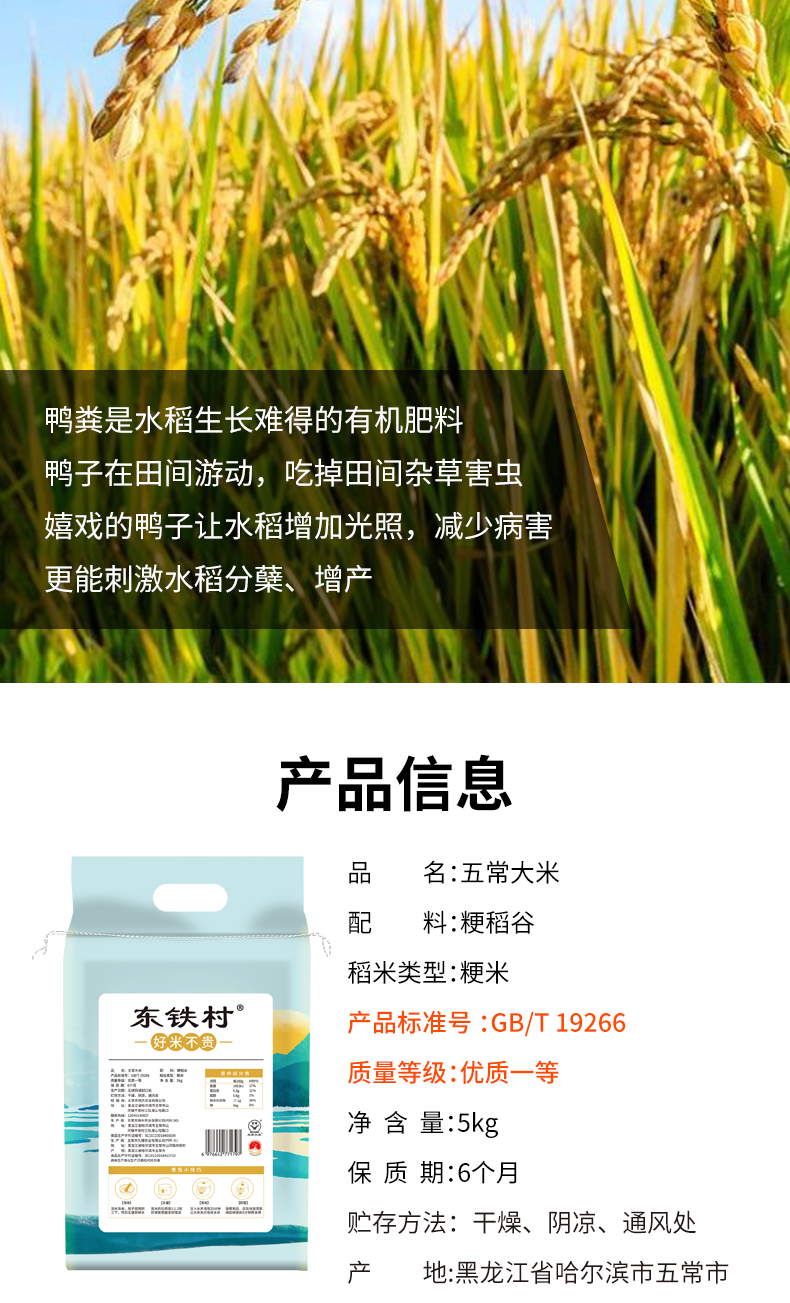 东铁村五常大米东北大米源头直发执行标准GB/T19266 朝露青禾2.5kg*1