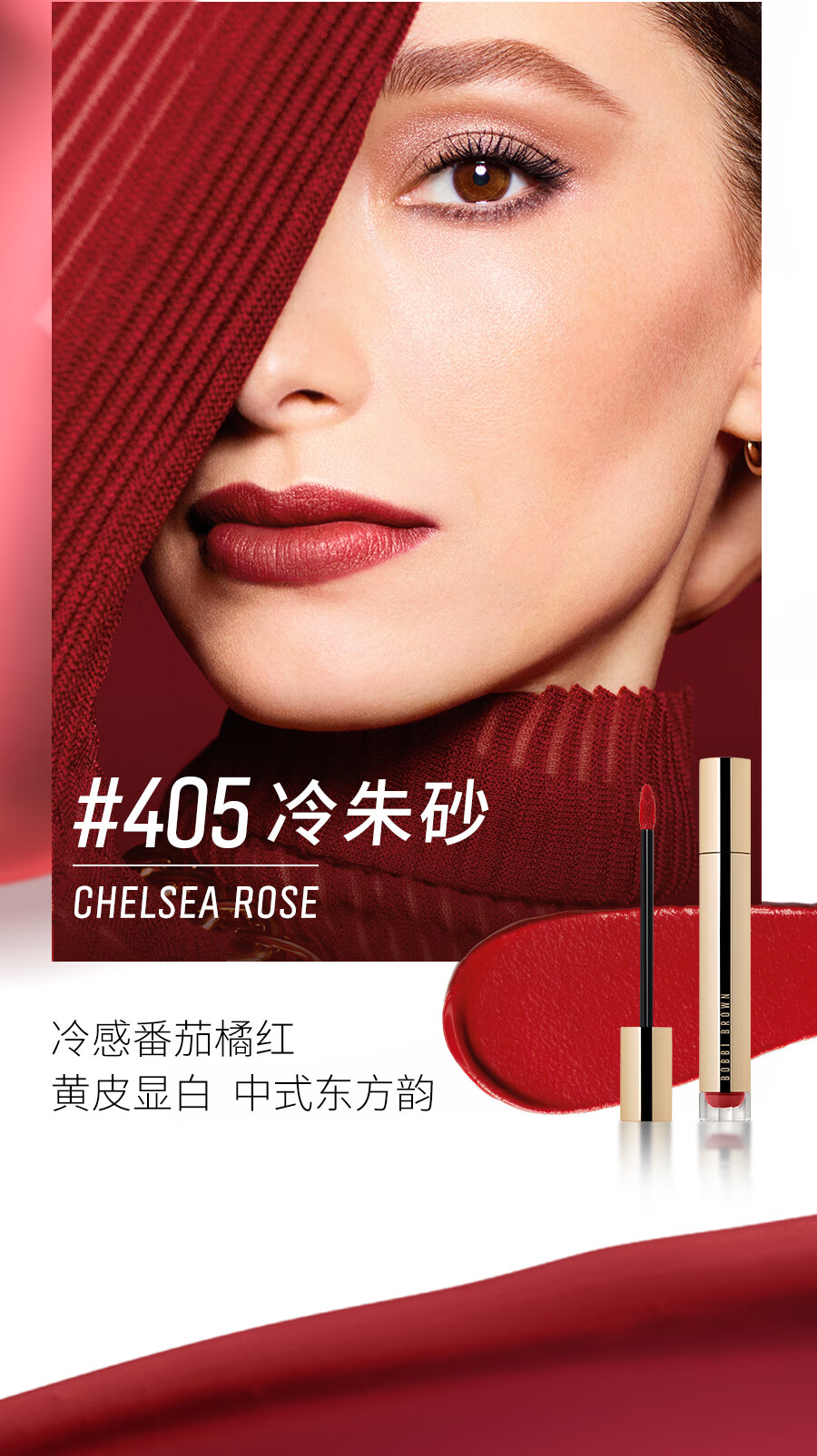 芭比波朗(Bobbi Brown)云朵唇霜哑光唇釉口红唇膏405号6ml清冷东方红 口红 生日礼物