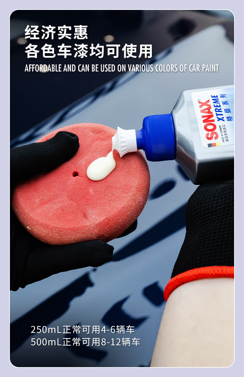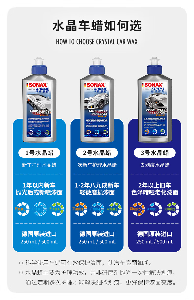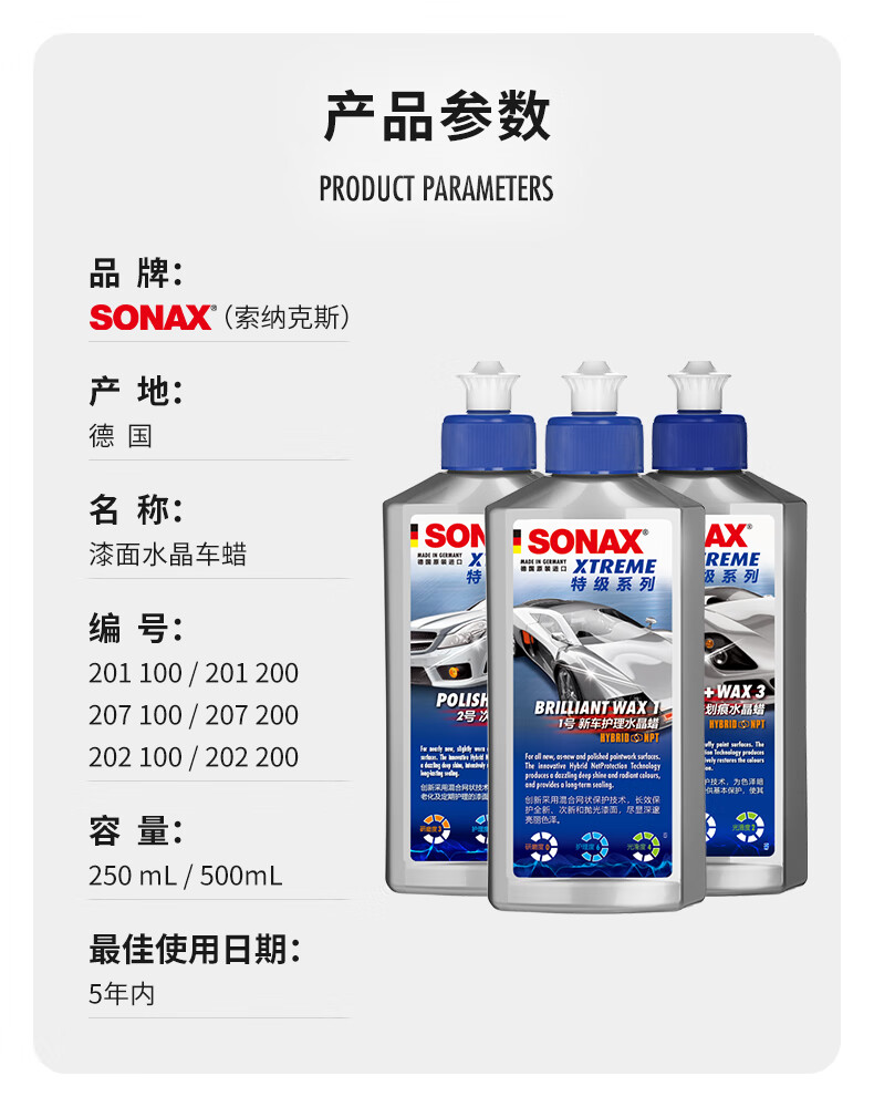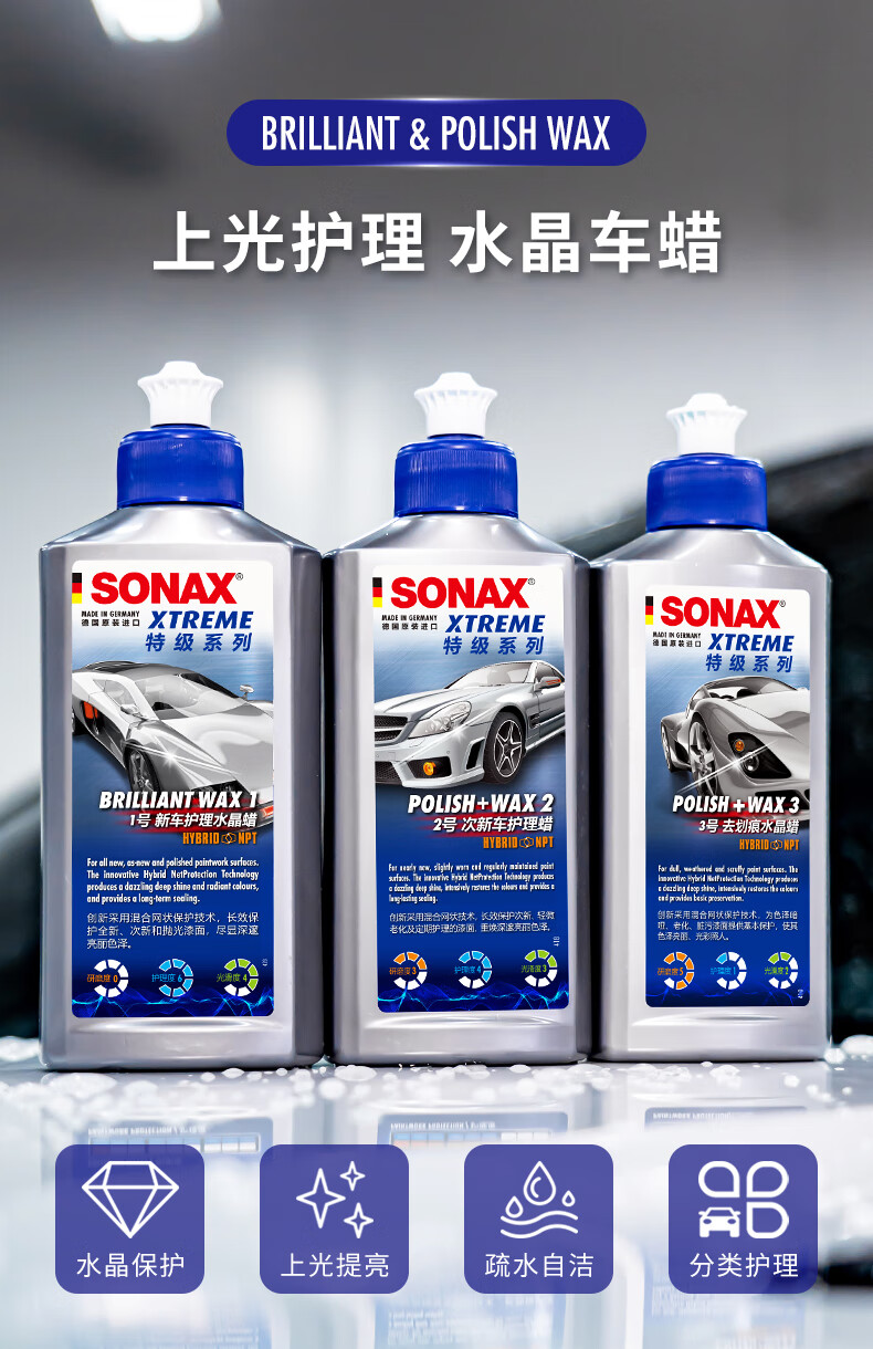 索纳克斯(SONAX)德国进口水晶车蜡汽车打蜡养护上光疏水通用液体蜡去划痕抛光蜡 【1年内新车】车蜡250ml