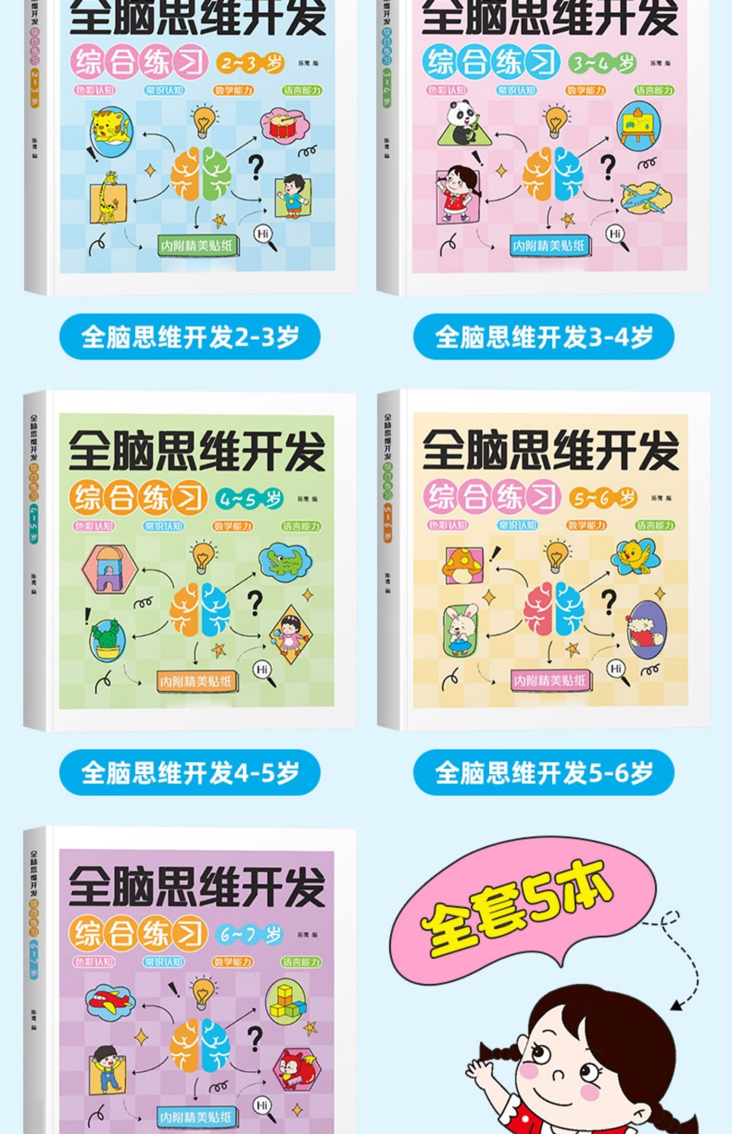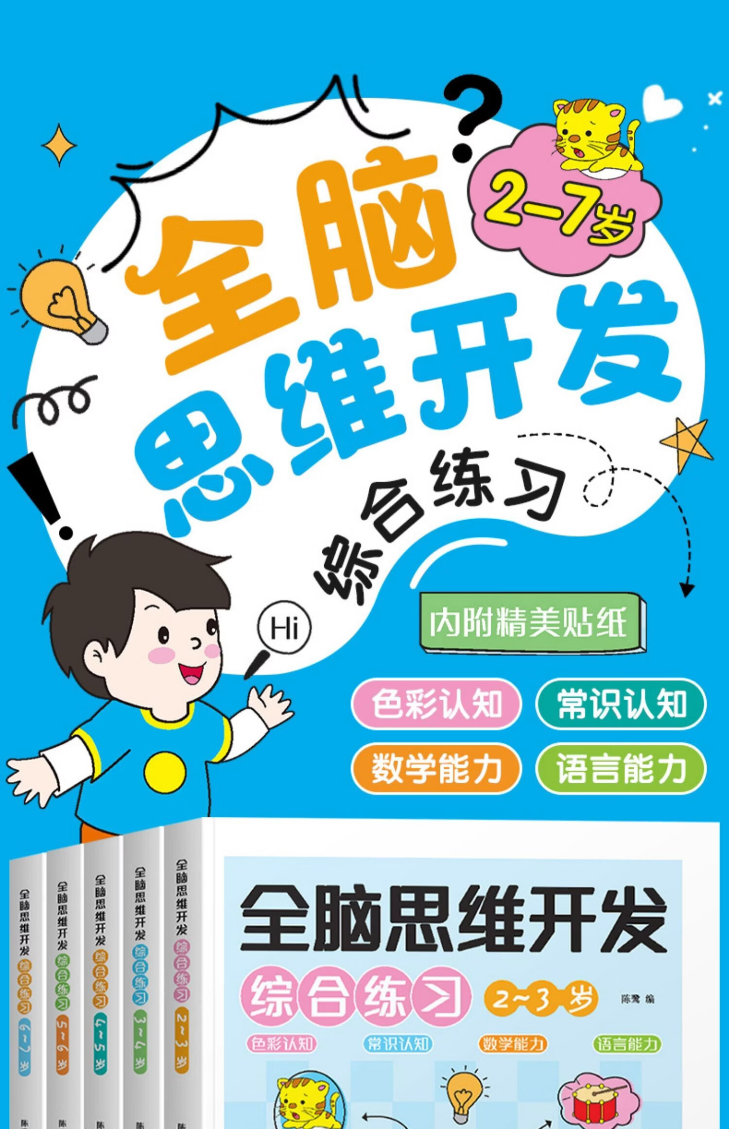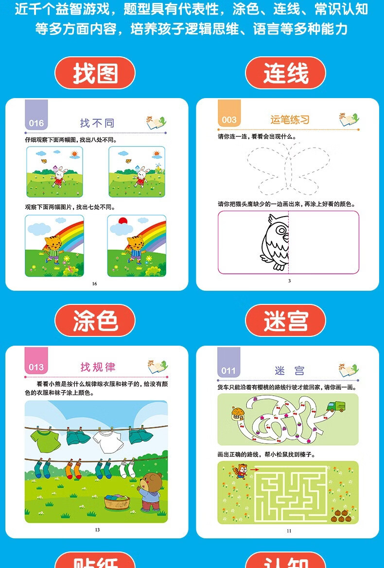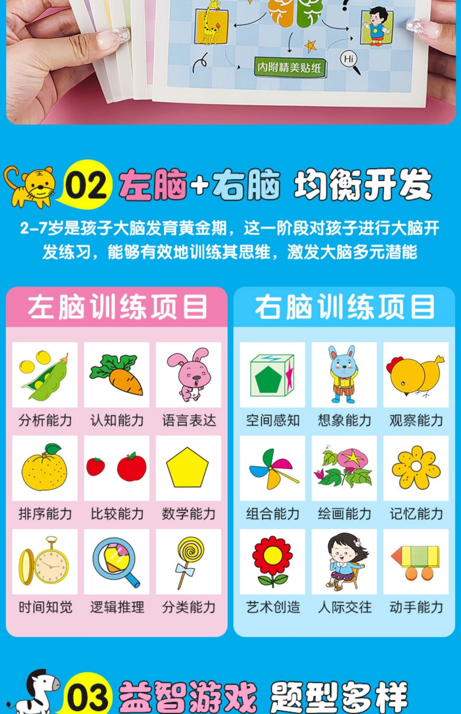 荀佳拼音贴纸书全脑开发幼小衔接2-3-6岁儿童玩游戏手撕字母全套数学 3-4岁全脑思维开发综合训练 单册