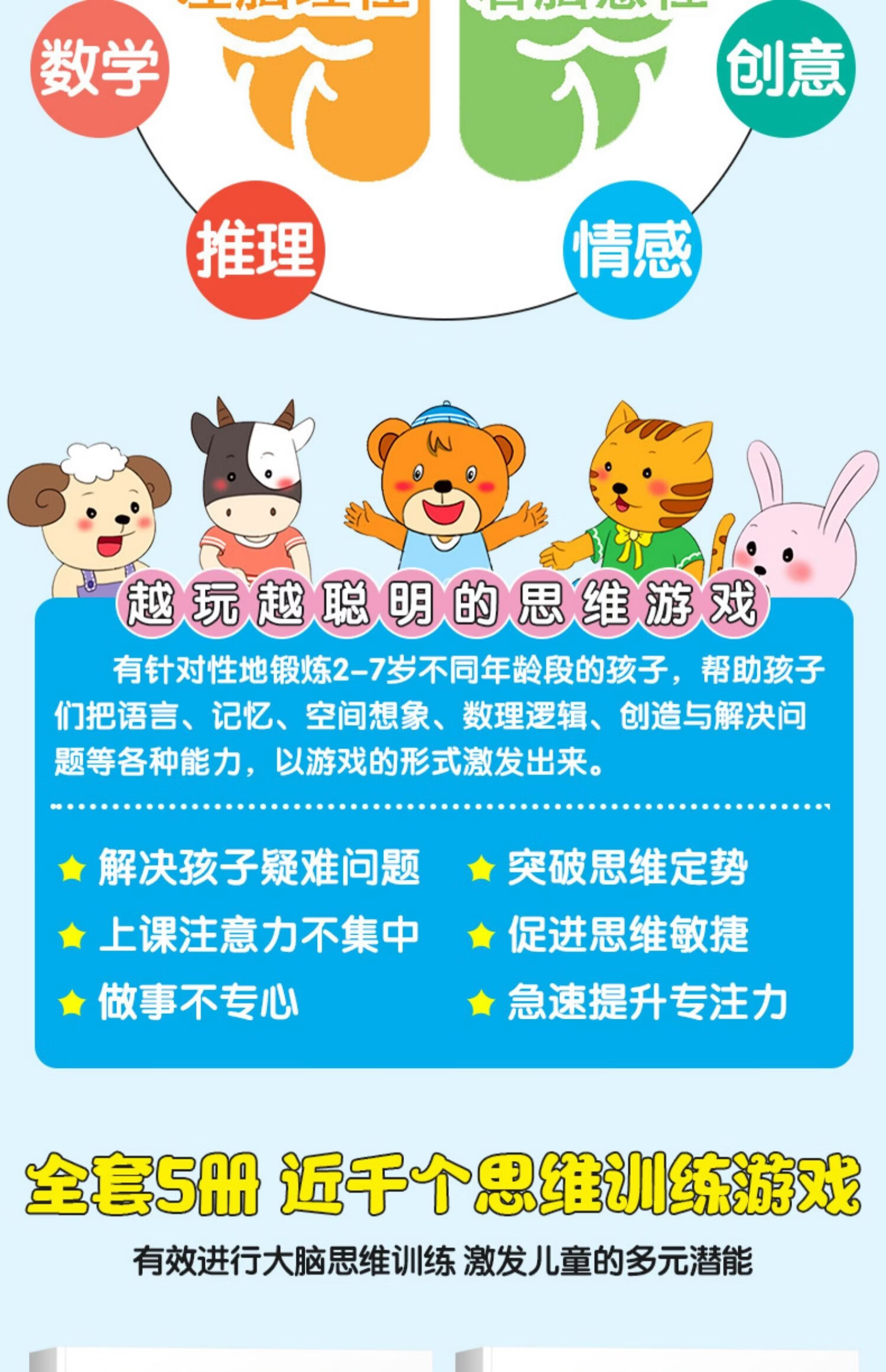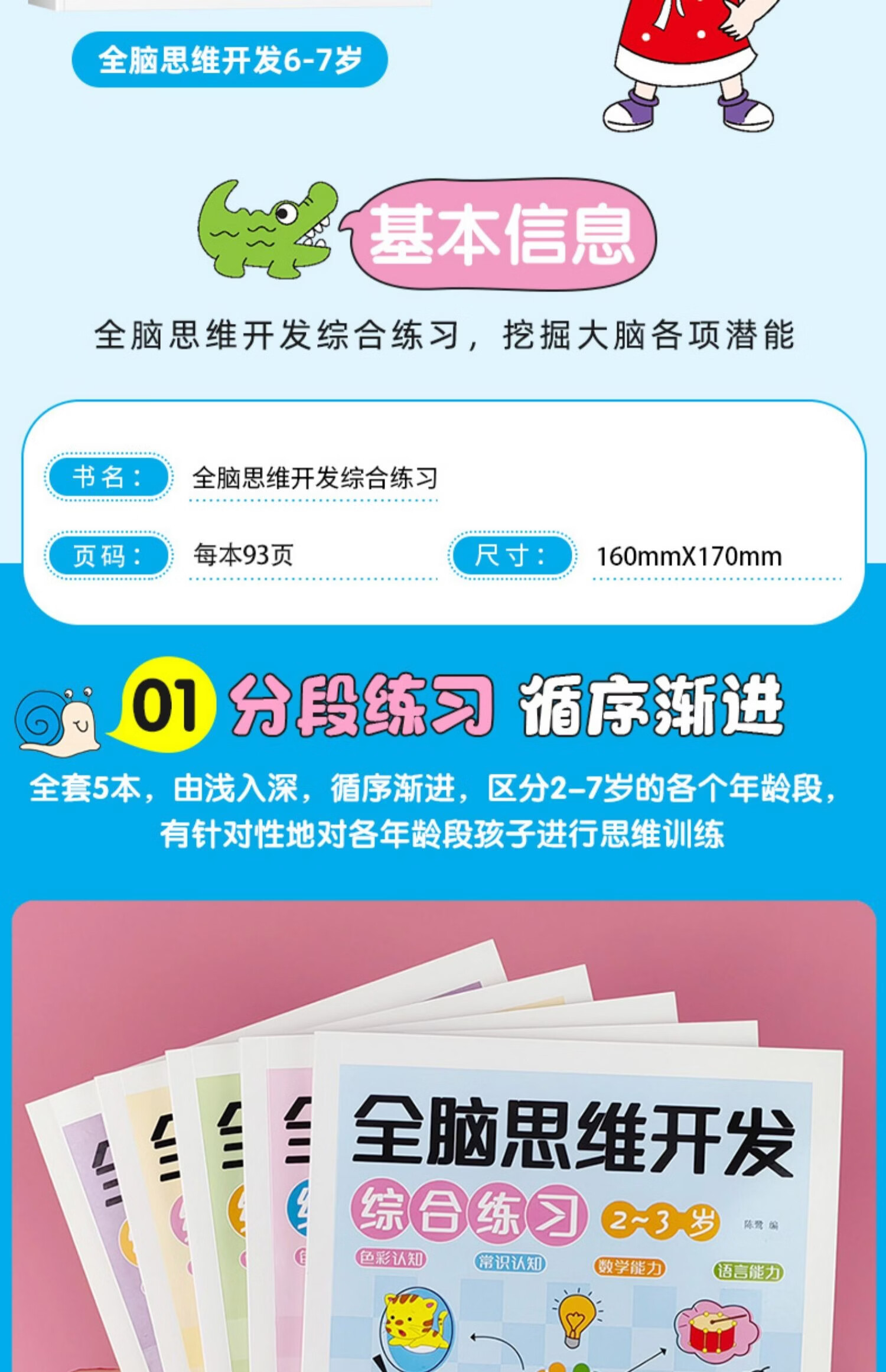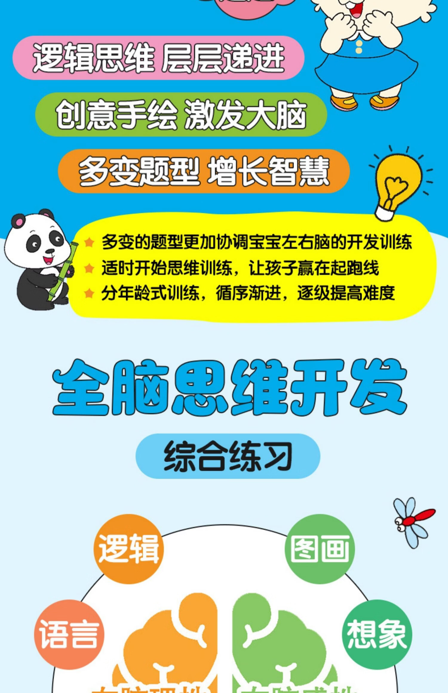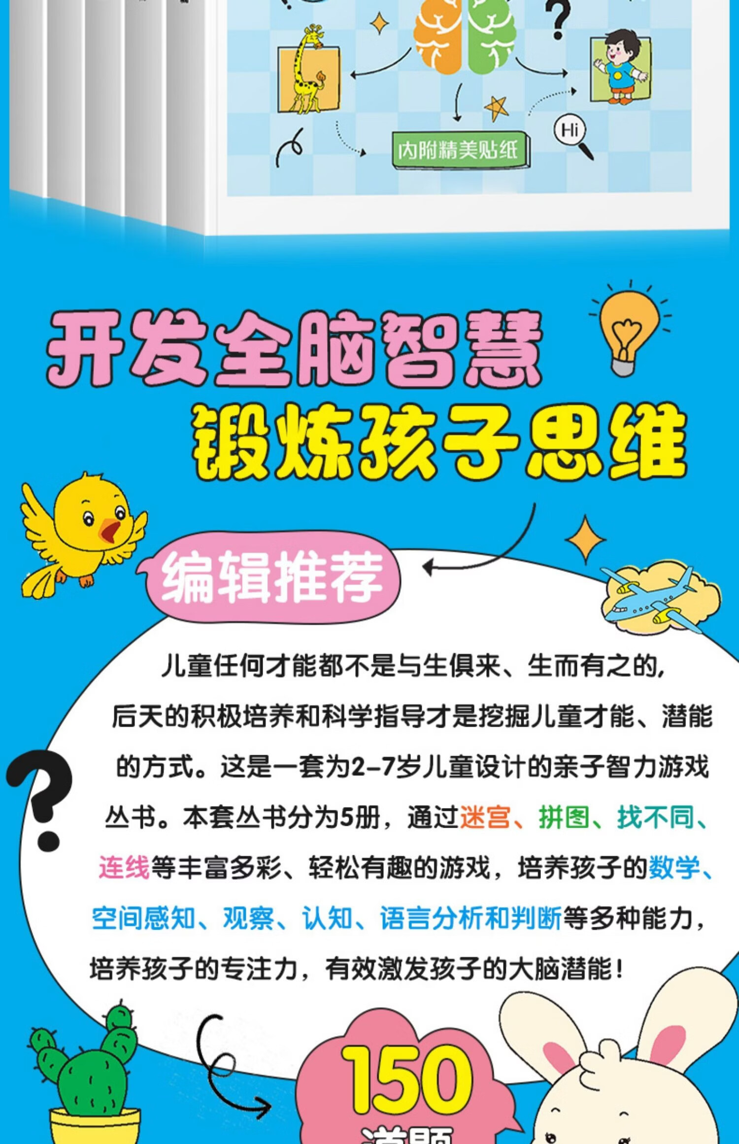 荀佳拼音贴纸书全脑开发幼小衔接2-3-6岁儿童玩游戏手撕字母全套数学 3-4岁全脑思维开发综合训练 单册