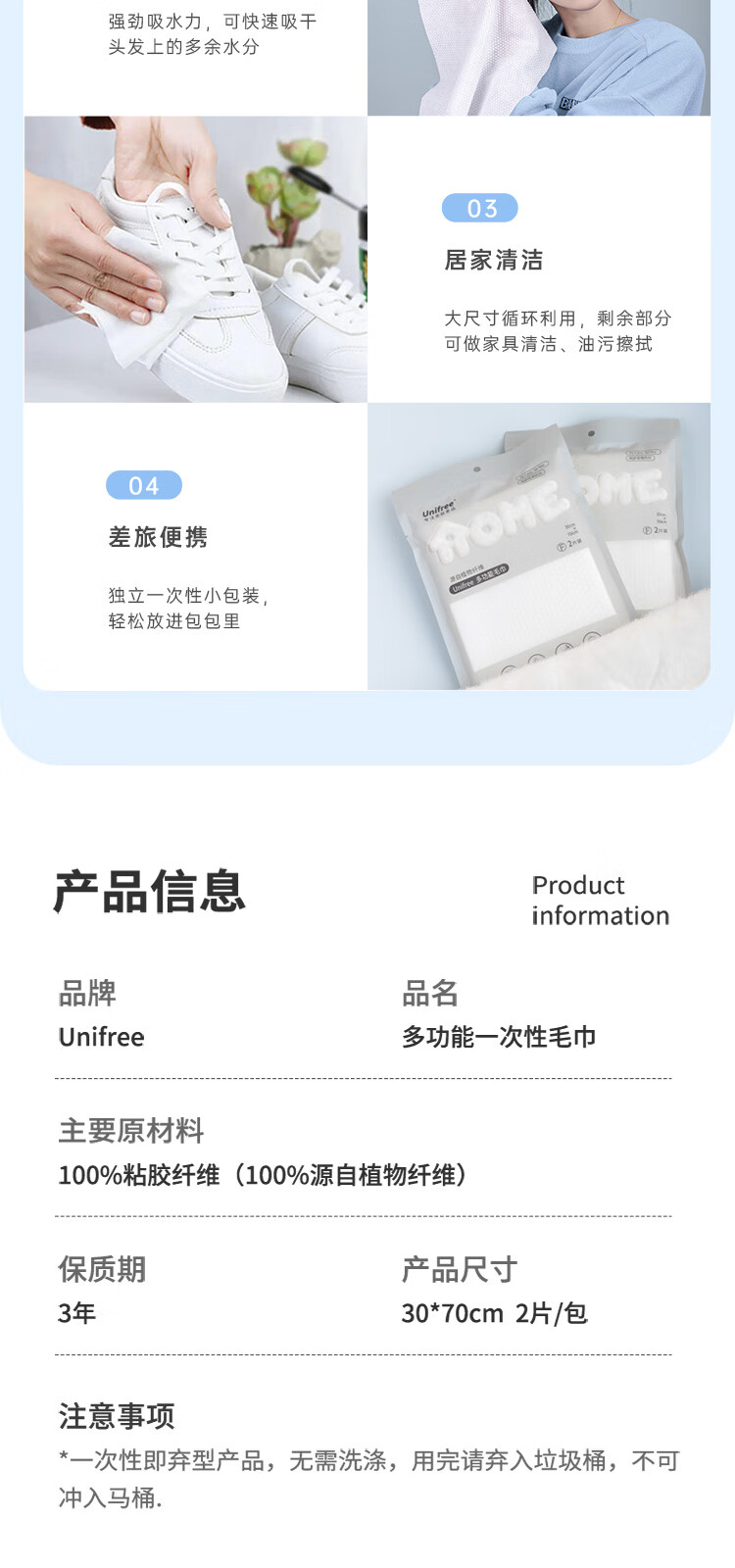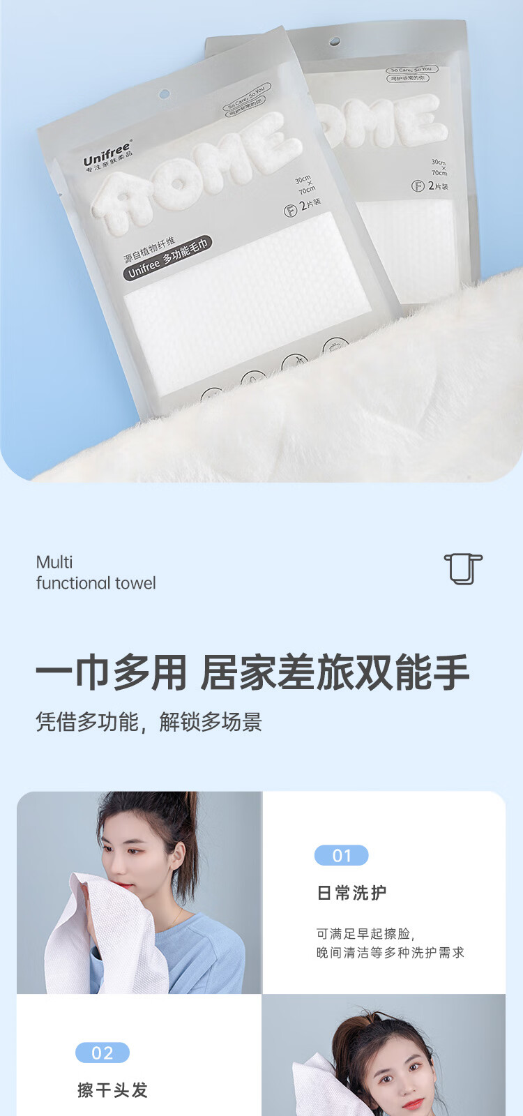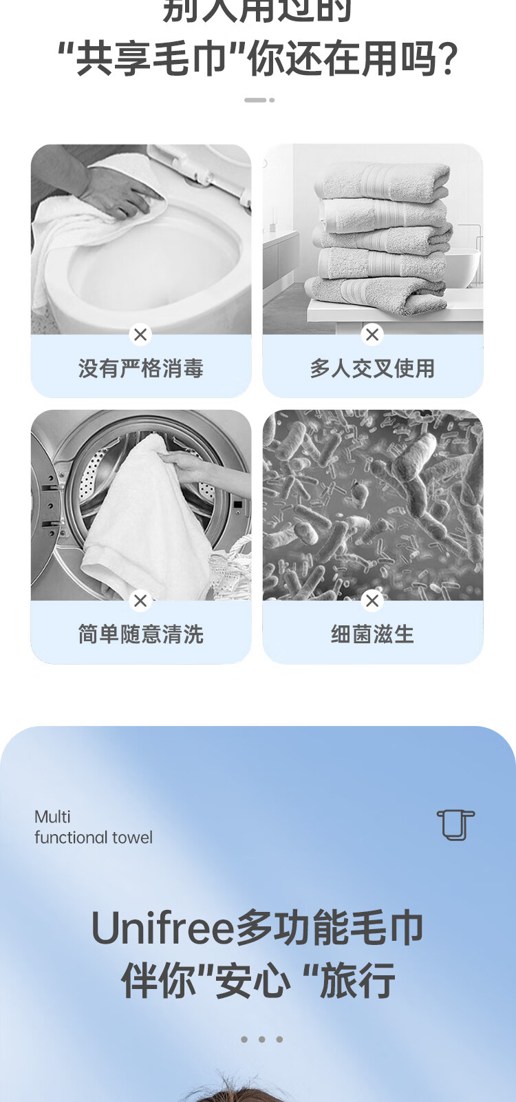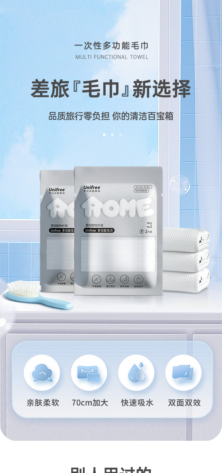 unifree一次性浴巾毛巾旅行出差便携家用加厚洗澡巾旅行用品独立装 一次性毛巾3包6条