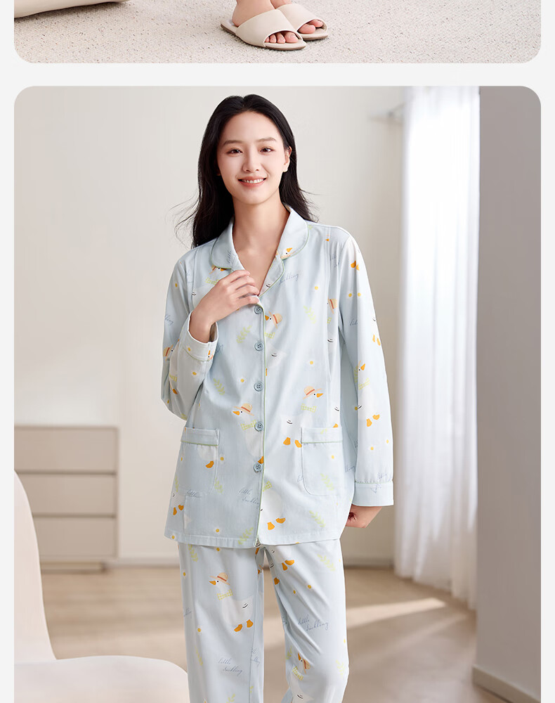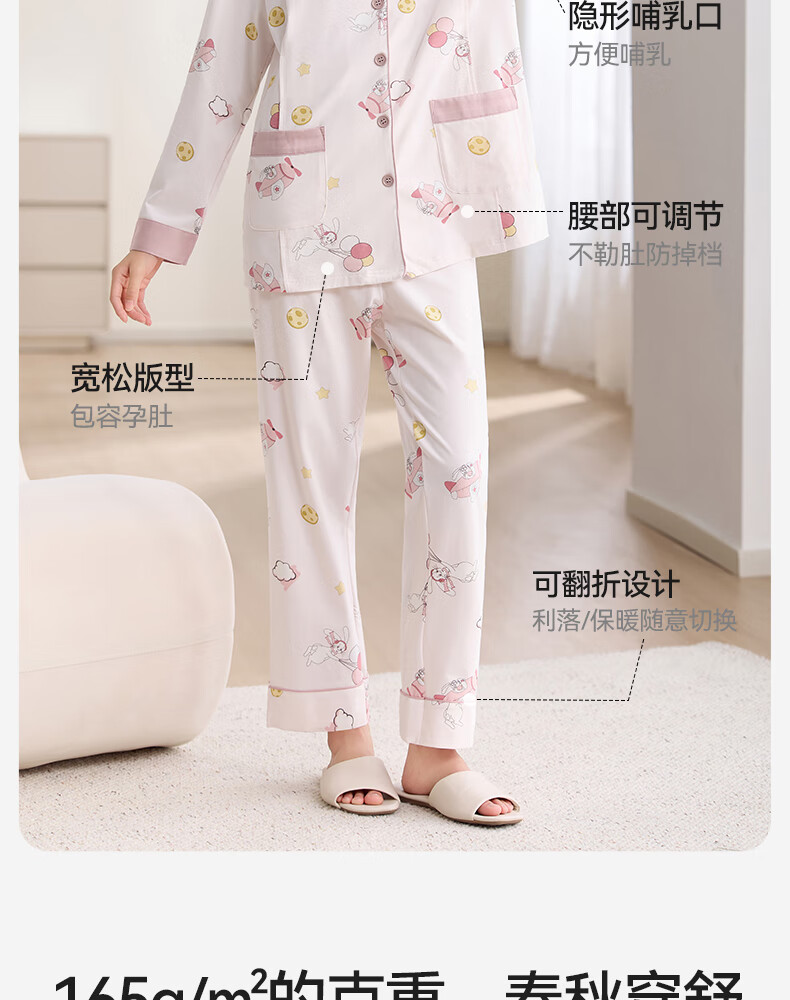 十月结晶月子服秋冬厚款透气孕妇睡衣产后哺乳期产妇家居服套装 雪梨鹅L码