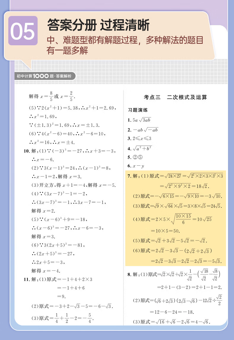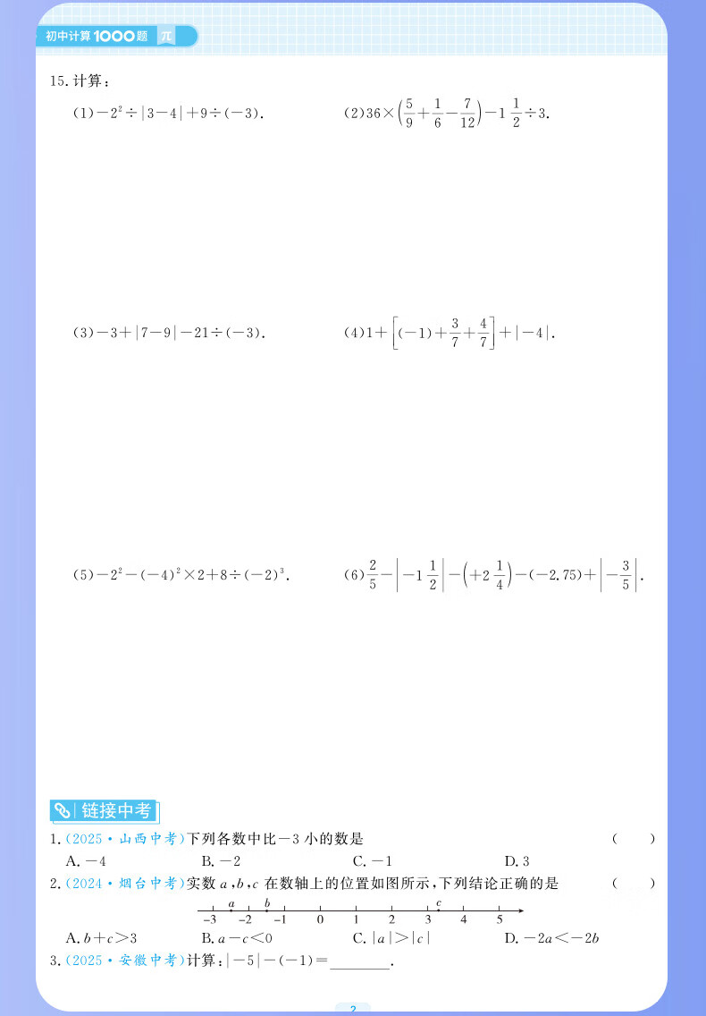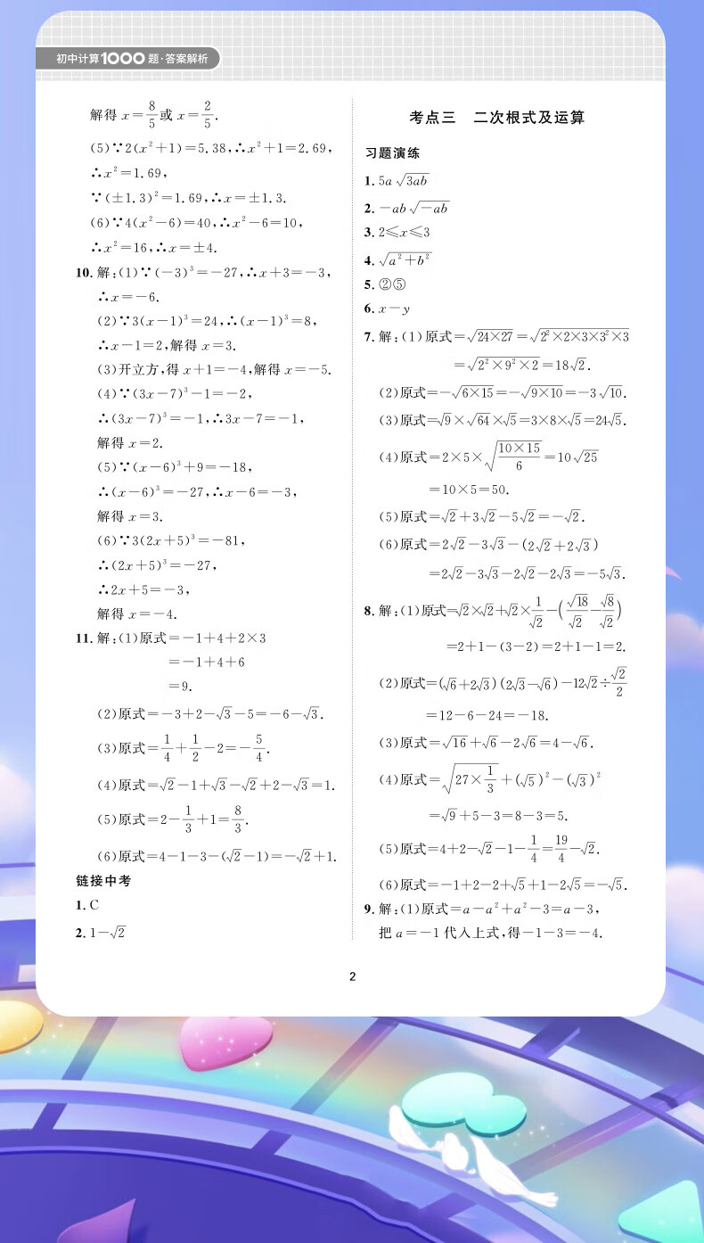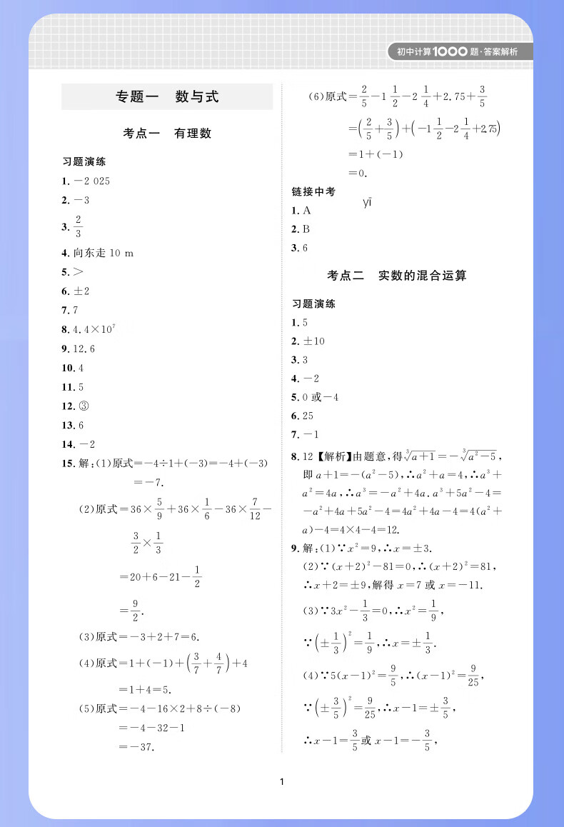 蝶变学园1000题刷透数学计算 七八九年级数学计算1000题专项训练 练速度 提效率 刷真题 章节综合测试 全国通用