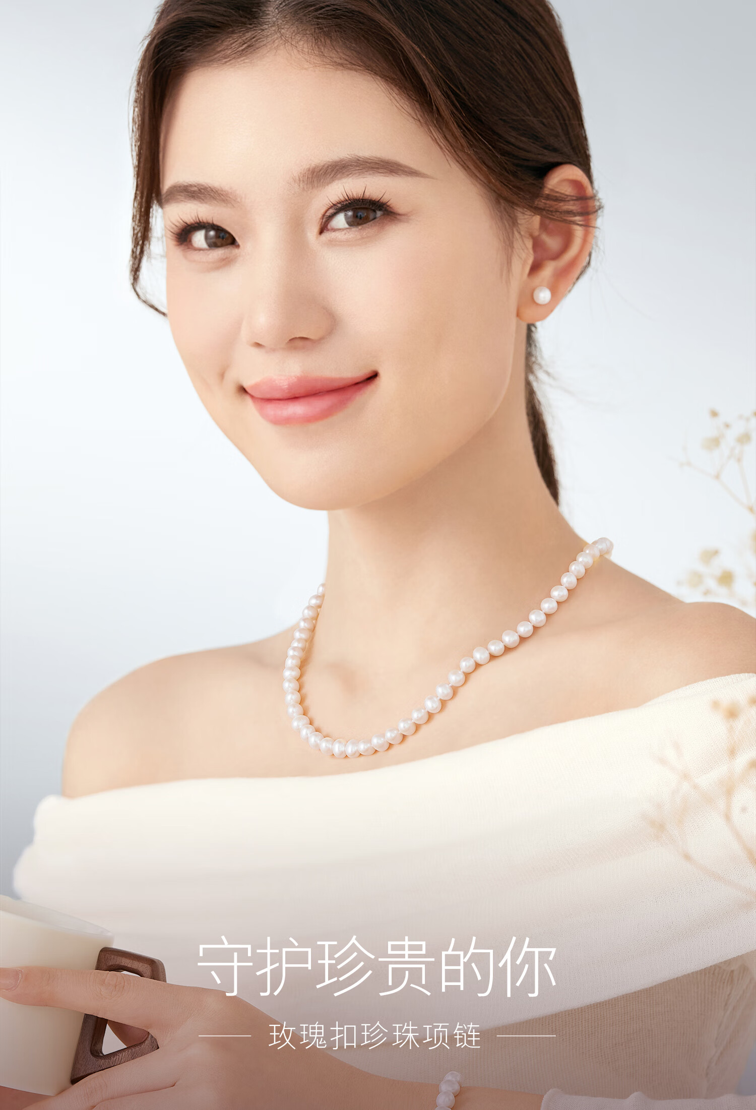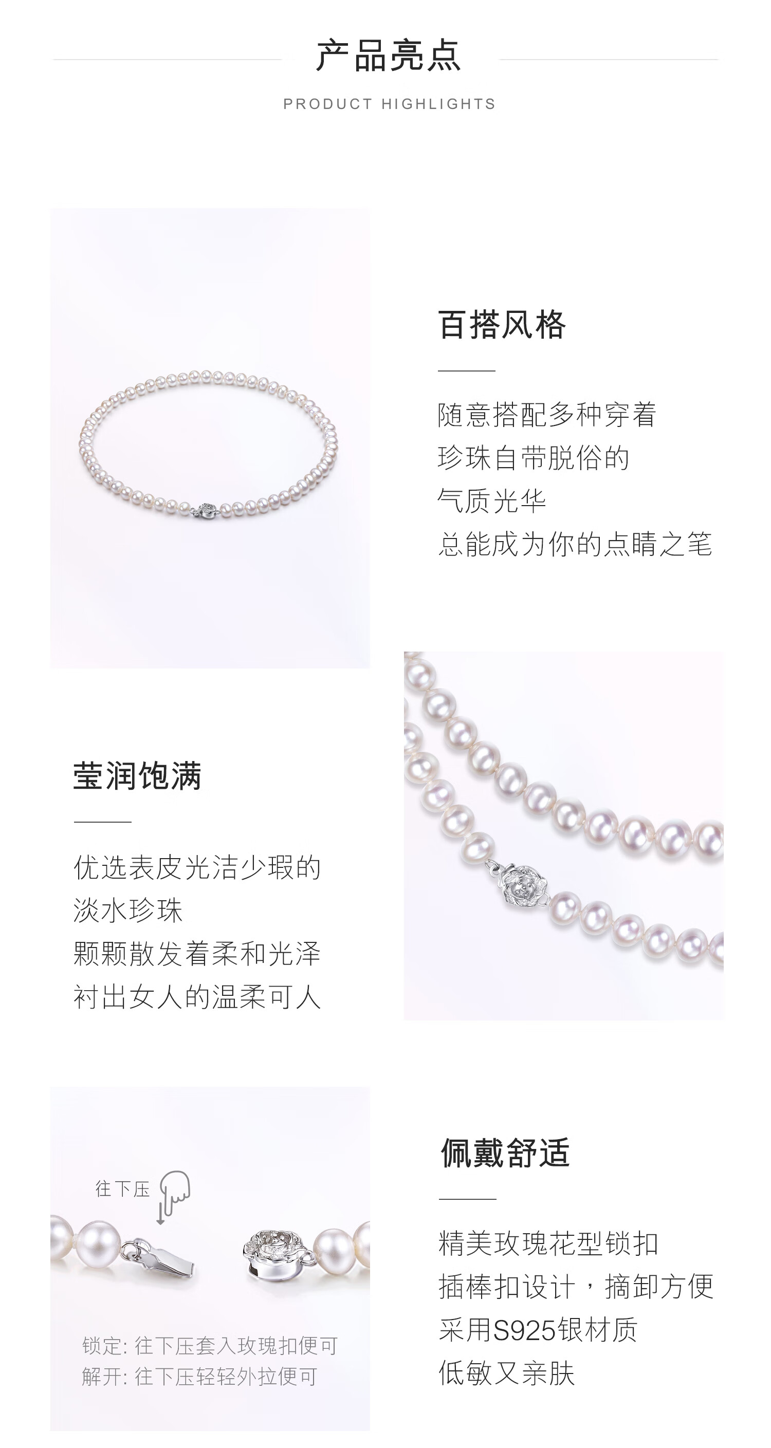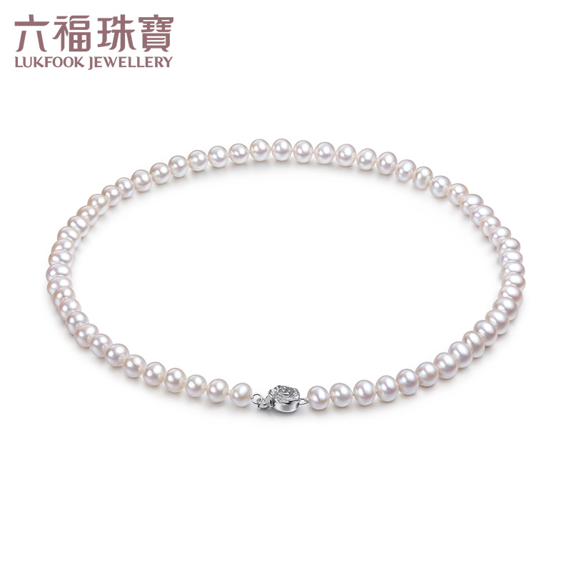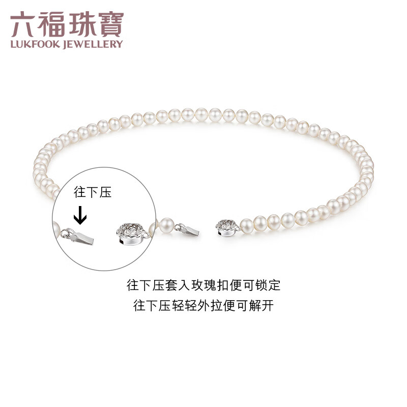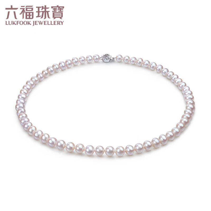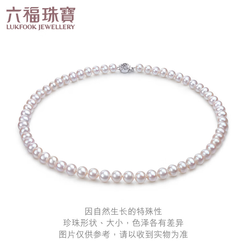 六福珠宝珍珠项链Ag925花形扣莹泽淡水珍珠颈链生日礼物女 总重约25.92克