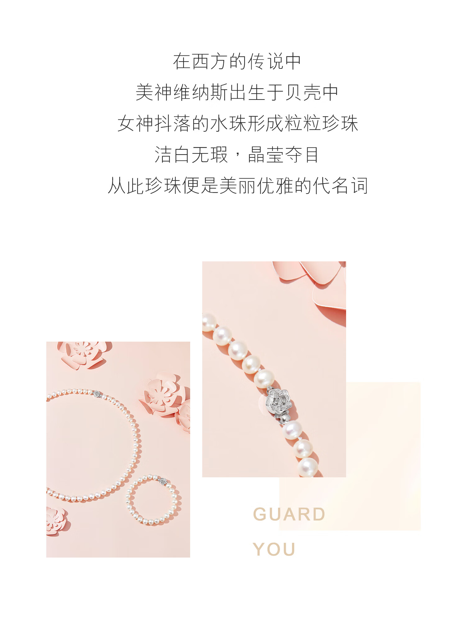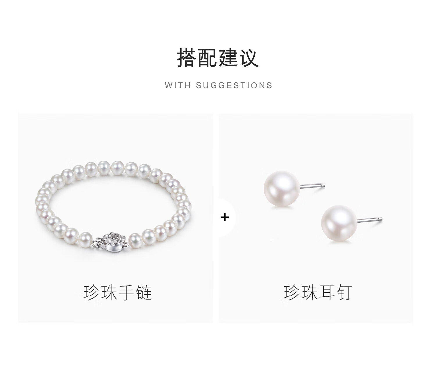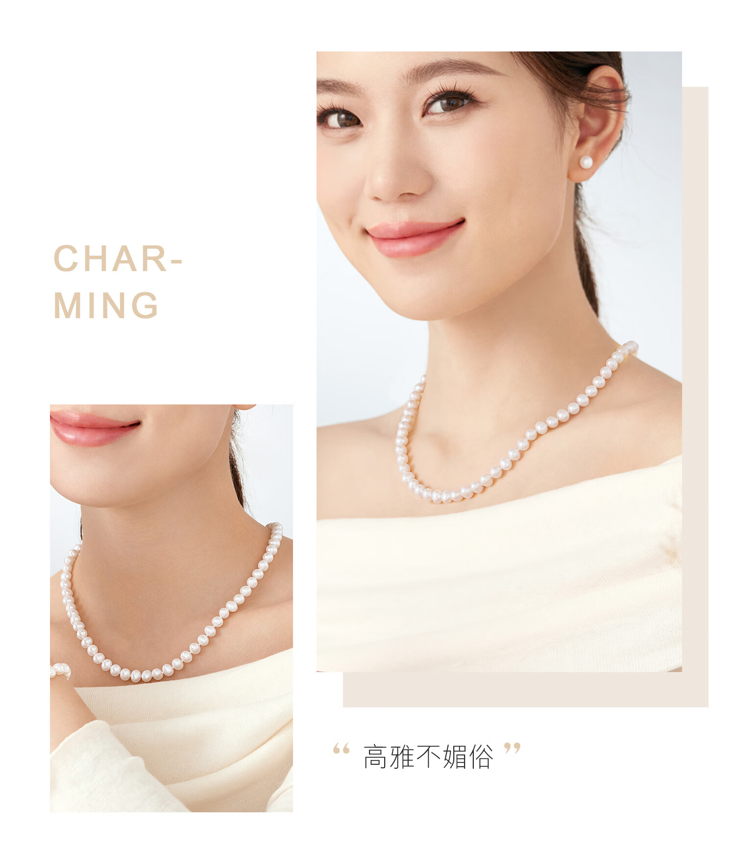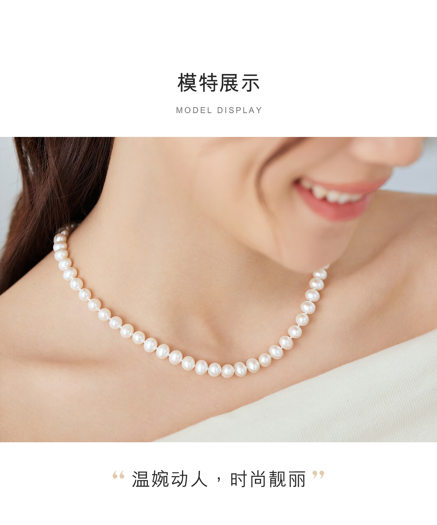 六福珠宝珍珠项链Ag925花形扣莹泽淡水珍珠颈链生日礼物女 总重约25.92克