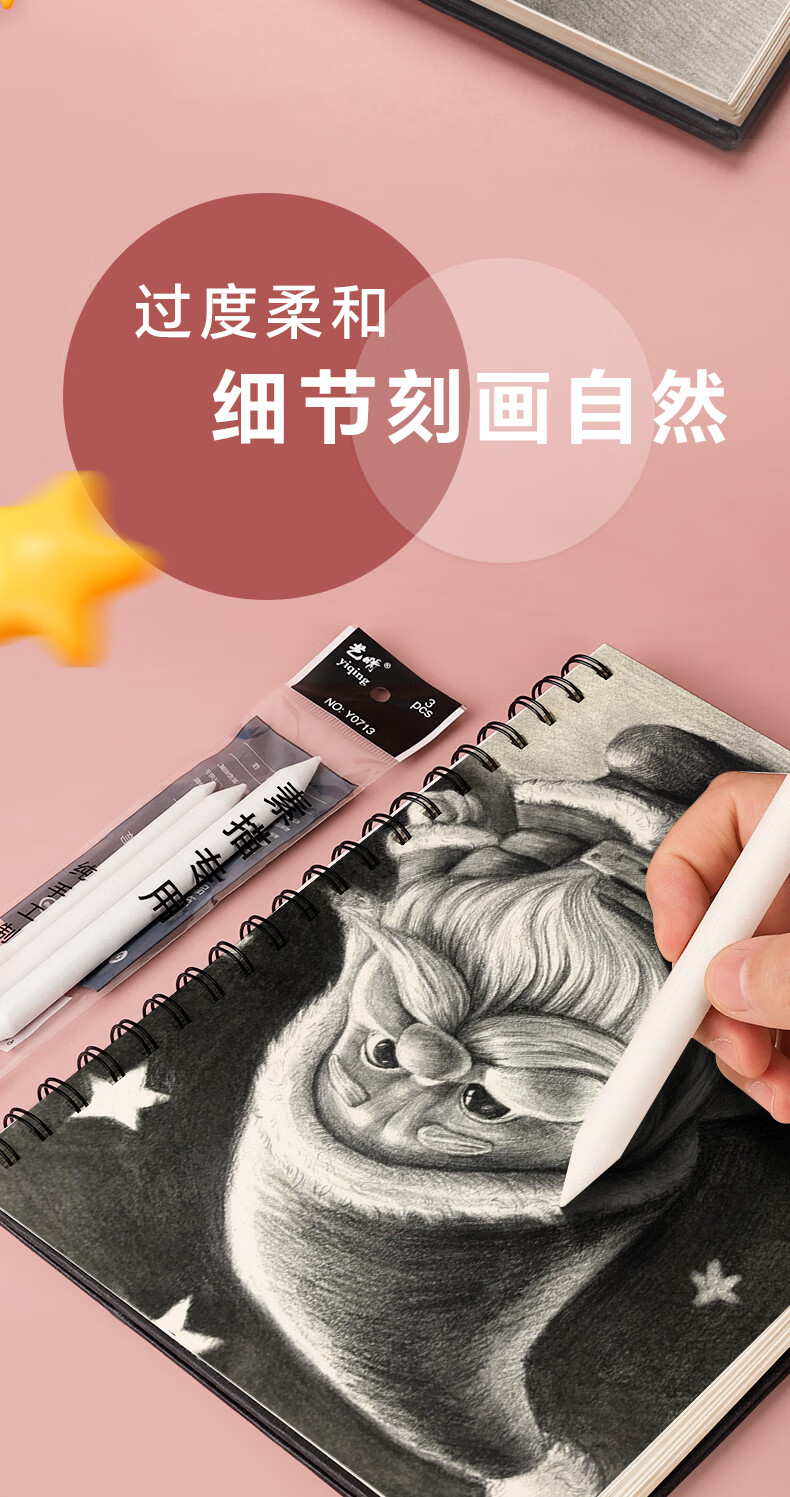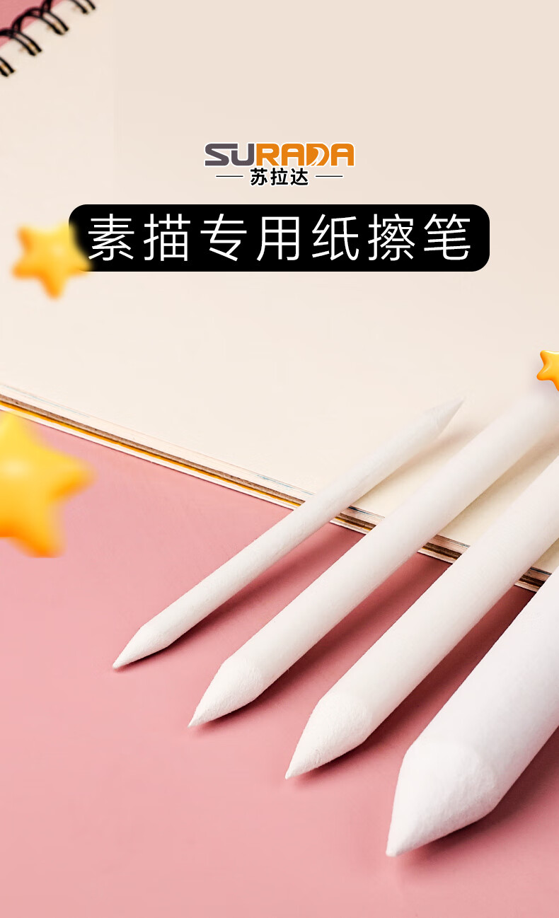 苏拉达(Surada)纸擦笔 素描纸笔铅笔绘画擦笔涂抹笔揉擦笔美术学生画画细节高光工具笔 大中小3支套装DIY099 速写 马克笔绘画