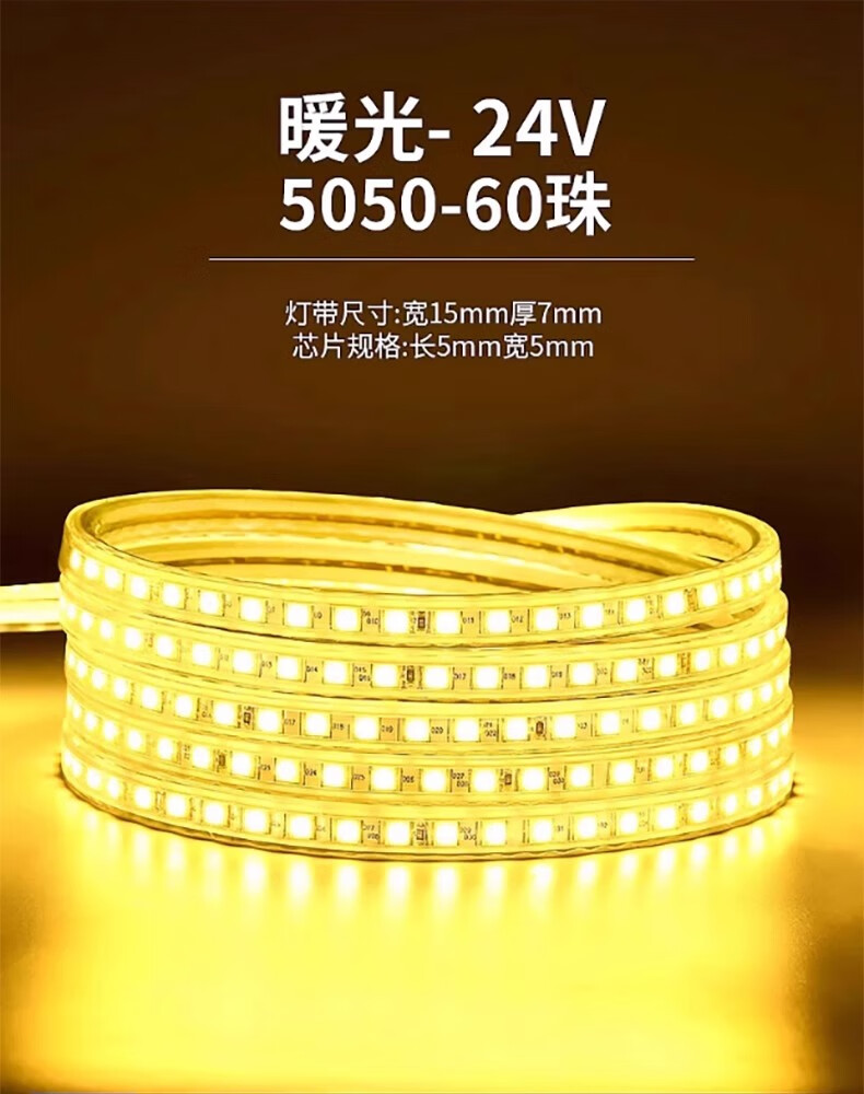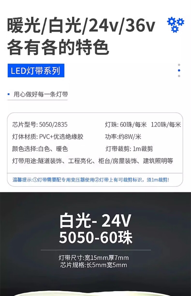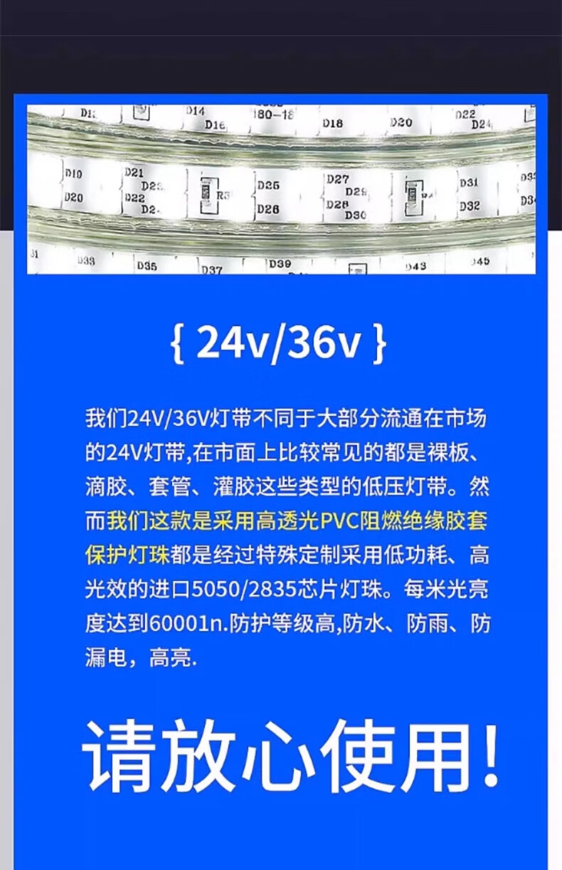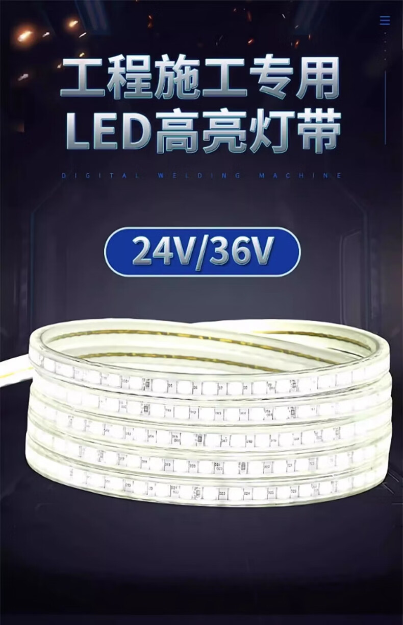 拉伯塔24v36v灯带白光低压超亮工地隧道地下室工程户外照明防水led灯条 5年质保 【11米】