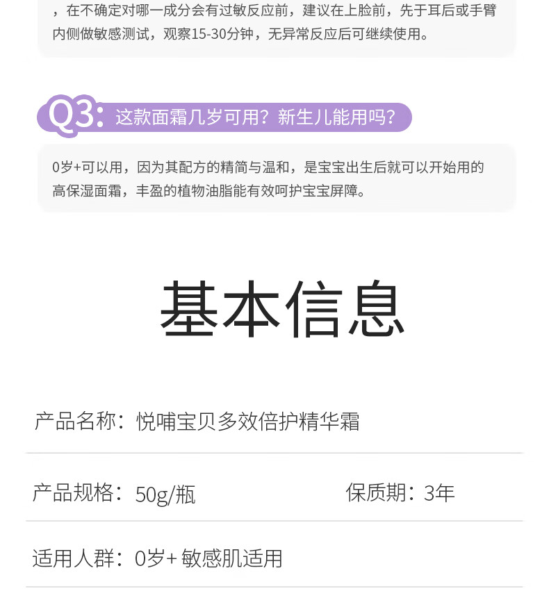 悦哺儿童面霜 婴儿滋润保湿润肤霜 宝宝干燥肌补水护肤霜新生儿 【囤货】婴儿面霜50g*2瓶