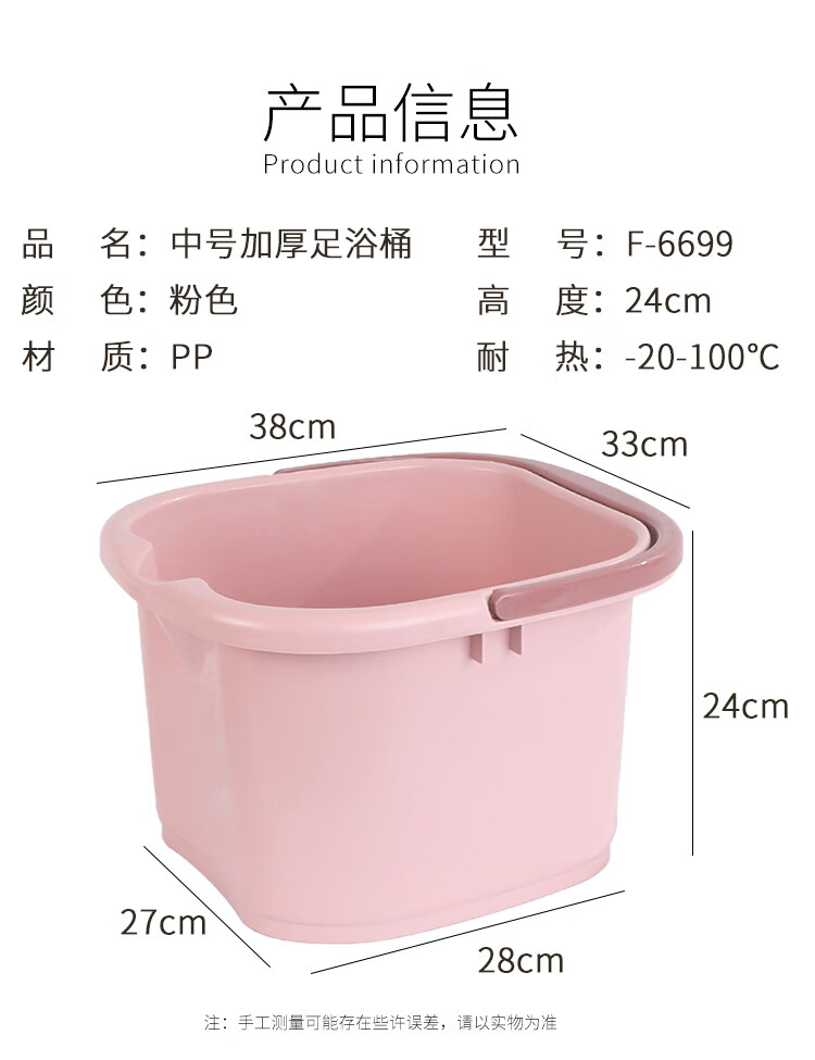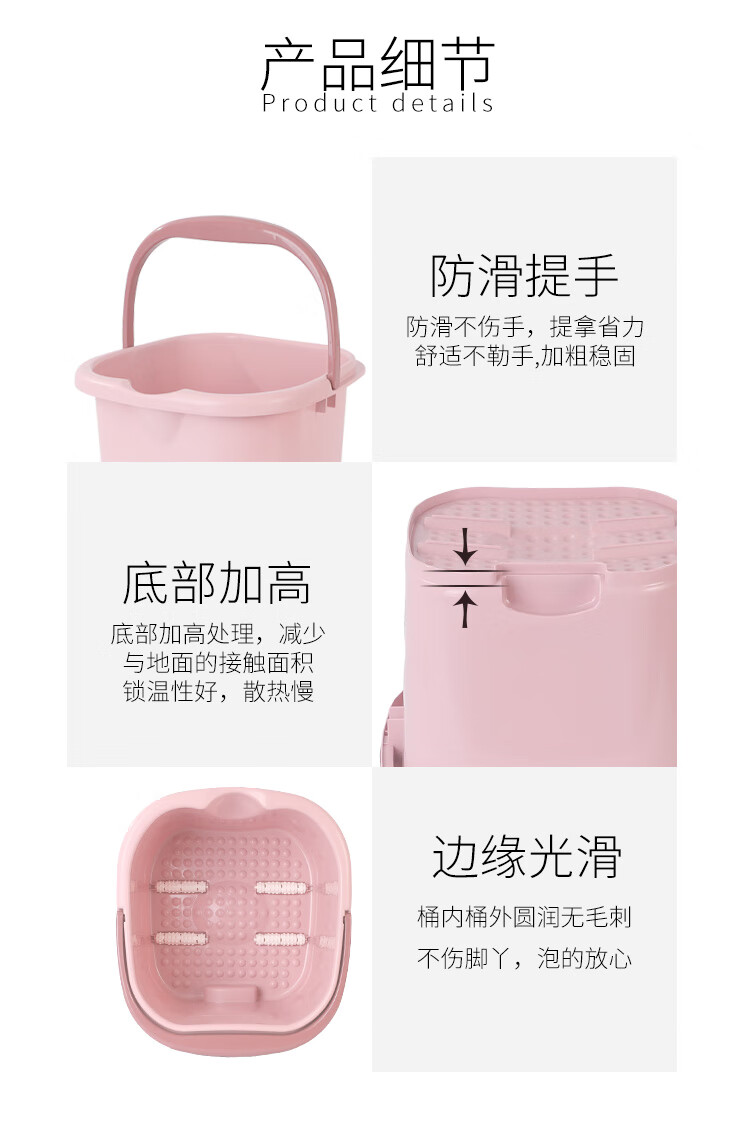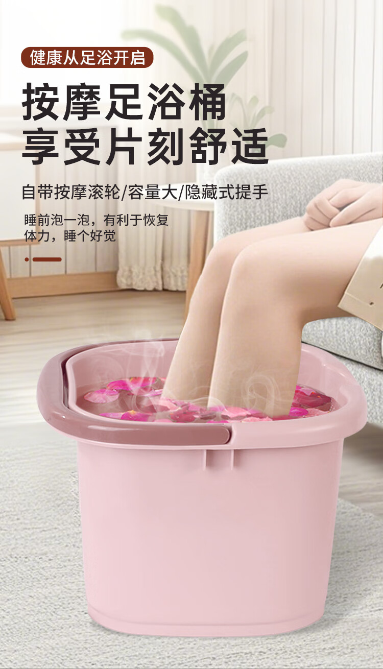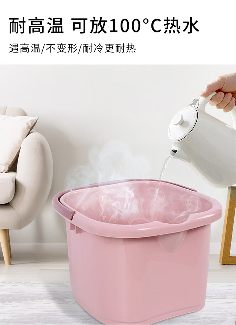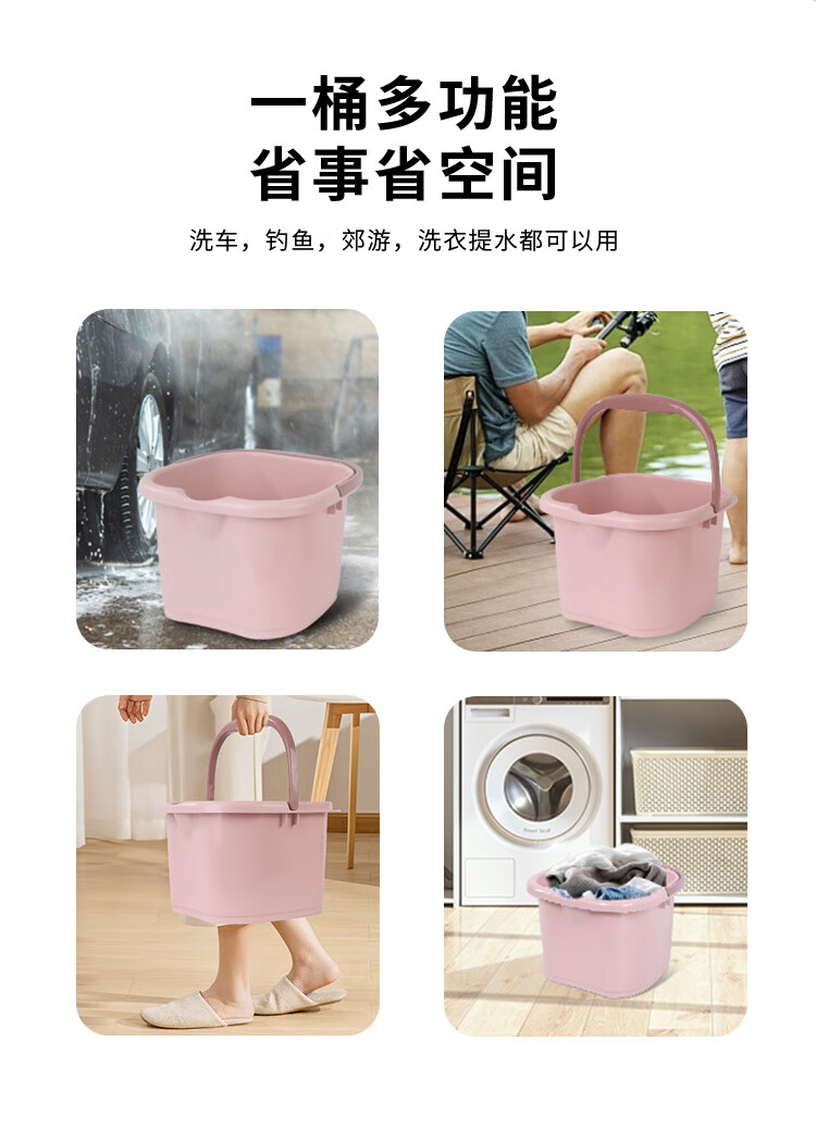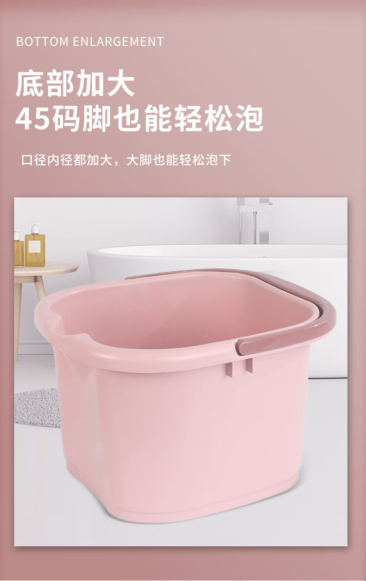 福爱家泡脚桶加厚中号洗脚盆加深洗脚桶足浴桶足疗桶泡脚盆塑料桶水桶粉