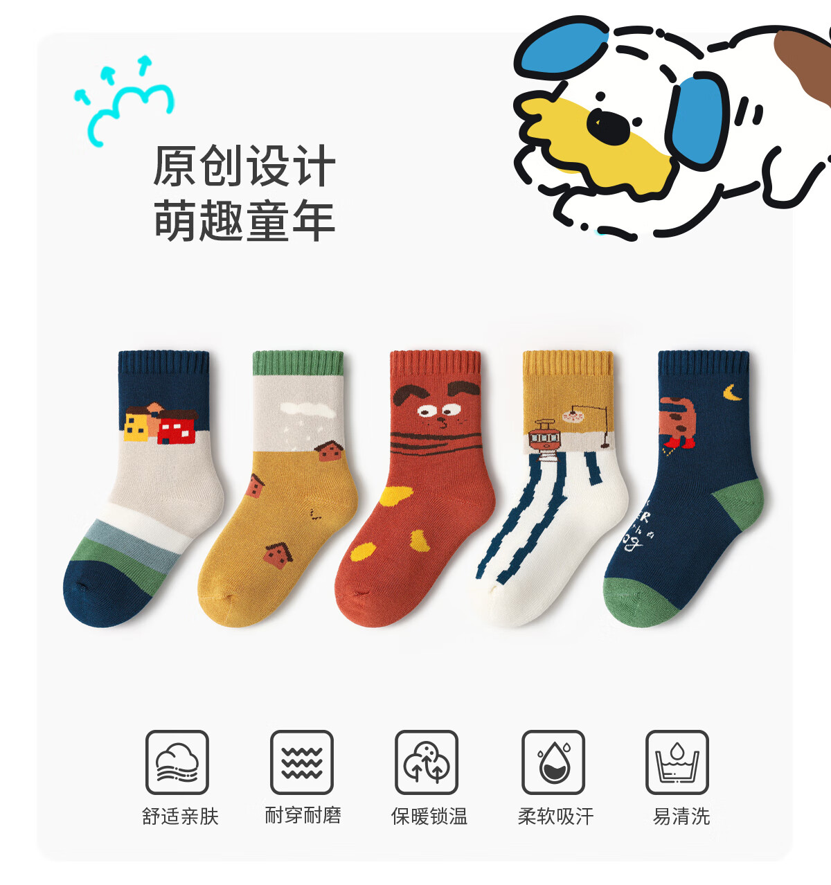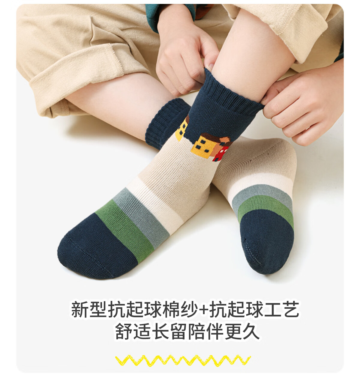 斑比儿童袜子秋冬天加绒加厚保暖男童中筒毛圈棉袜BB2381 16-18码