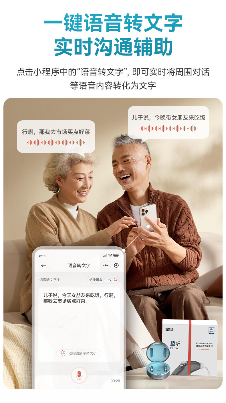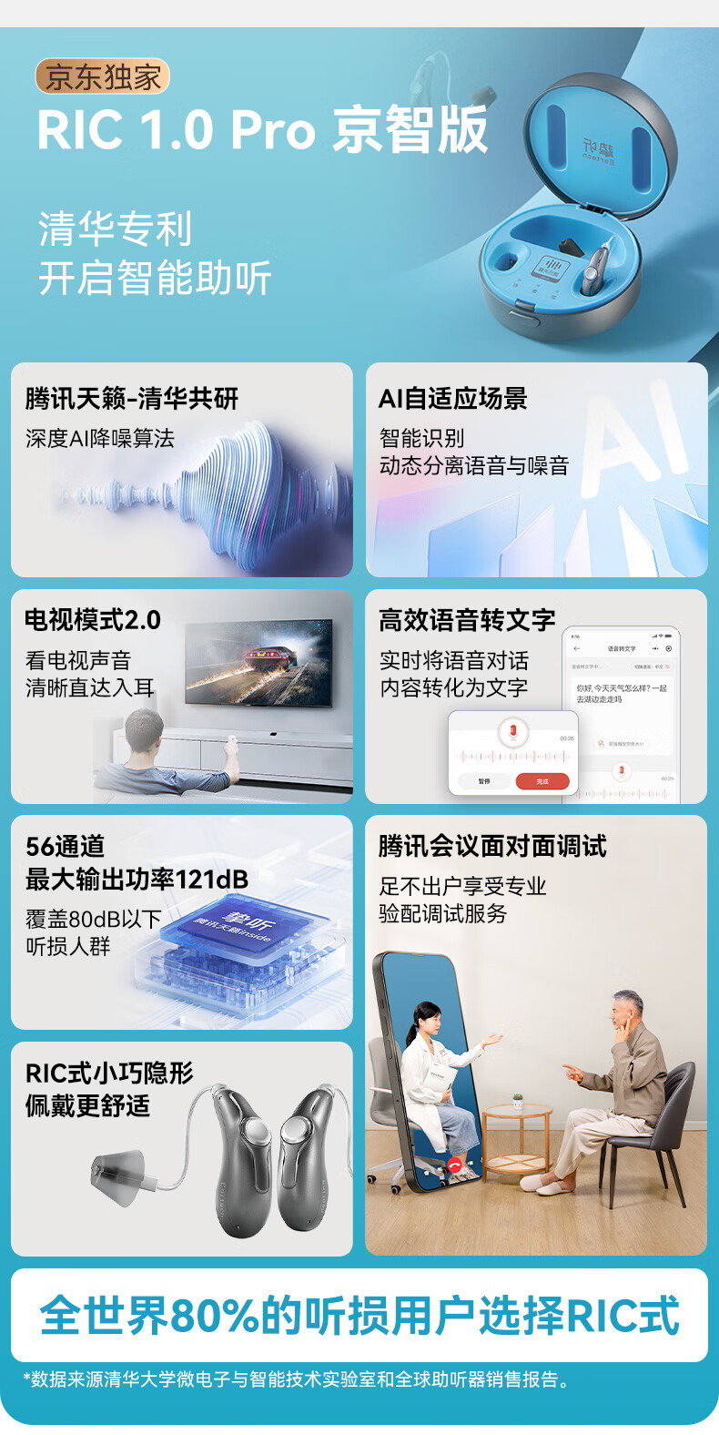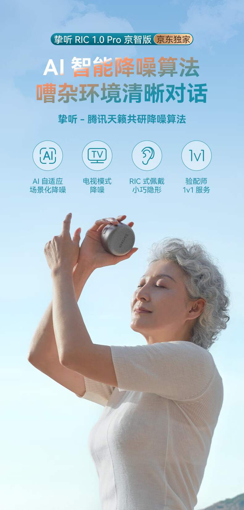 挚听智听助听器老年人重度听损耳聋耳背助听器腾讯天籁AI降噪京智版