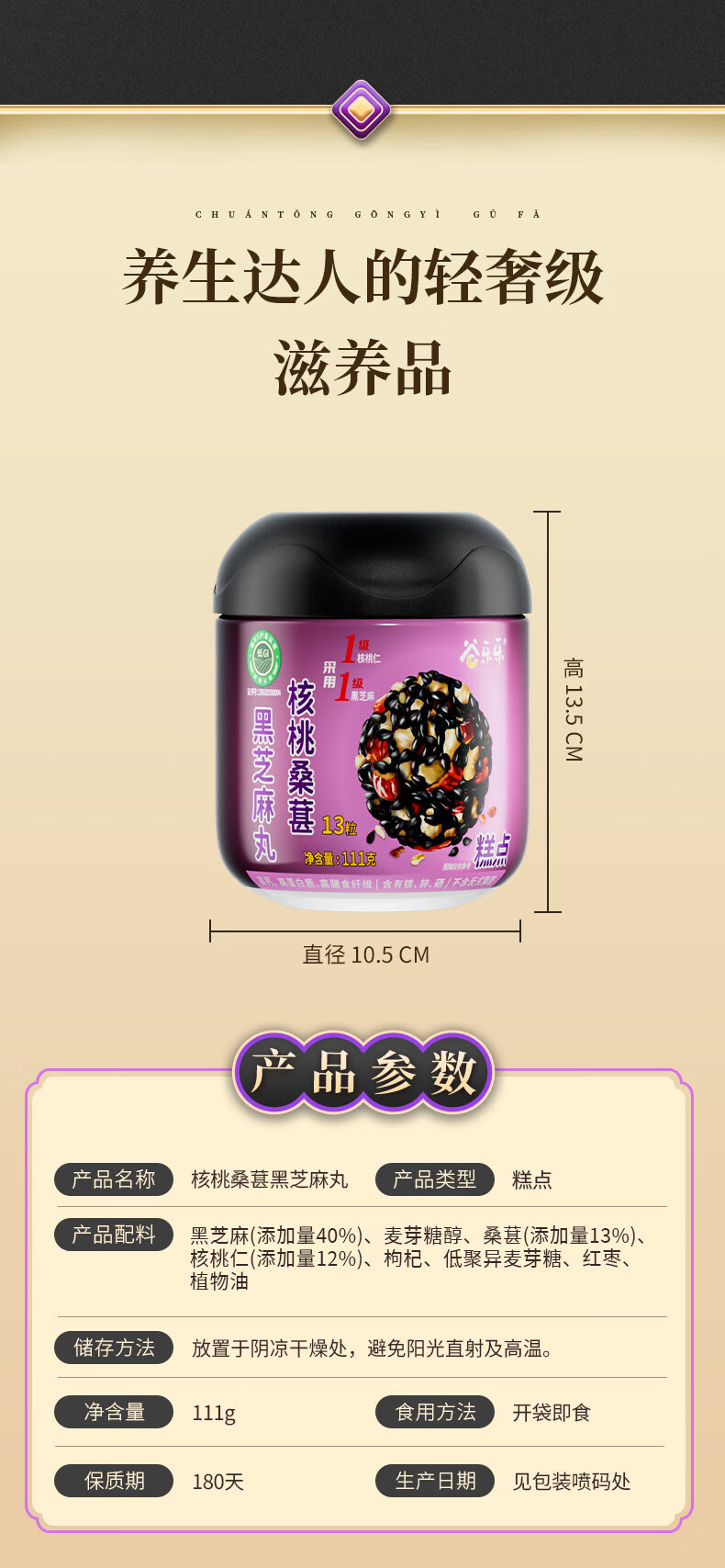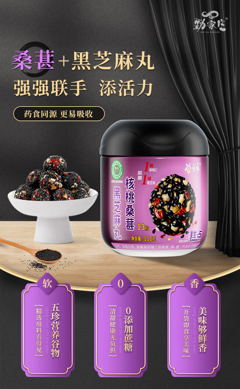 劲家庄桑葚核桃芝麻丸5罐装枸杞红枣黑芝麻球111g罐*5