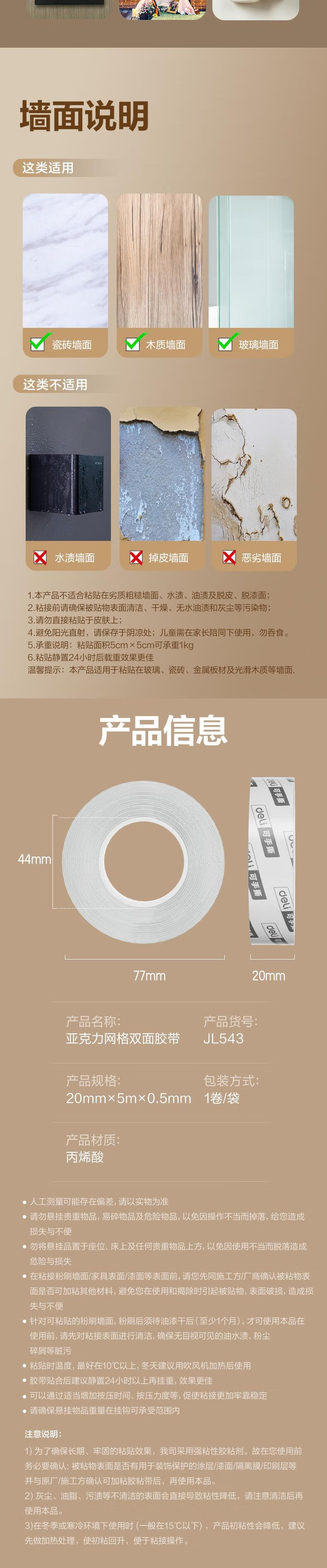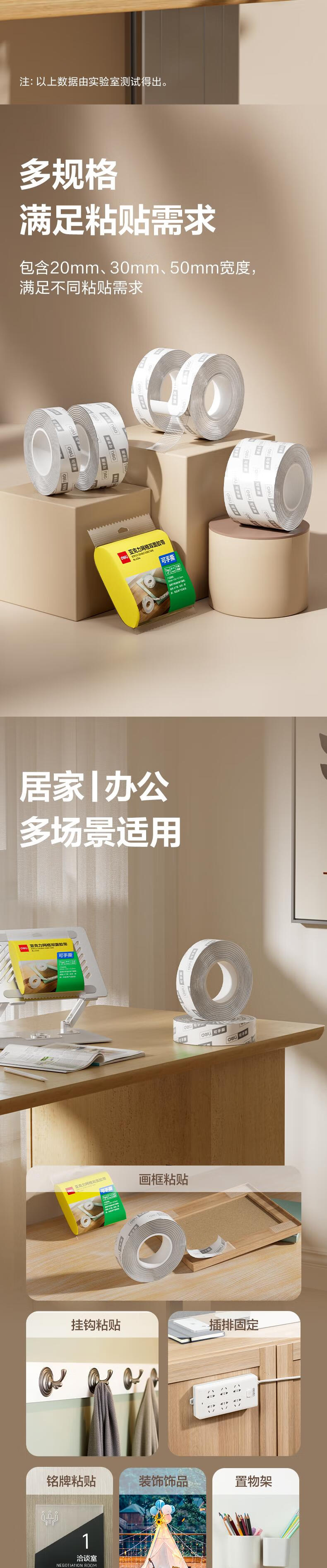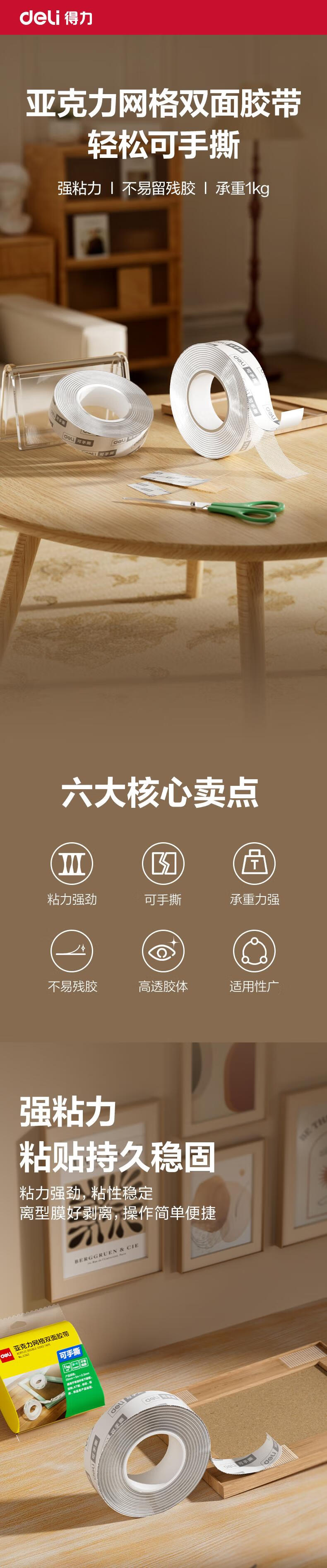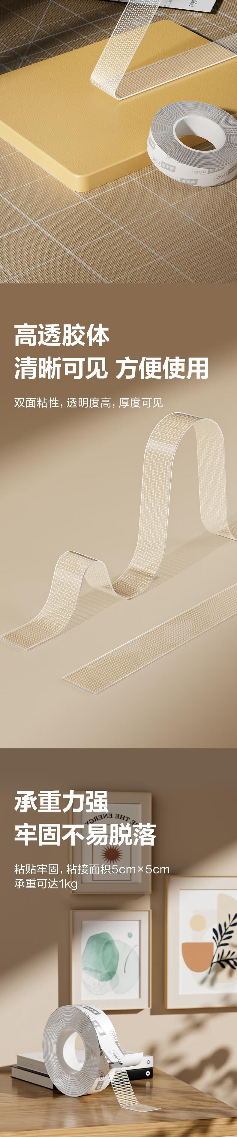 得力(deli)亚克力强力纳米胶带无痕透明 20mm*5m网格双面胶加粘加厚车用家用重复使用 JL543