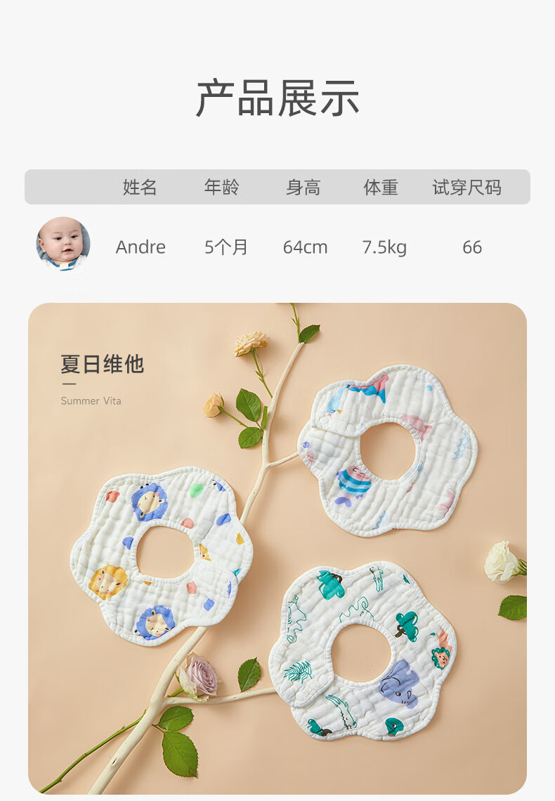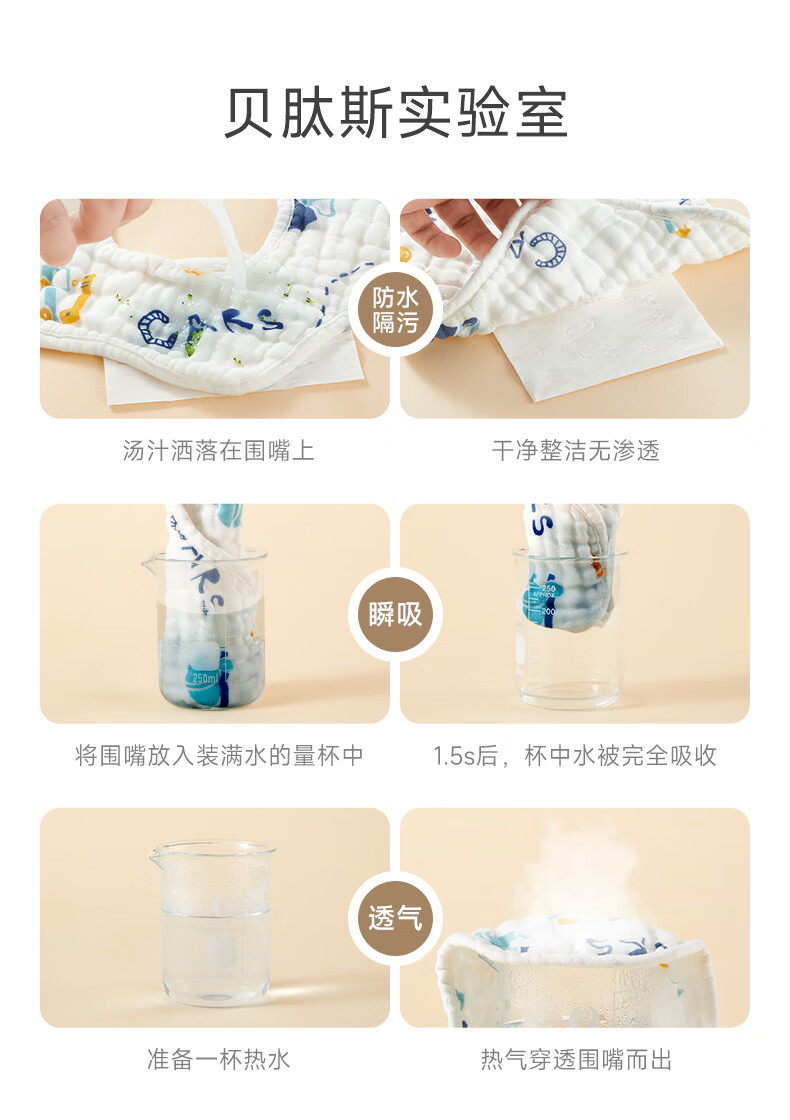 贝肽斯口水巾婴儿围嘴宝宝纯棉纱布新生儿防水防吐奶围兜 【4层】卡米拉桃桃-3条装【25*25cm】 【吸湿透气*A类纯棉】
