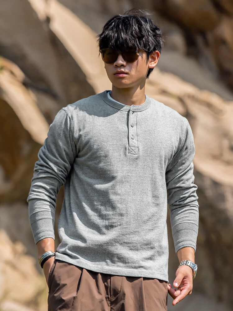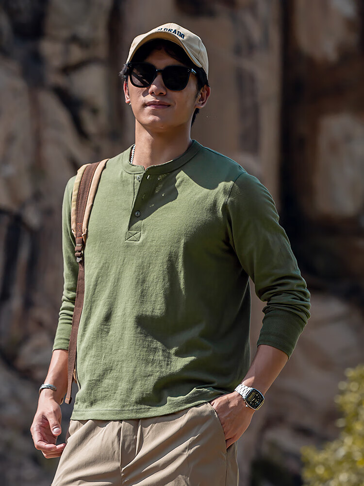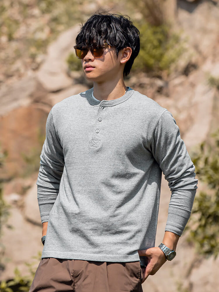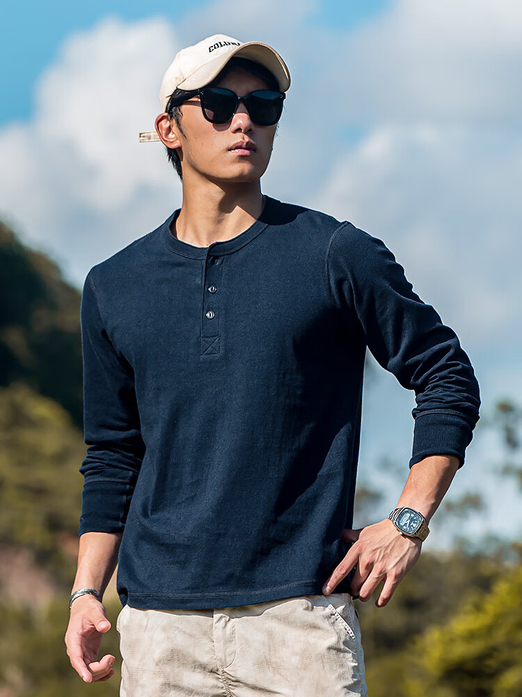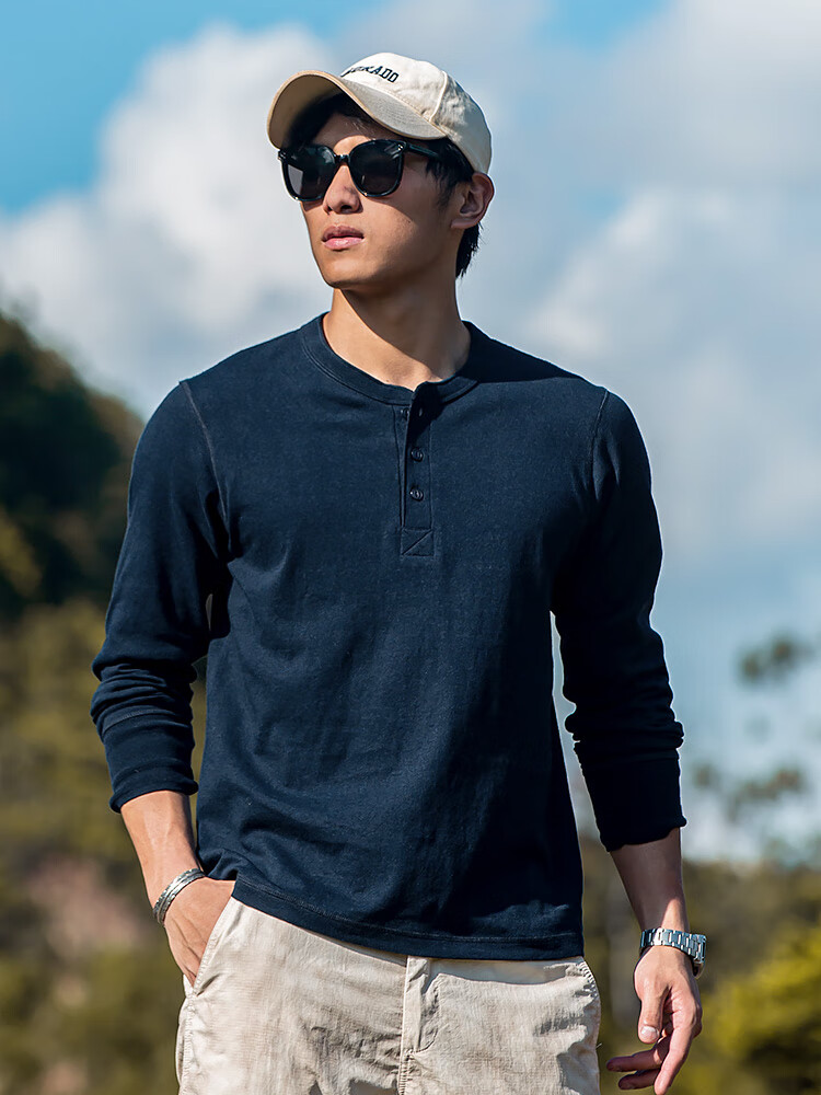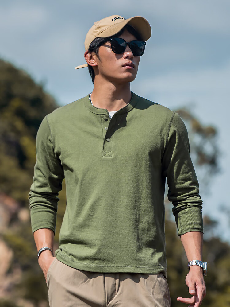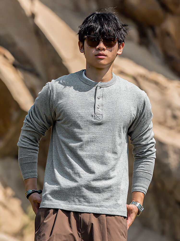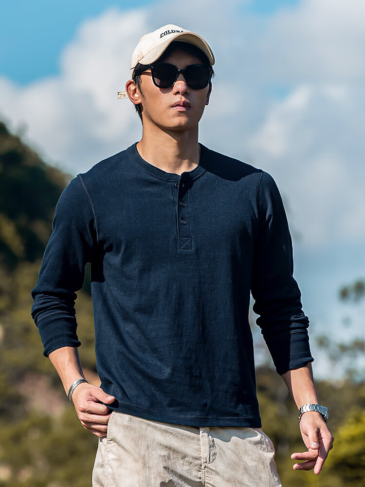 海行户外透气纯棉t恤男亨利衫男士休闲polo衫长袖上衣内搭打底衫 白色 2XL (参考170-195斤)