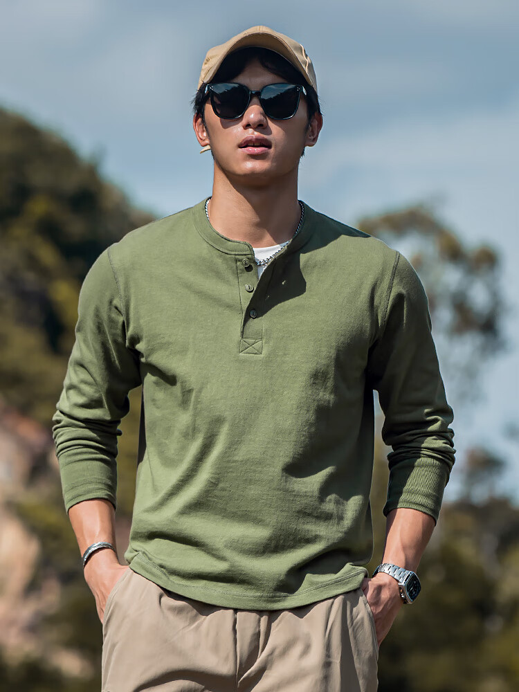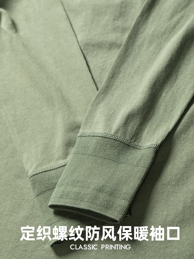 新款中老年男士长袖t恤厚款秋衣爸爸装上衣纯棉口袋半高领打底衫 【1208款】2件装-乌兰+卡其绿 3XL 175-200斤