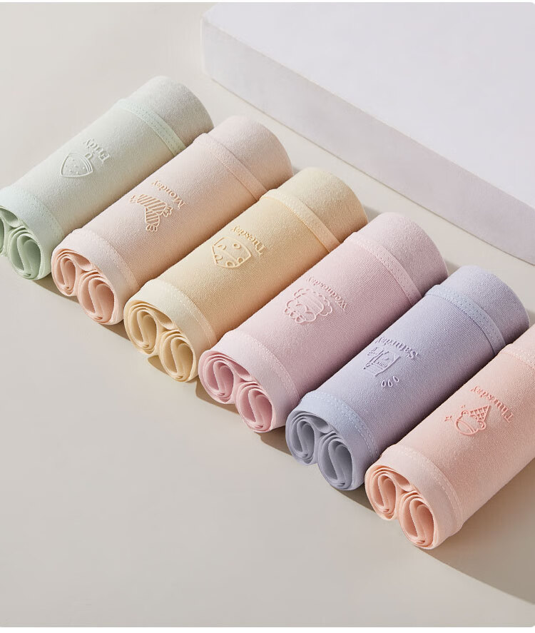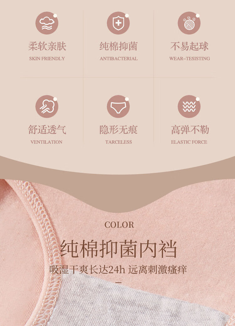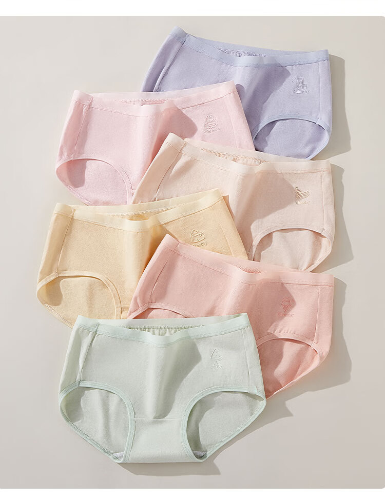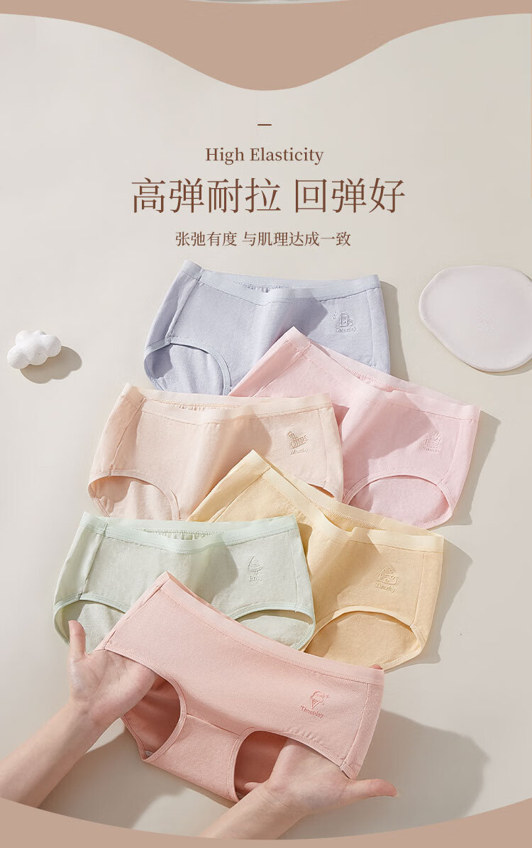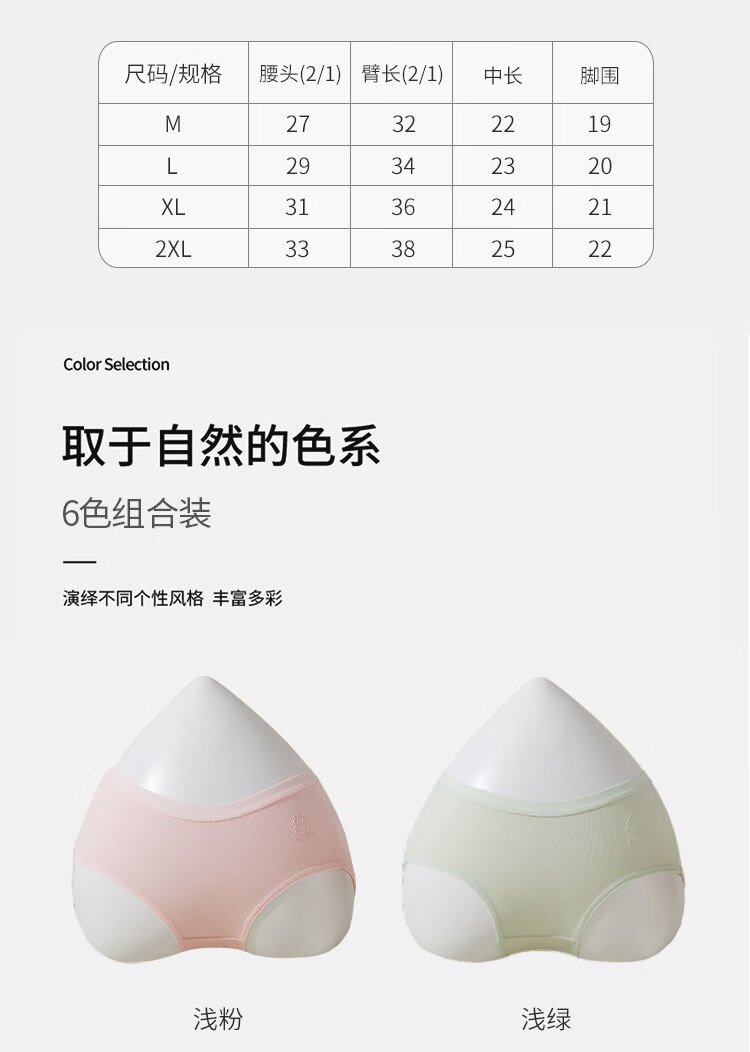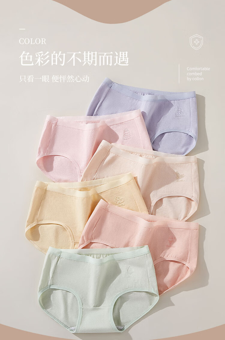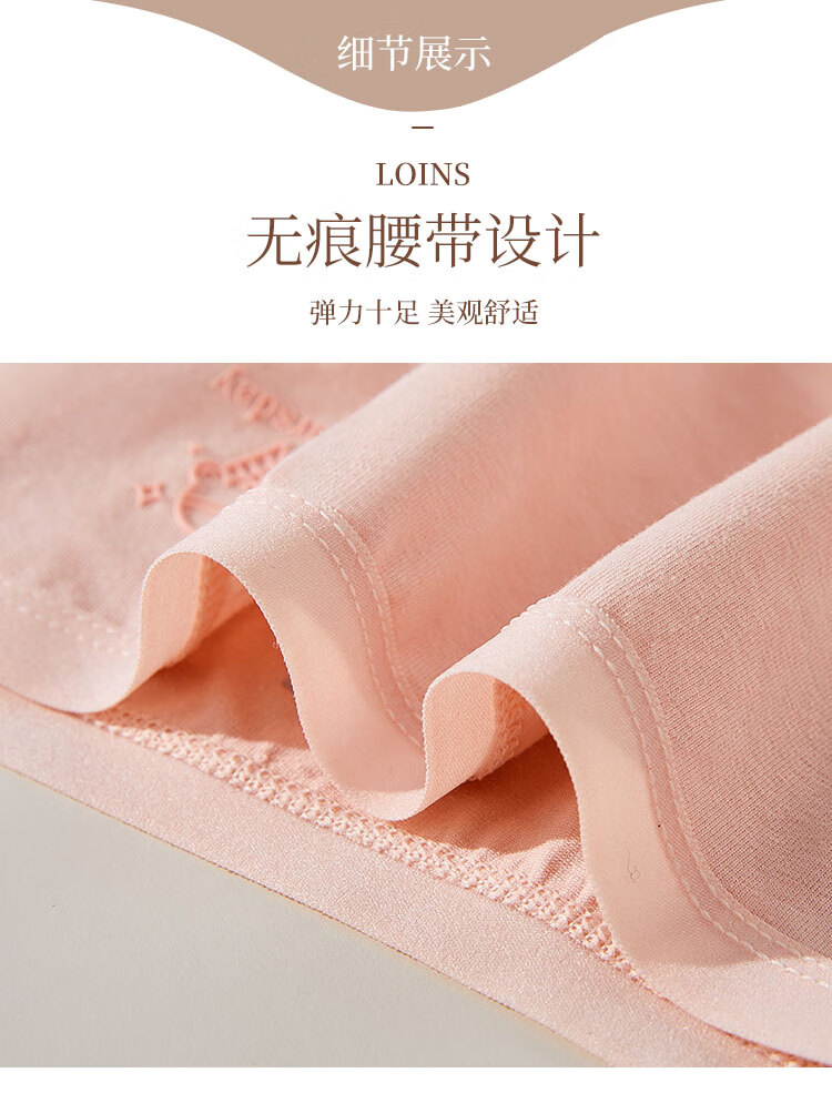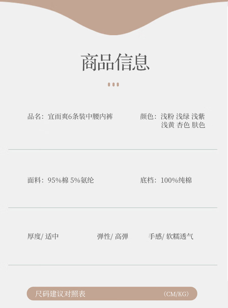 宜而爽女士内裤女精梳棉柔软舒适透气无痕中腰抑菌底裆三角裤头 立体滴胶6条 6条 XL