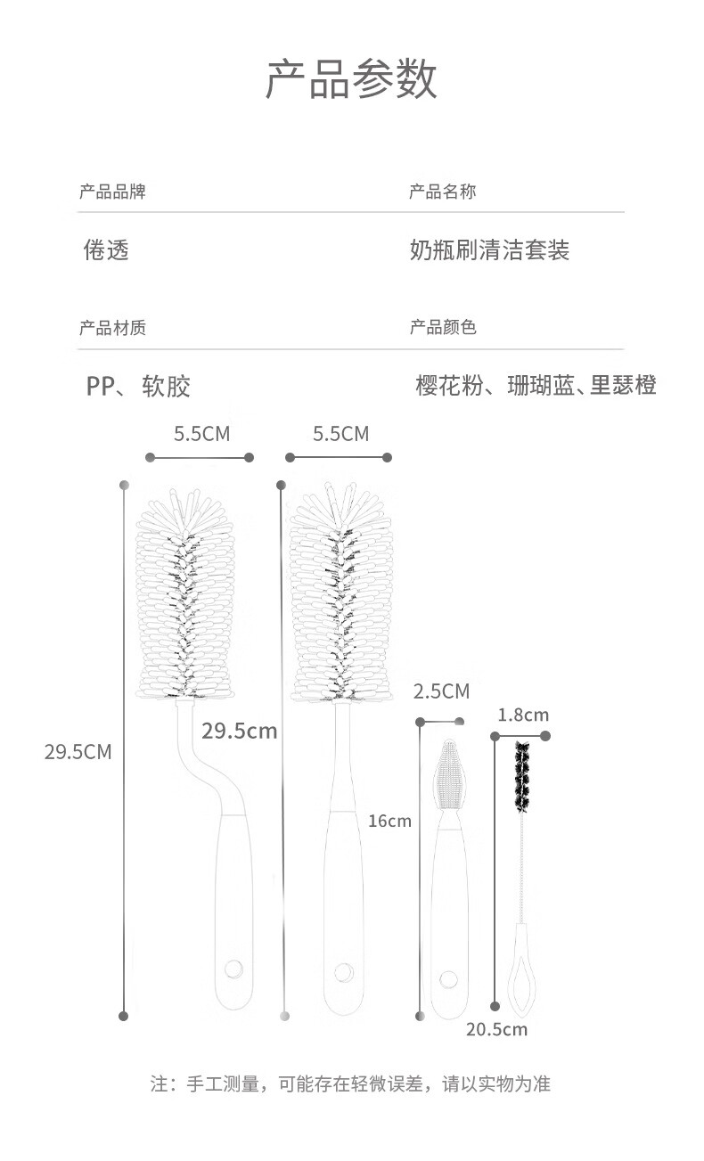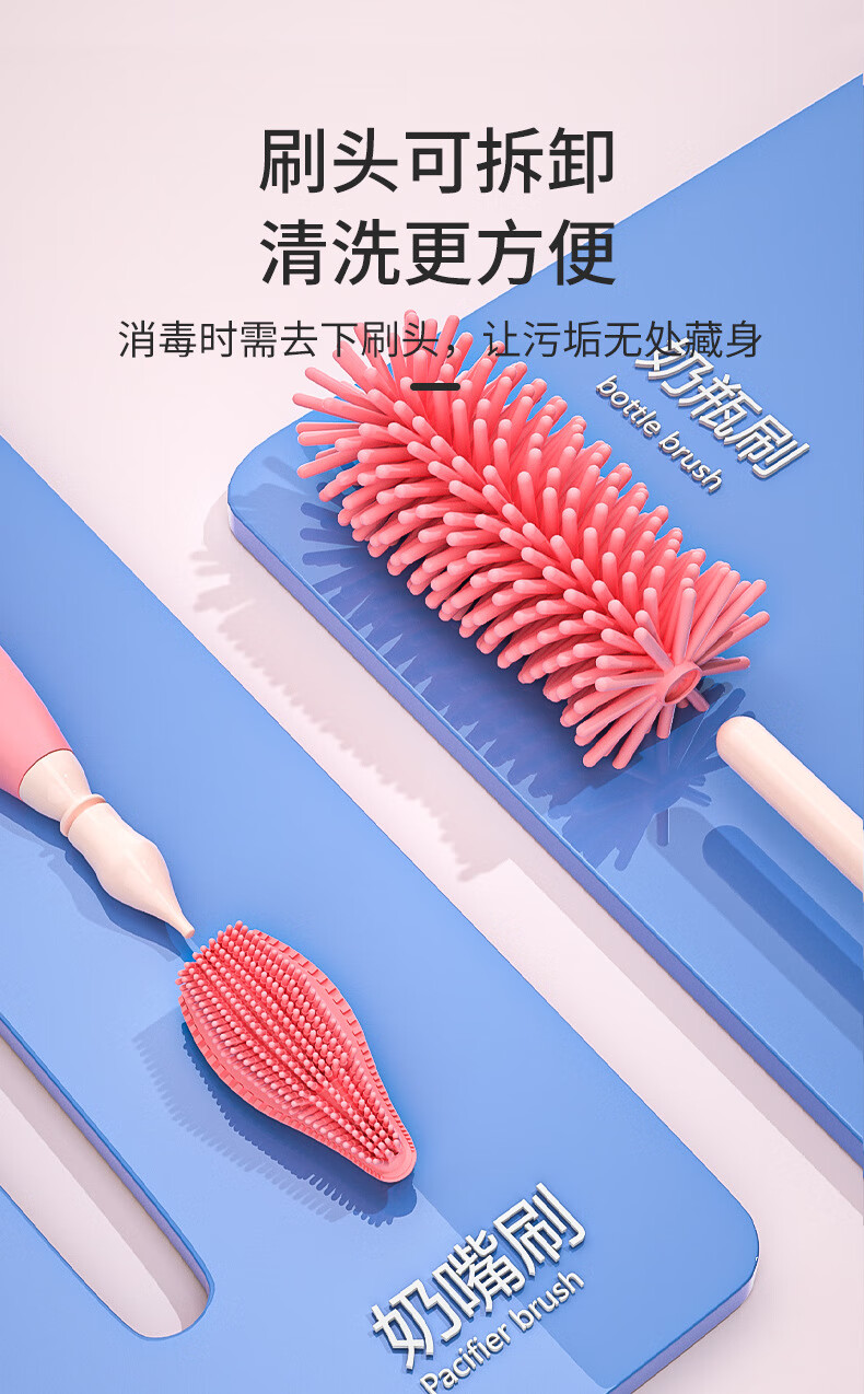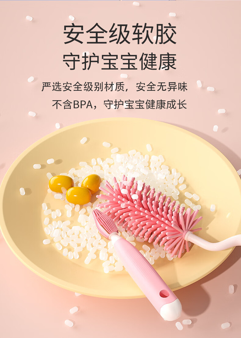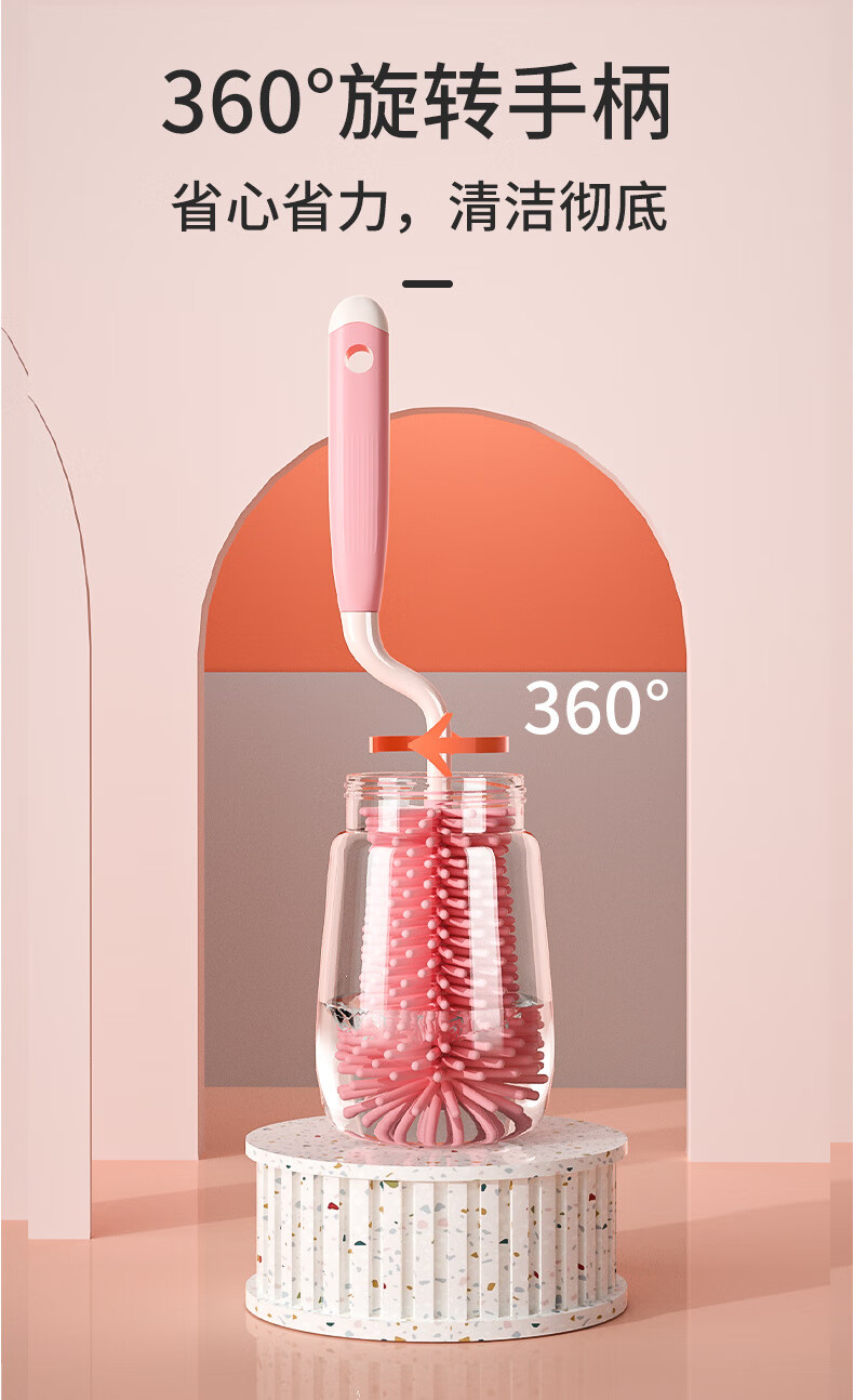 【严选百货】宝宝奶瓶刷清洗刷新生奶嘴刷吸管刷套装旋转洗奶瓶清 粉色直柄刷3件套(opp袋