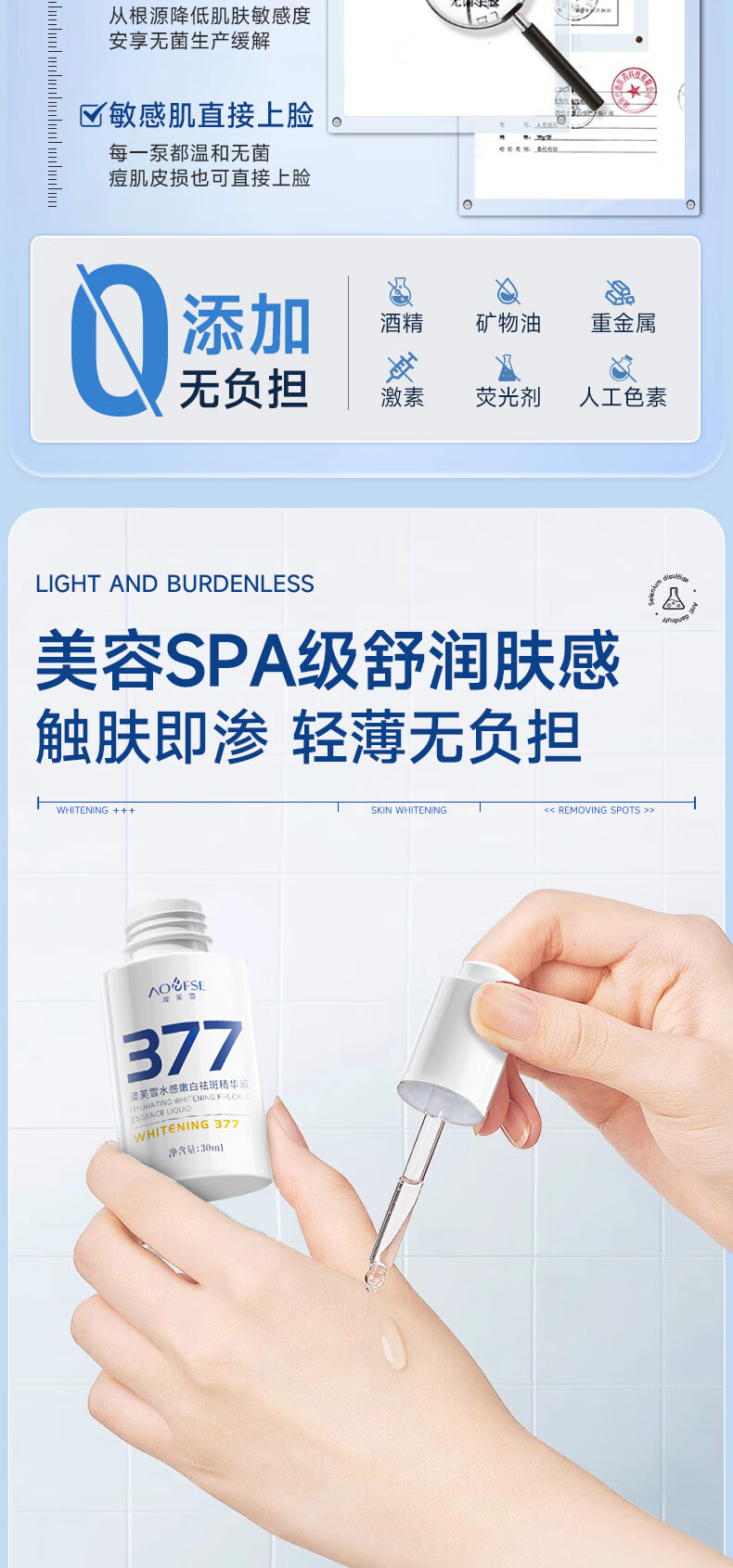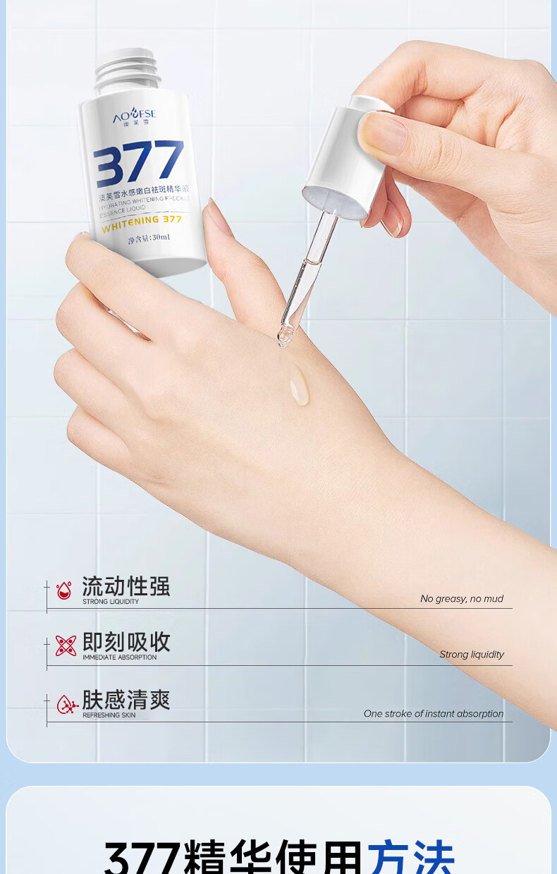 澳芙雪377美白祛斑霜淡化黑色素去雀斑黄褐斑晒斑女男祛斑专用祛斑精液 377祛斑精华液30ml×2瓶